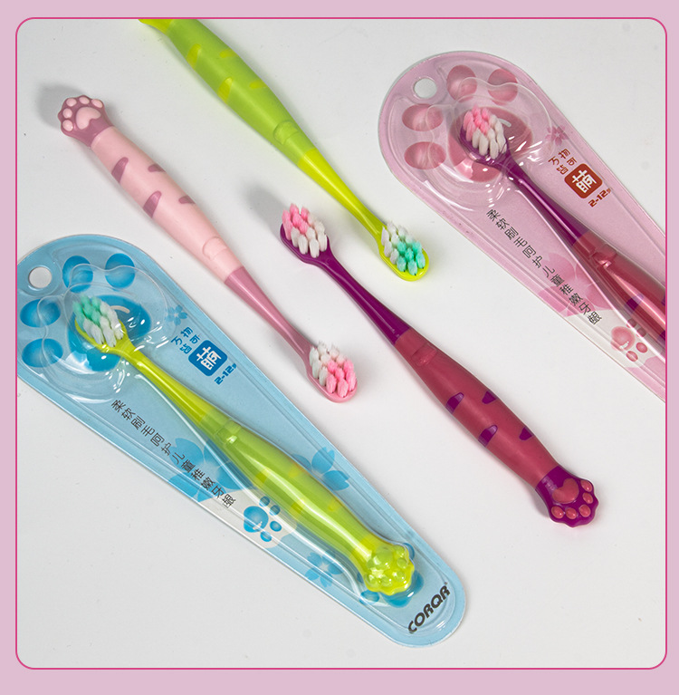 어린이 칫솔 3-12세 만화 고양이 발톱 도매 아기 가정용 부드러운 모 고급 어린이 칫솔 6-12세