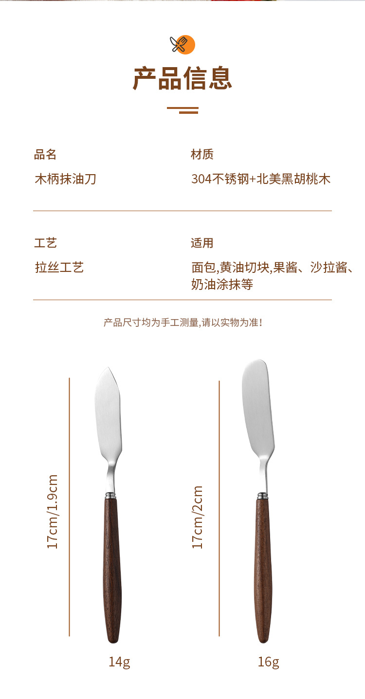 새로운 호두 손잡이 304 스테인리스 버터 칼 창조적 인 크림 치즈 나이프 버터 잼 석고 칼
