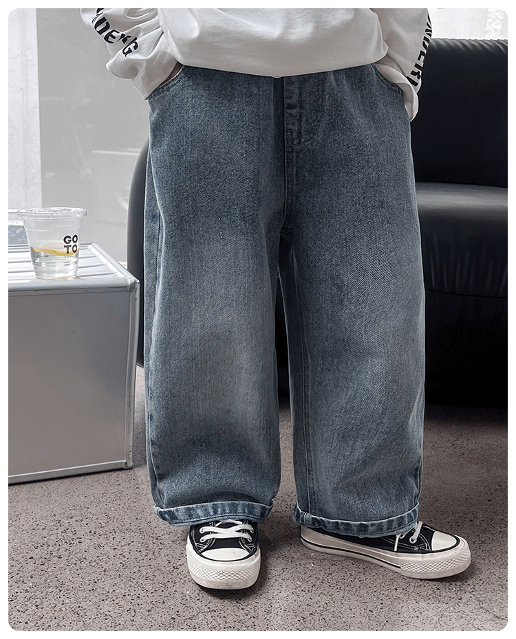 소년 가을 아동 의류 2025 새로운 한국어 스타일 아기 캐주얼 바지 어린이 웃는 얼굴 자수 소년 데님 바지 유행스토어 가기
