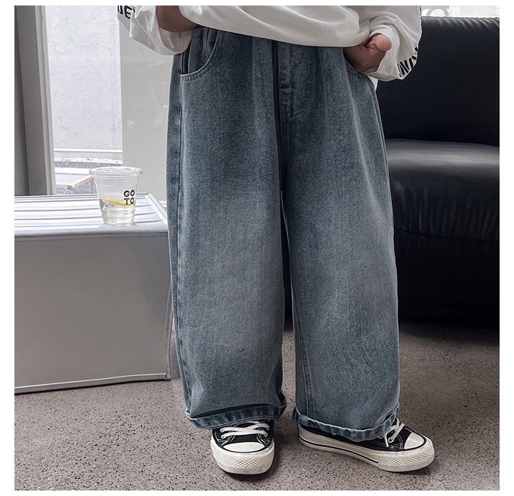 소년 가을 아동 의류 2025 새로운 한국어 스타일 아기 캐주얼 바지 어린이 웃는 얼굴 자수 소년 데님 바지 유행