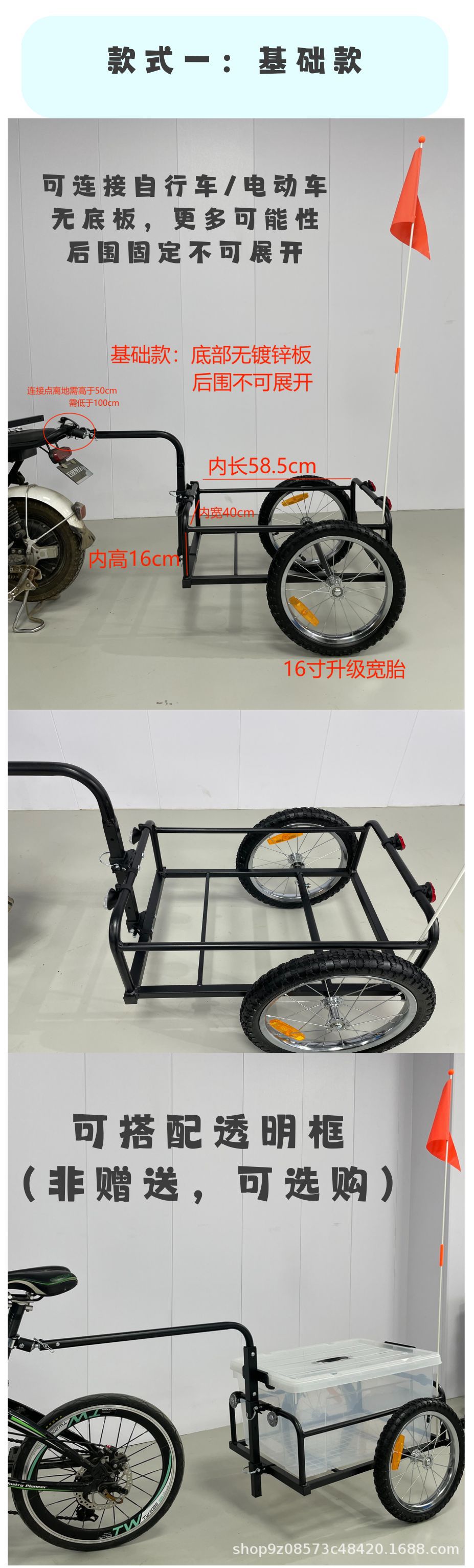 간단한 철제 화물 자전거 트레일러/전기 자동차 트레일러 제조업체는 내구성이 뛰어난 캠핑카 접이식 자전거를 공급합니다.스토어 가기