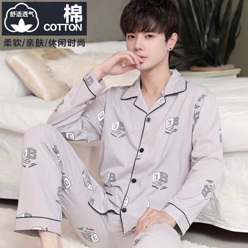 纯/棉睡衣男士春秋季长袖套装2024年新款格子大码可外穿家居服男스토어 가기