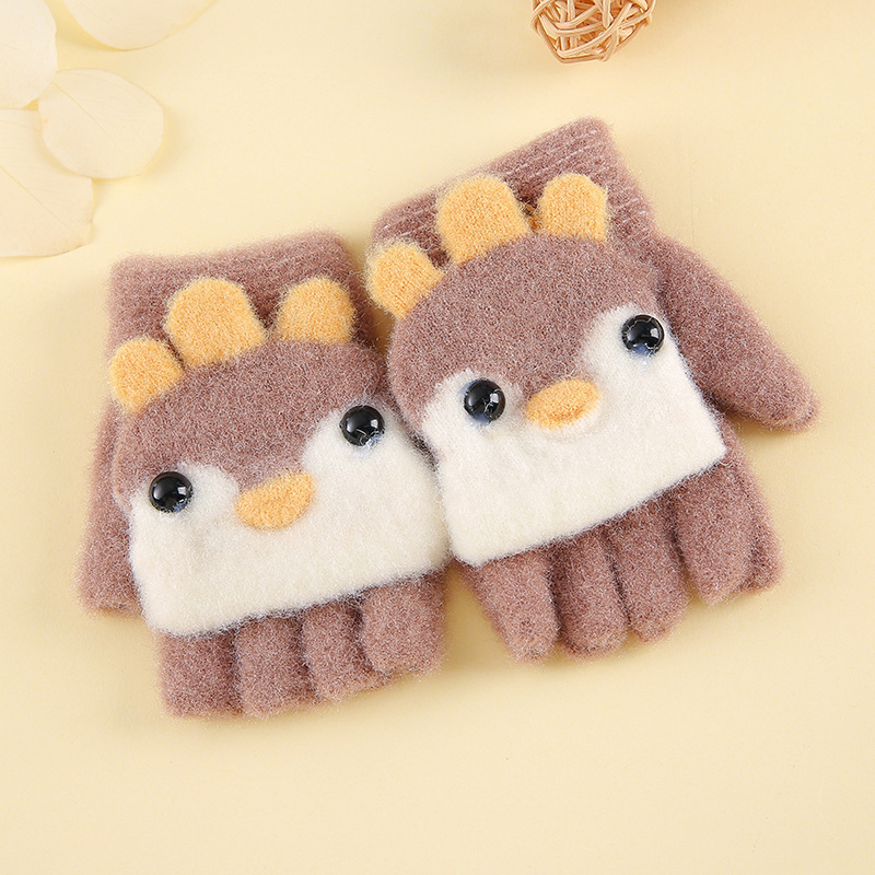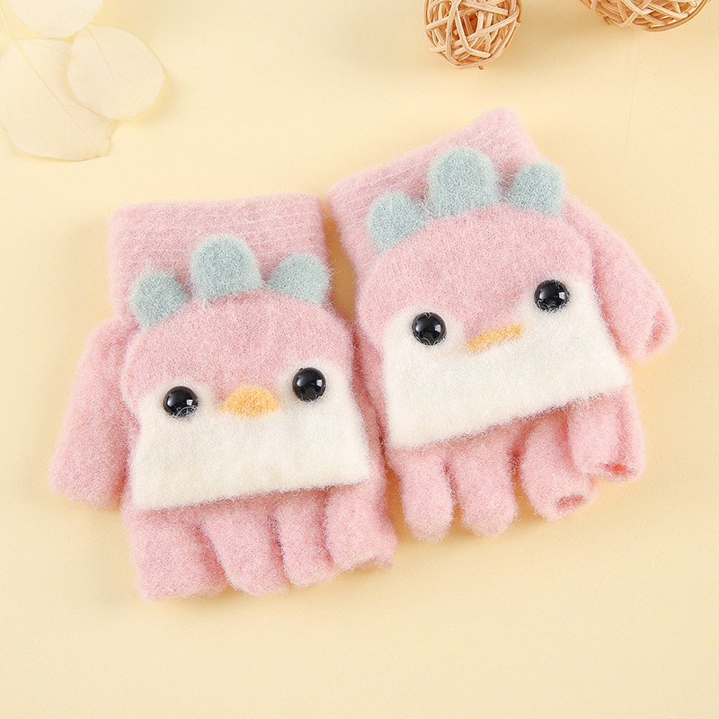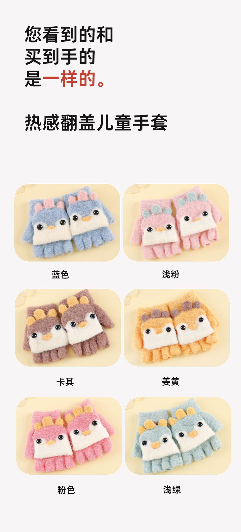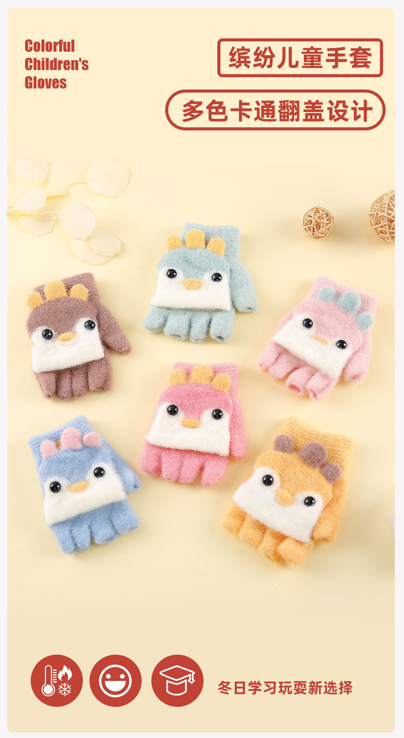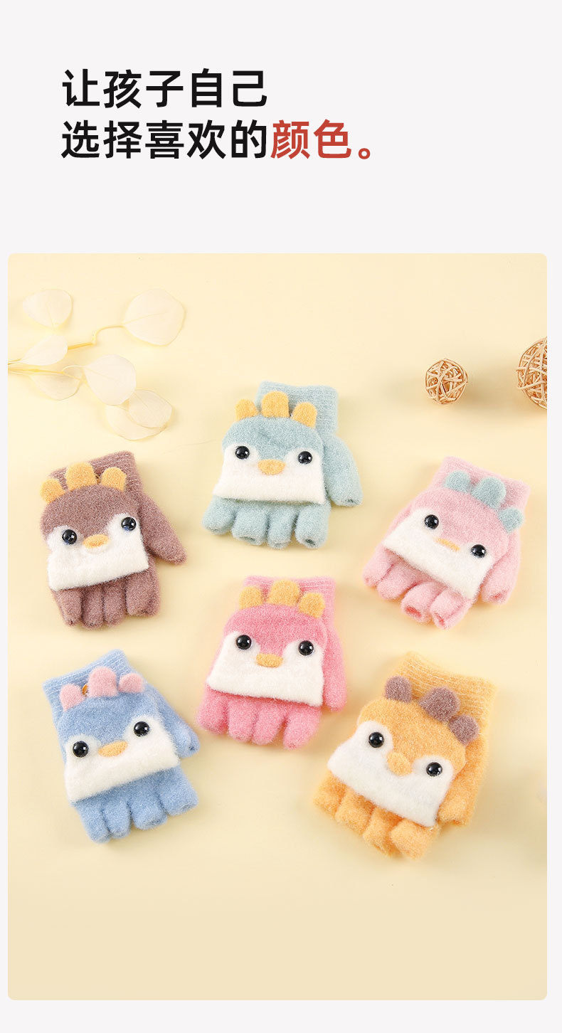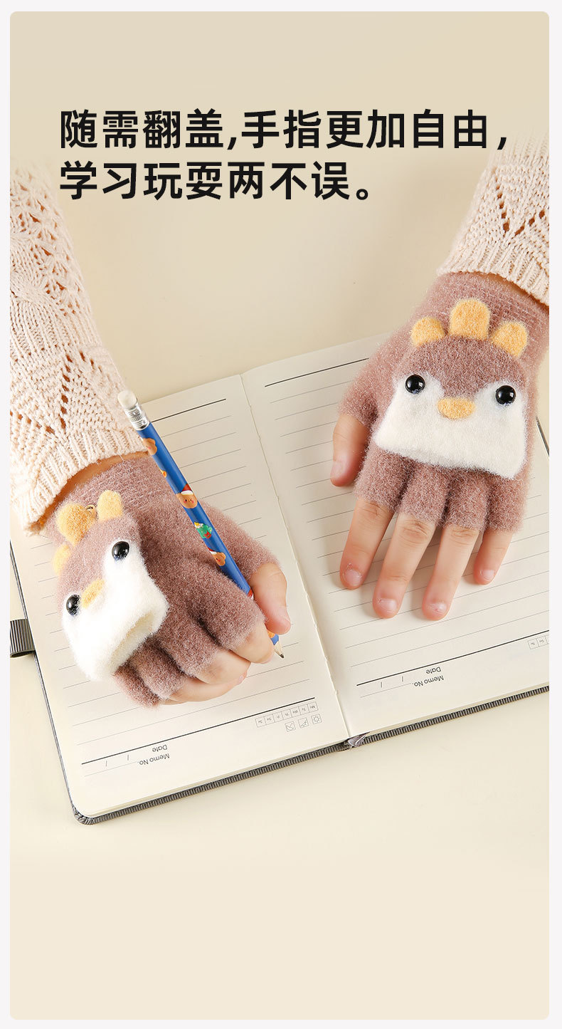 儿童可爱保暖手套宝宝半指套女童男孩冬季加厚小学生写作业五指套