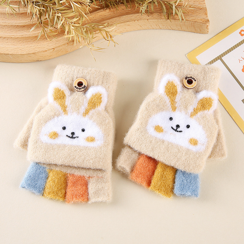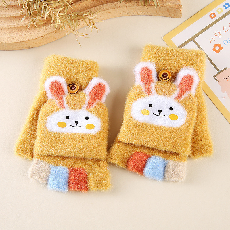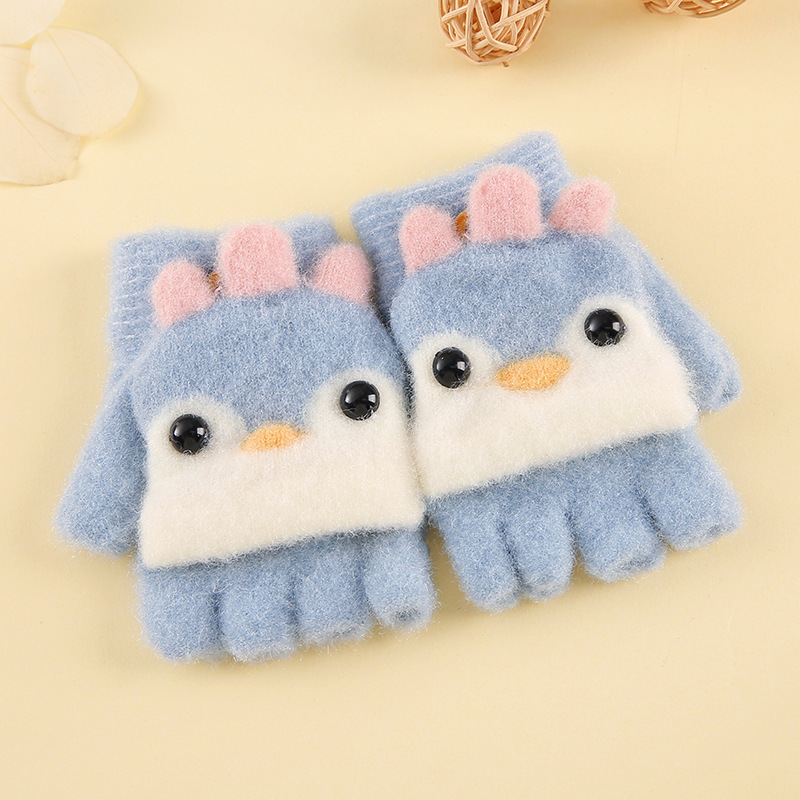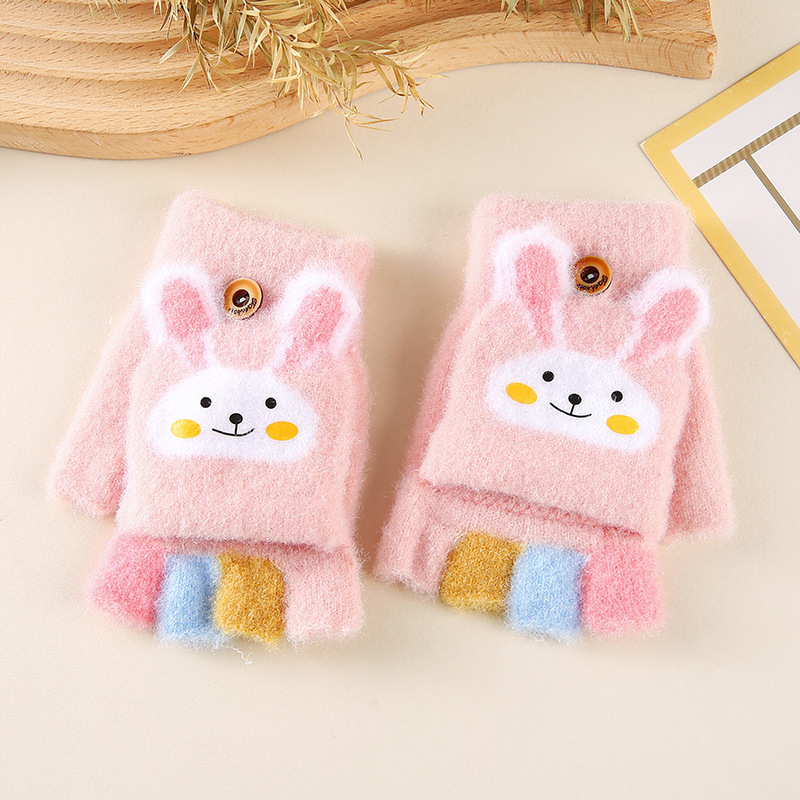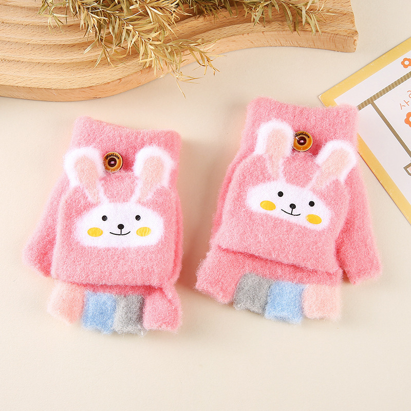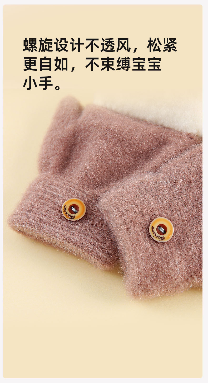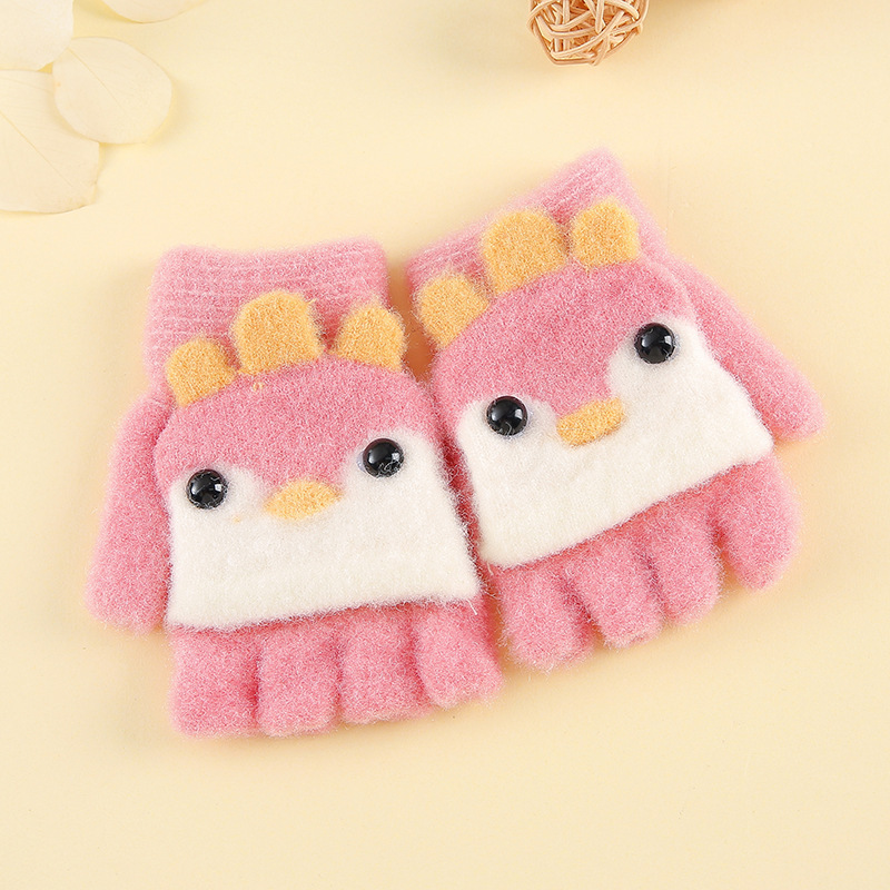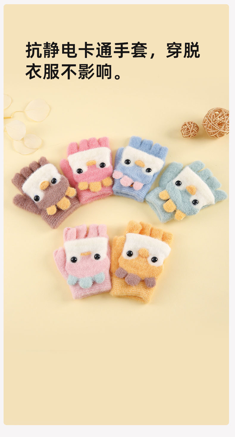 儿童可爱保暖手套宝宝半指套女童男孩冬季加厚小学生写作业五指套