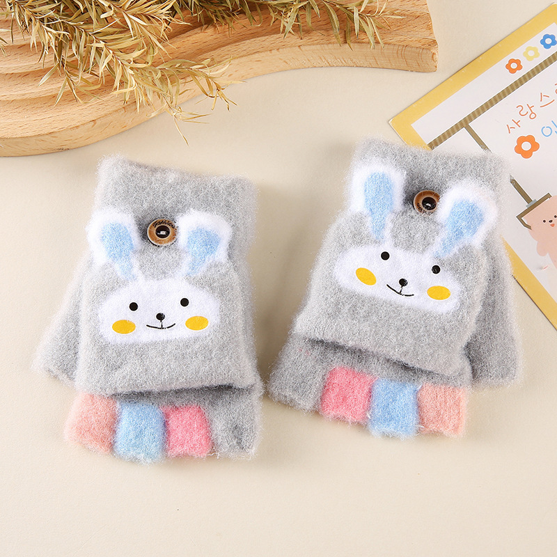 어린이 귀여운 따뜻한 장갑 아기의 반 손가락 세트 소녀와 소년 겨울 두꺼운 초등학생 숙제 5 손가락 세트