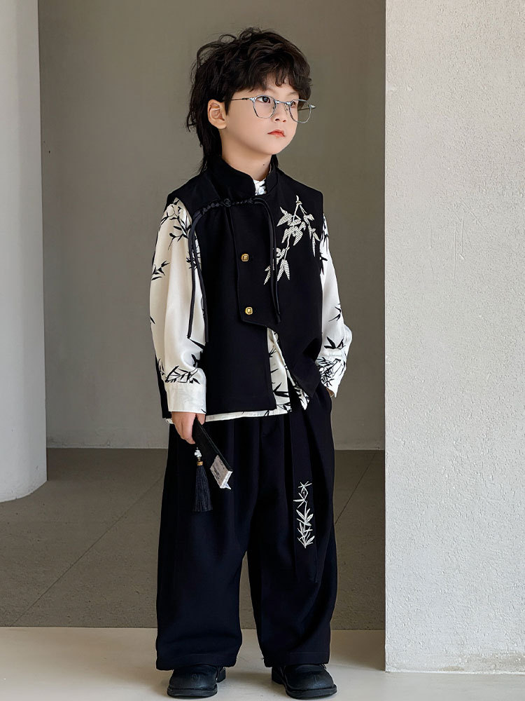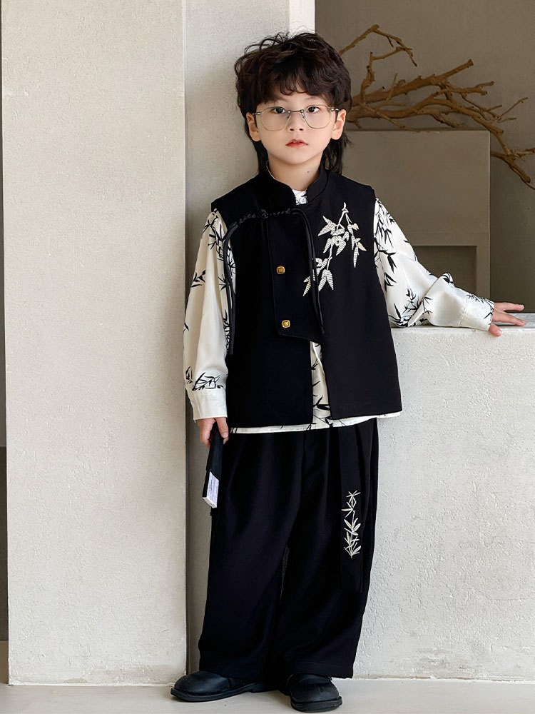 • 검은 대나무 조끼 + 773 리본 검은 바지 + 765 흰색 대나무 긴팔 셔츠