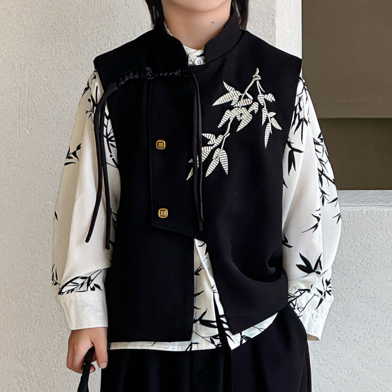 소년 조끼 2025 봄 새로운 스탠드 칼라 수 놓은 탑 유행 중국 스타일 아동복 아동 의류 드롭 배송