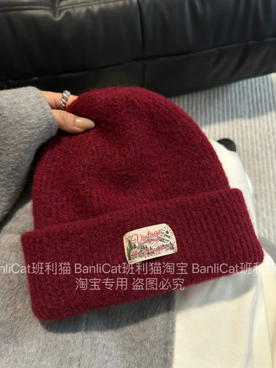 Banlicat 미국식 화이트 버건디 니트 모자 여성용 더블 레이어 따뜻한 콜드 햇 스키 큰 머리 울 모자 겨울스토어 가기
