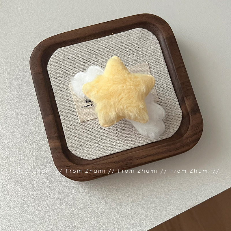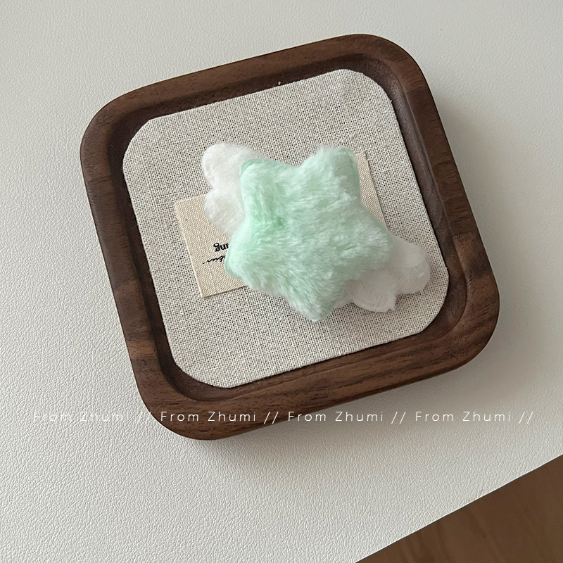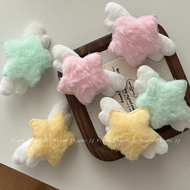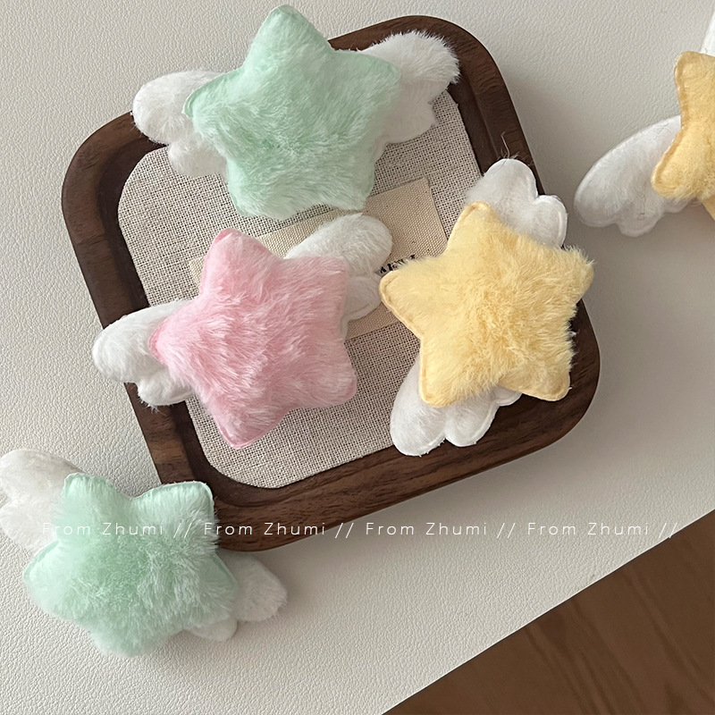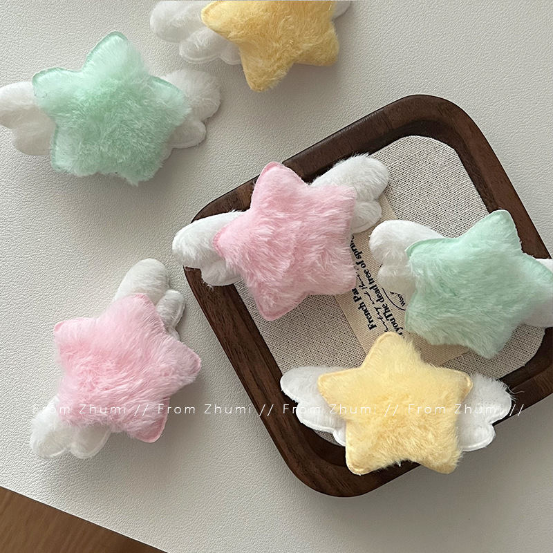 가을과 겨울 새로운 귀여운 봉제 스타 날개 머리핀 여성 사이드 클립 방귀 클립 크림 달콤한 소녀 머리띠스토어 가기