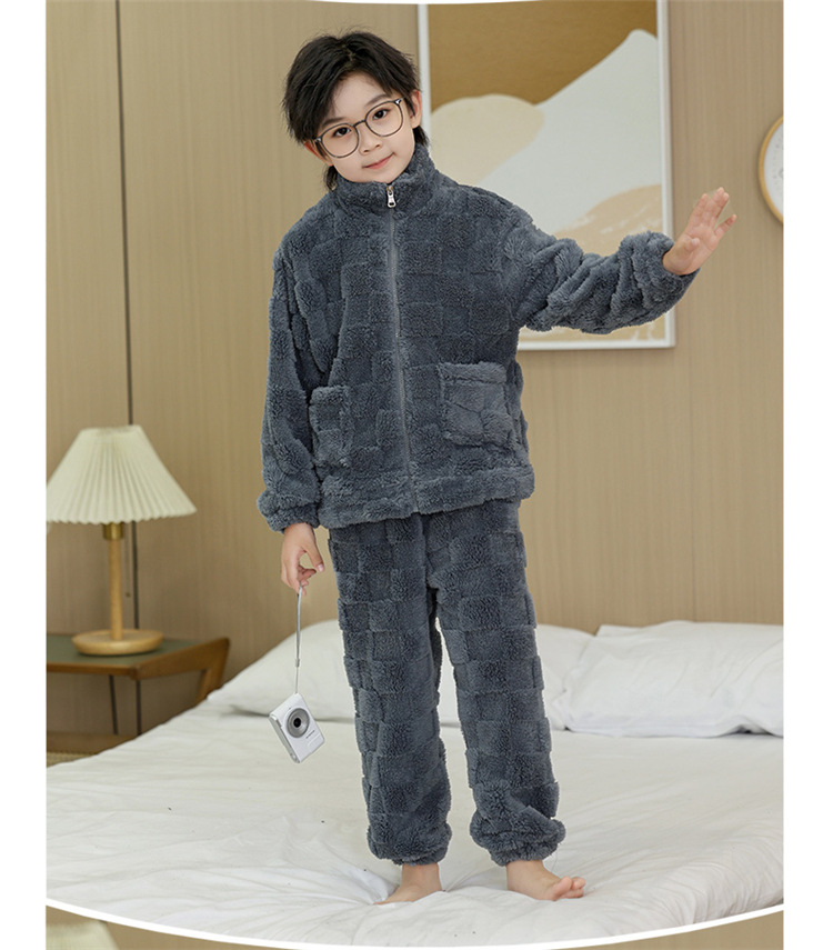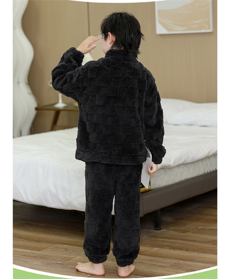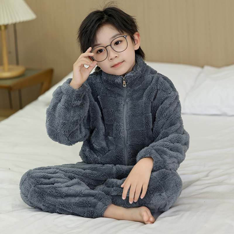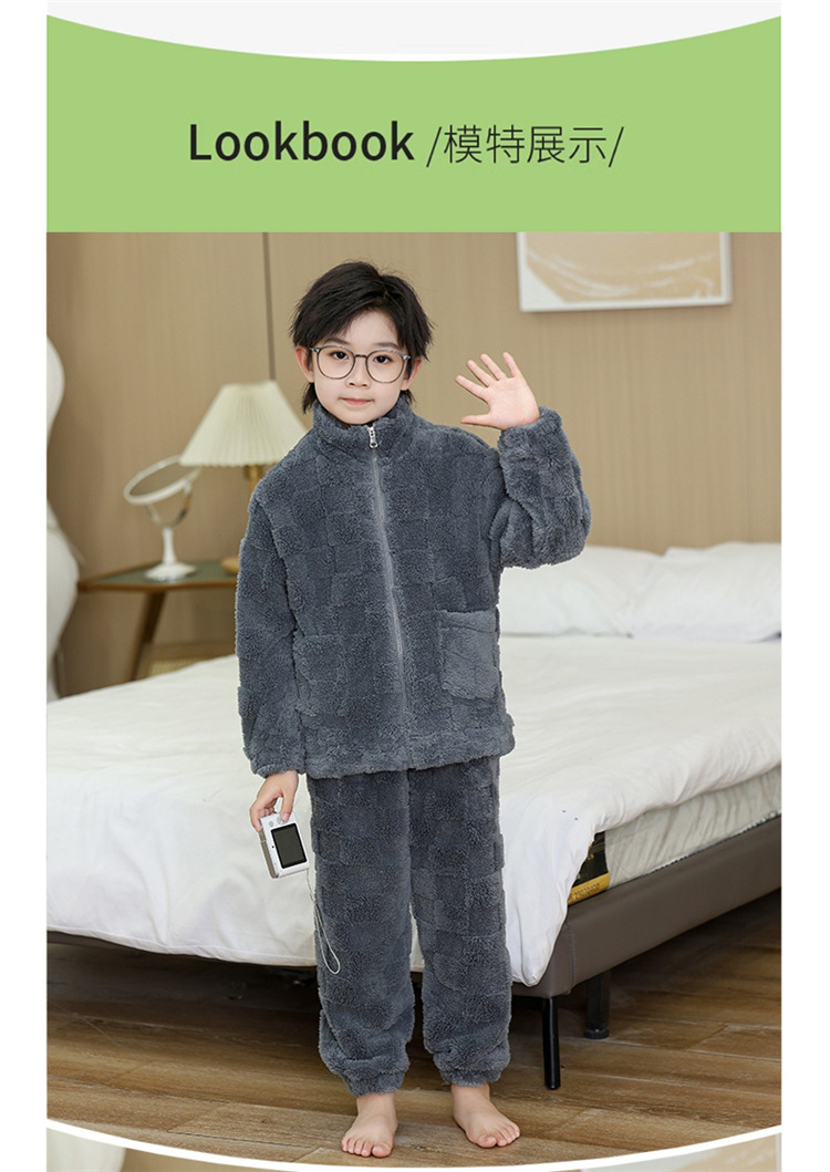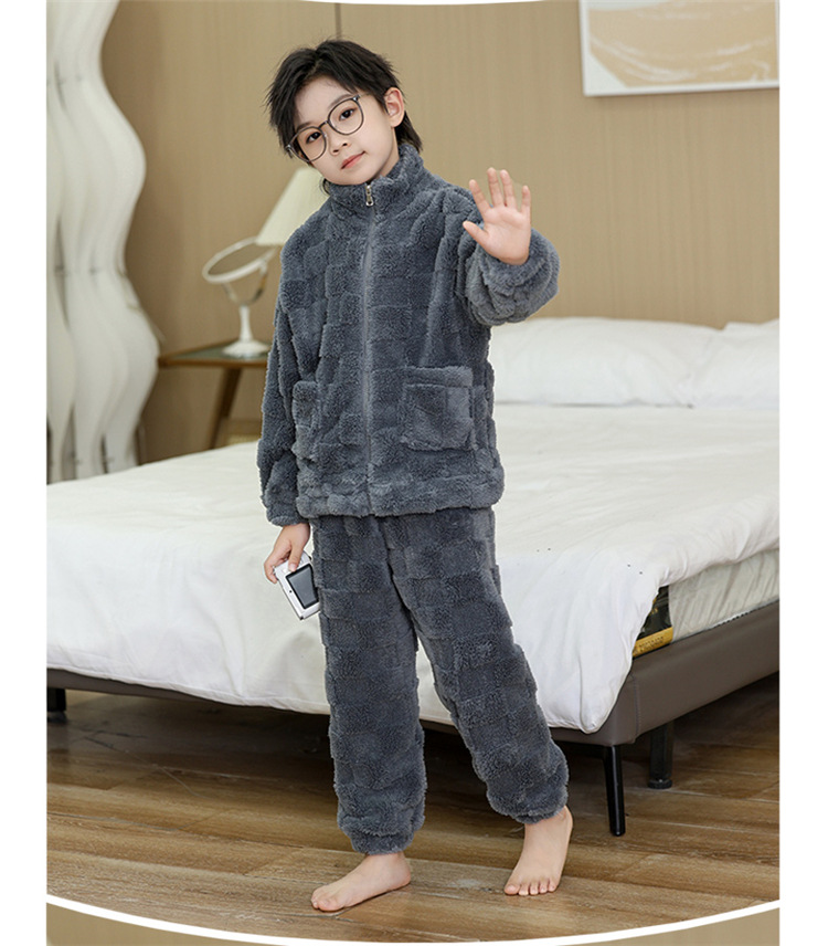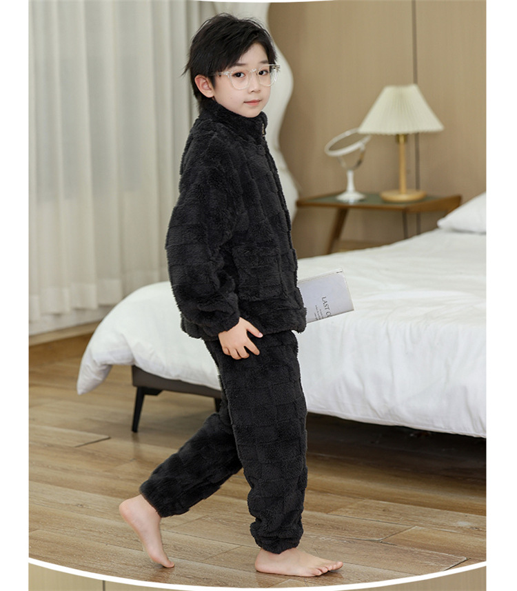 아동복 소년 플란넬 파자마 2024 새로운 청소년 겨울 두꺼운 산호 양털 홈 옷스토어 가기