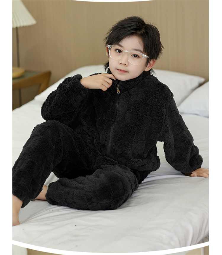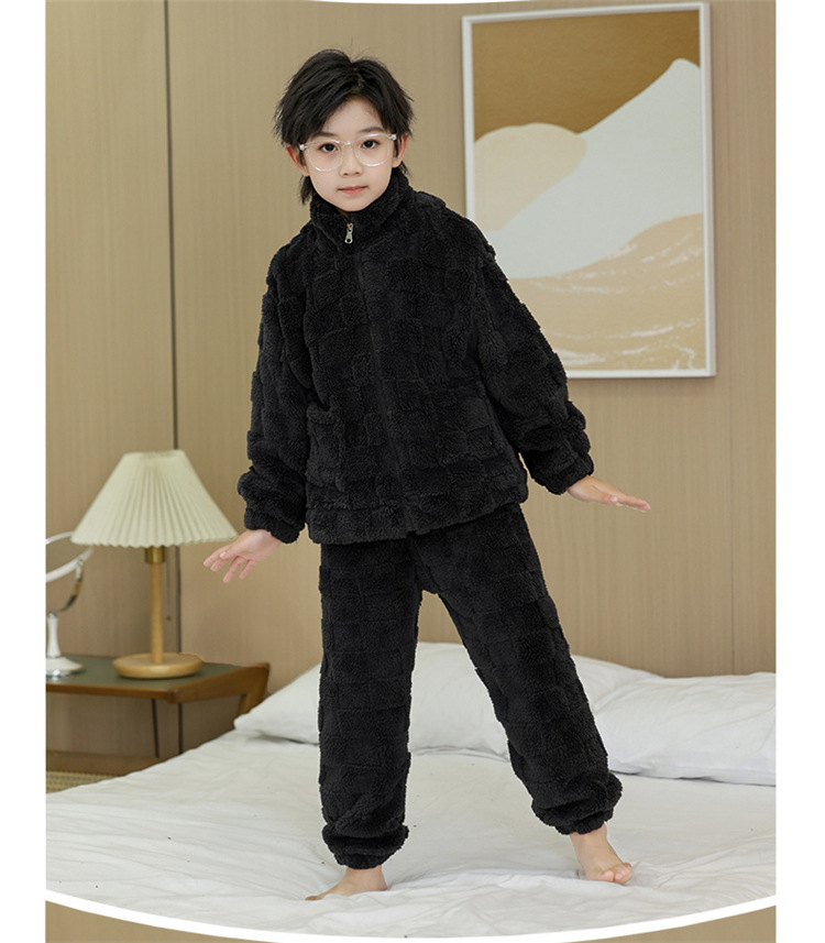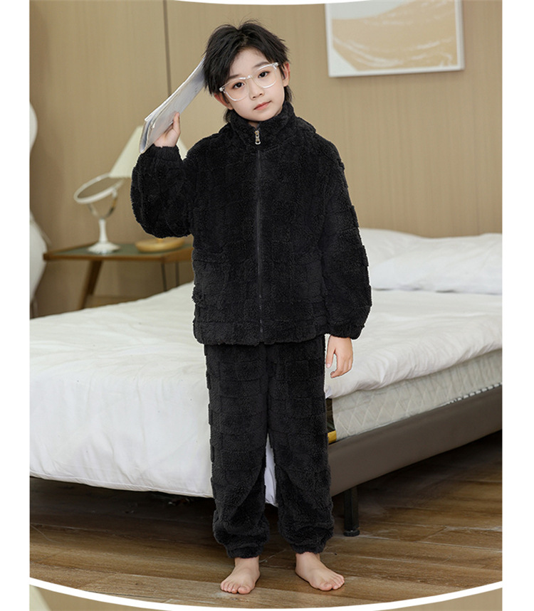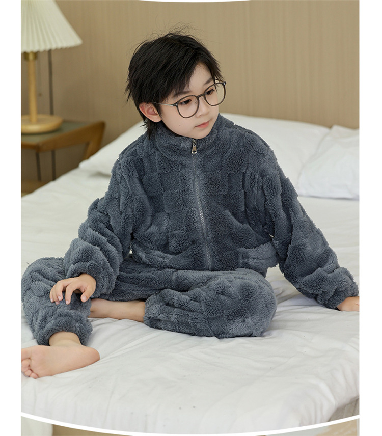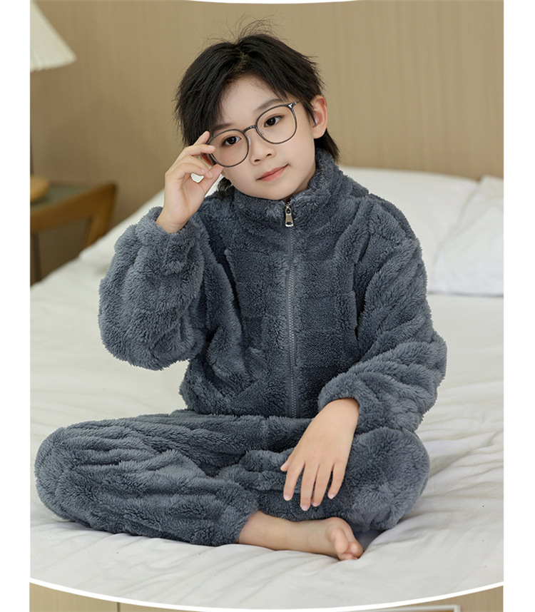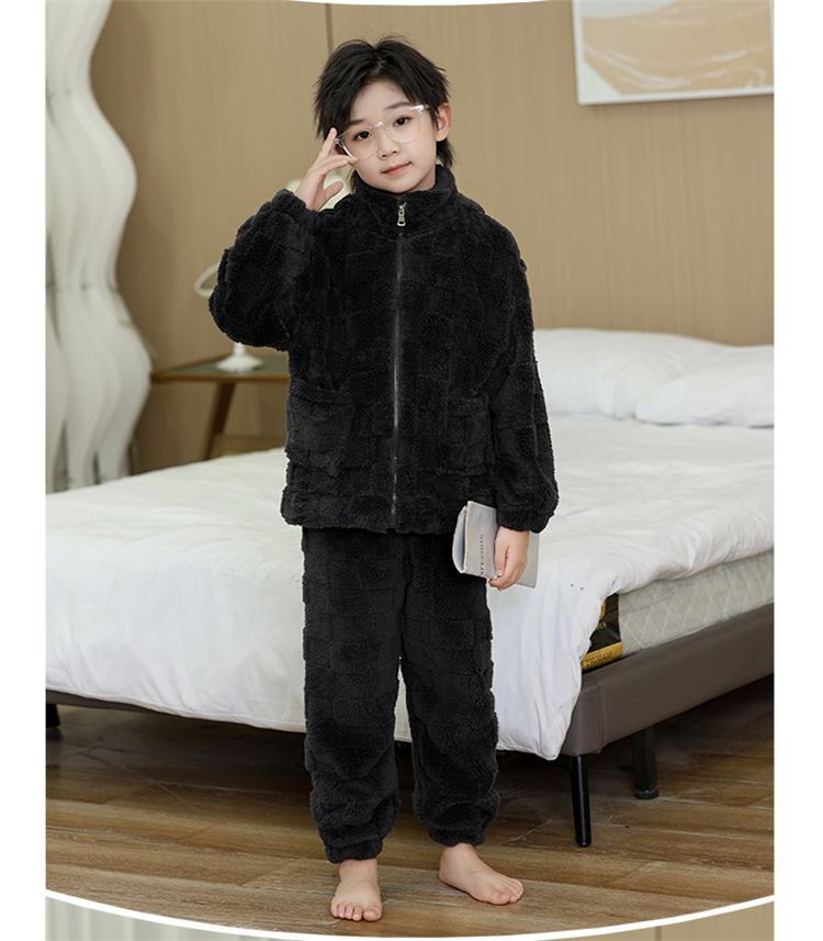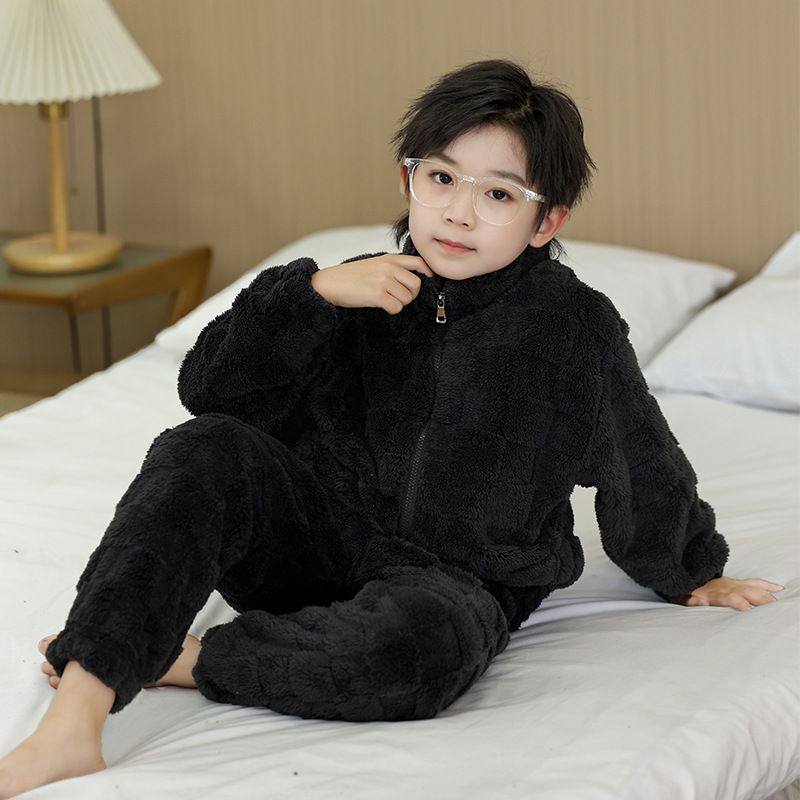 아동복 소년 플란넬 파자마 2024 새로운 청소년 겨울 두꺼운 산호 양털 홈 옷스토어 가기