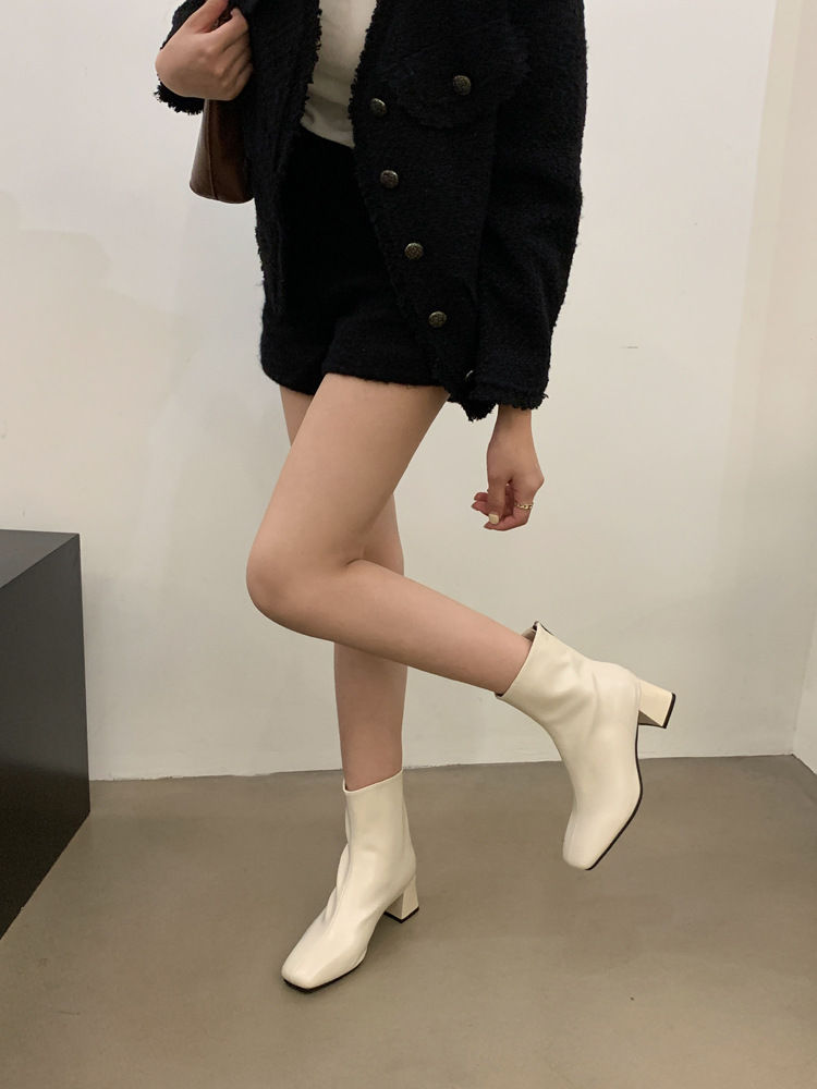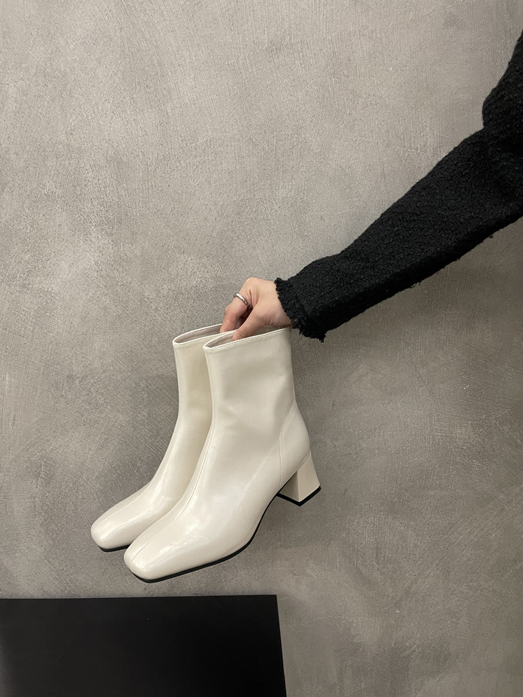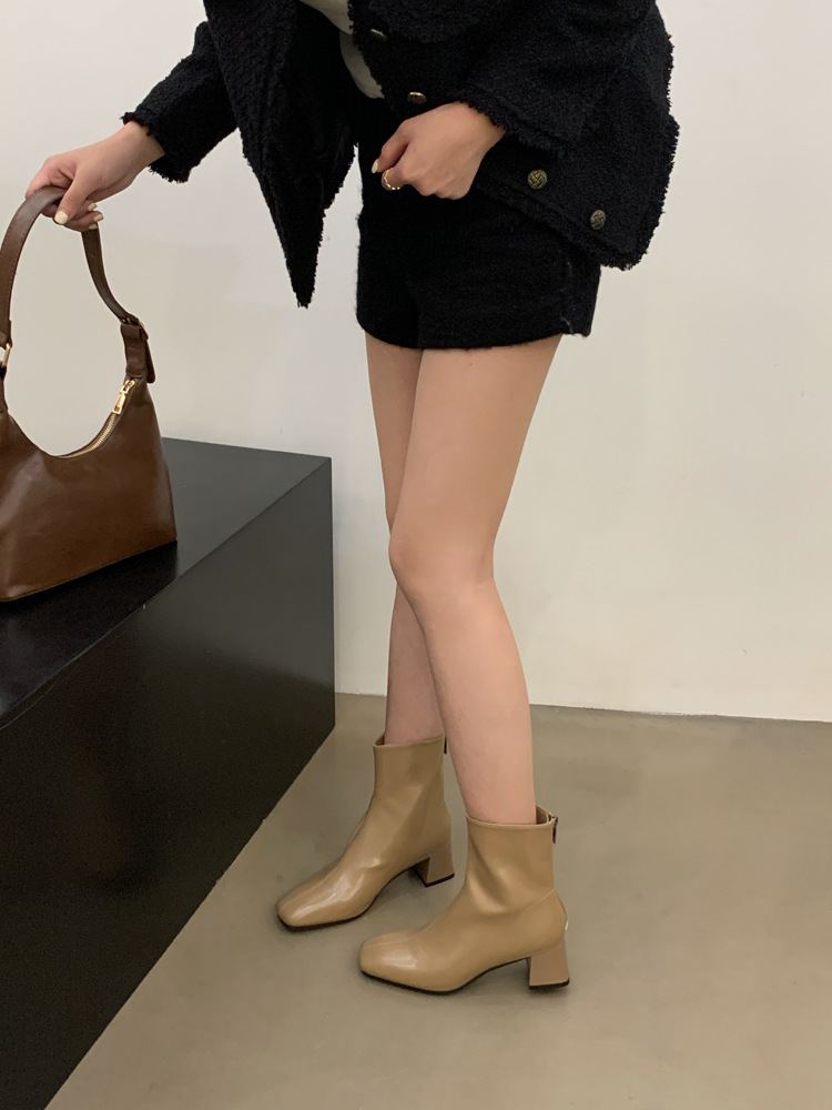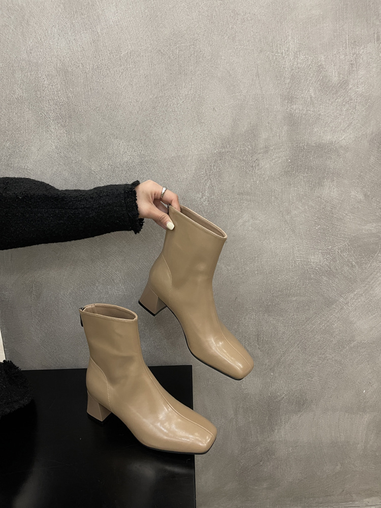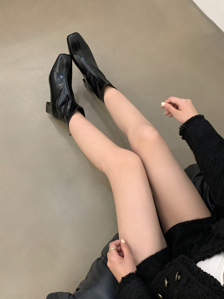 두꺼운 힐 쇼트 부츠 여자 2024 가을 및 겨울 새로운 슈퍼 핫 스트레치 얇은 부츠 올 매치 스퀘어 발가락 싱글 부츠 첼시 마틴 부츠스토어 가기
