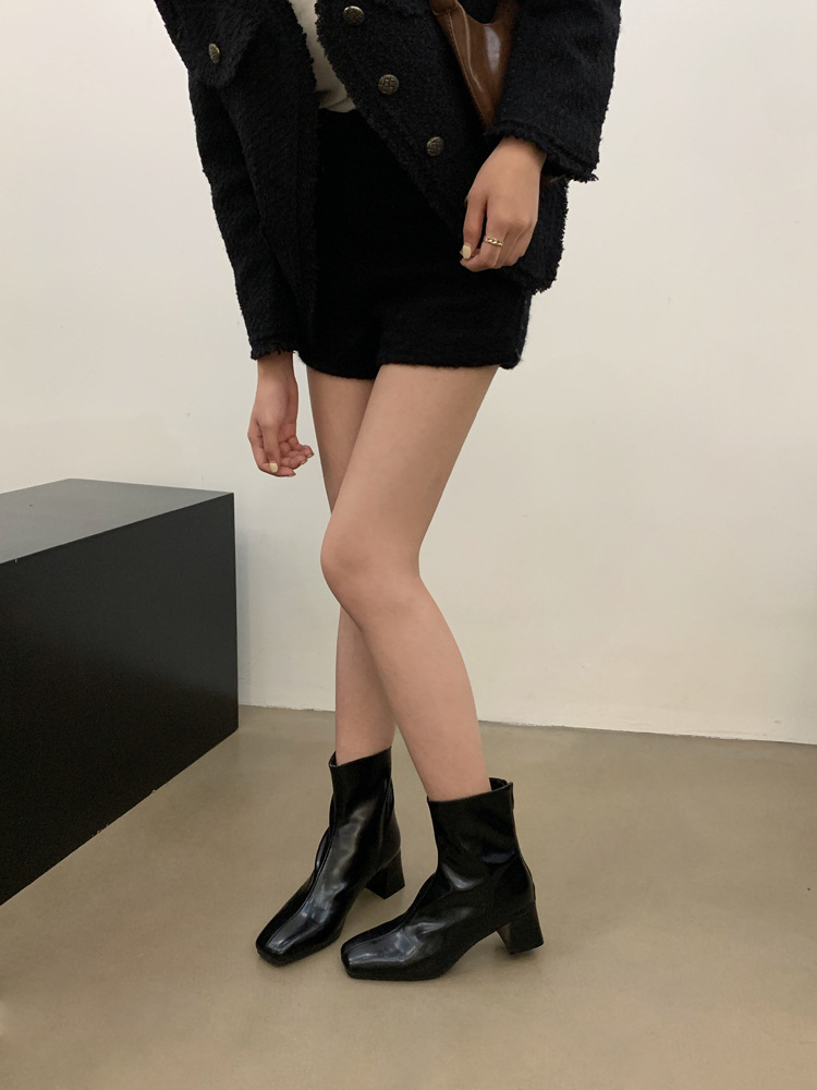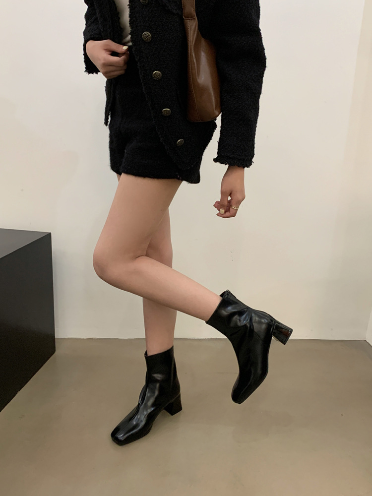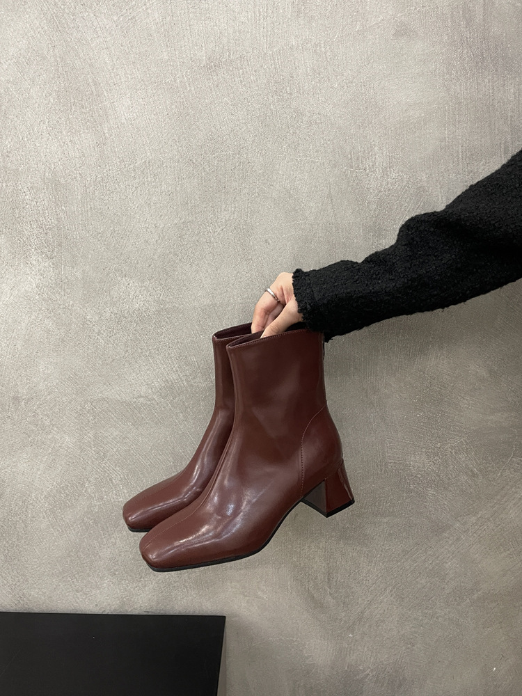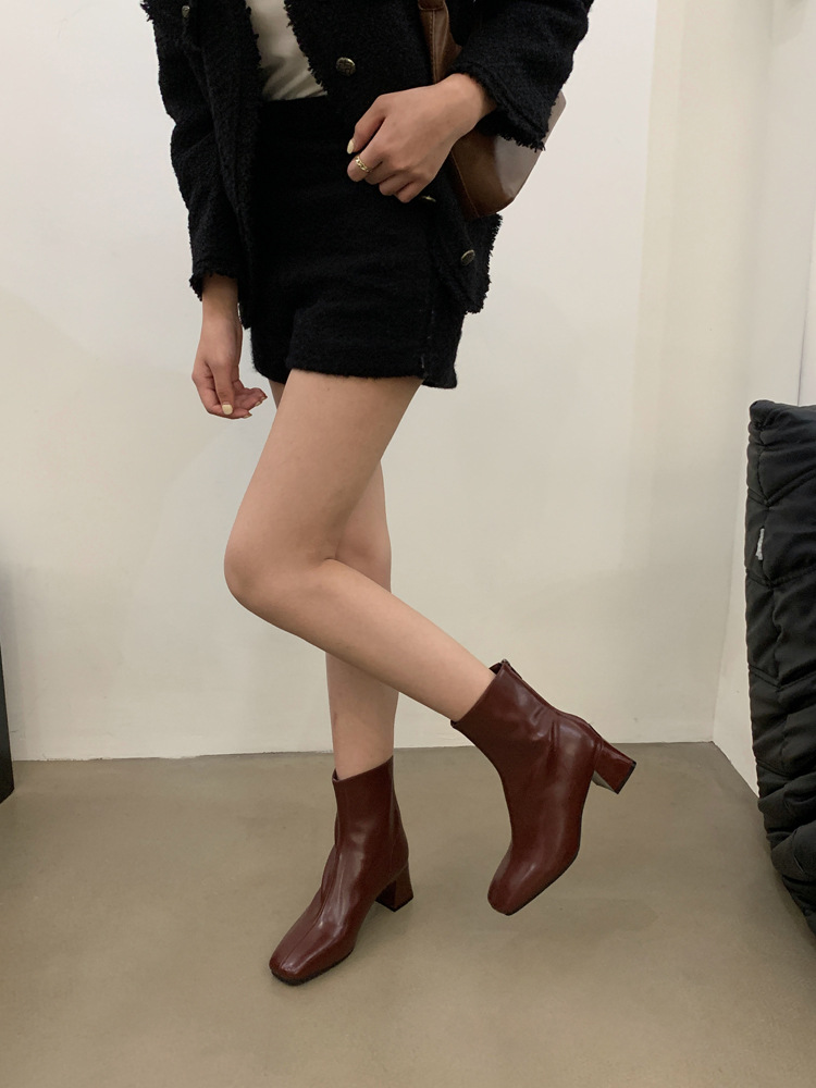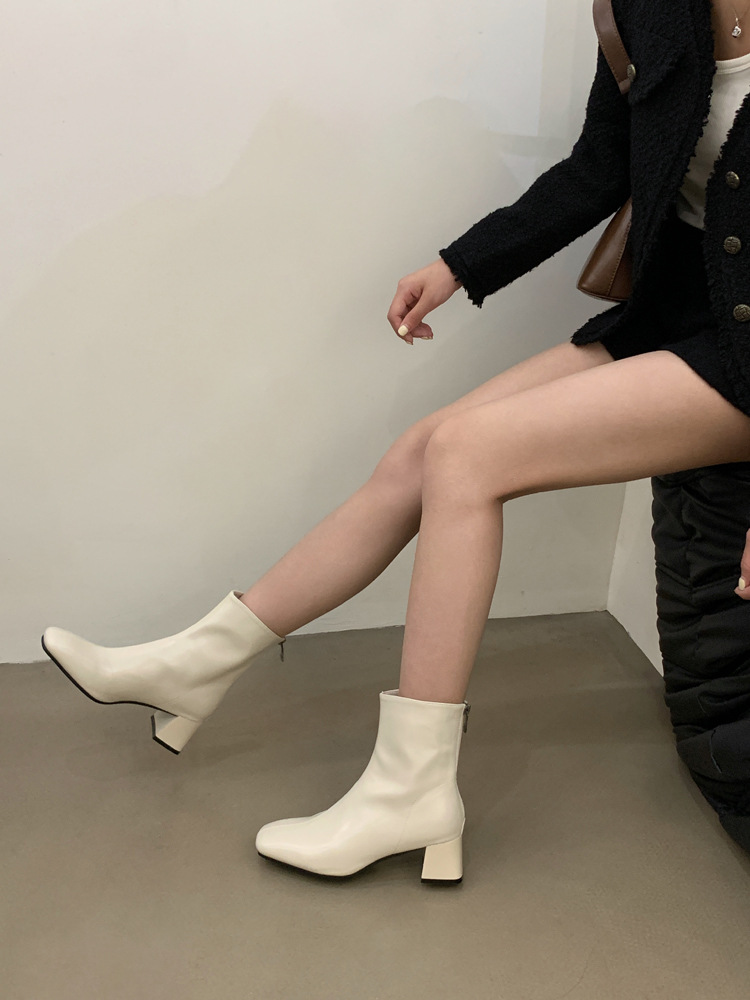 두꺼운 힐 쇼트 부츠 여자 2024 가을 및 겨울 새로운 슈퍼 핫 스트레치 얇은 부츠 올 매치 스퀘어 발가락 싱글 부츠 첼시 마틴 부츠스토어 가기