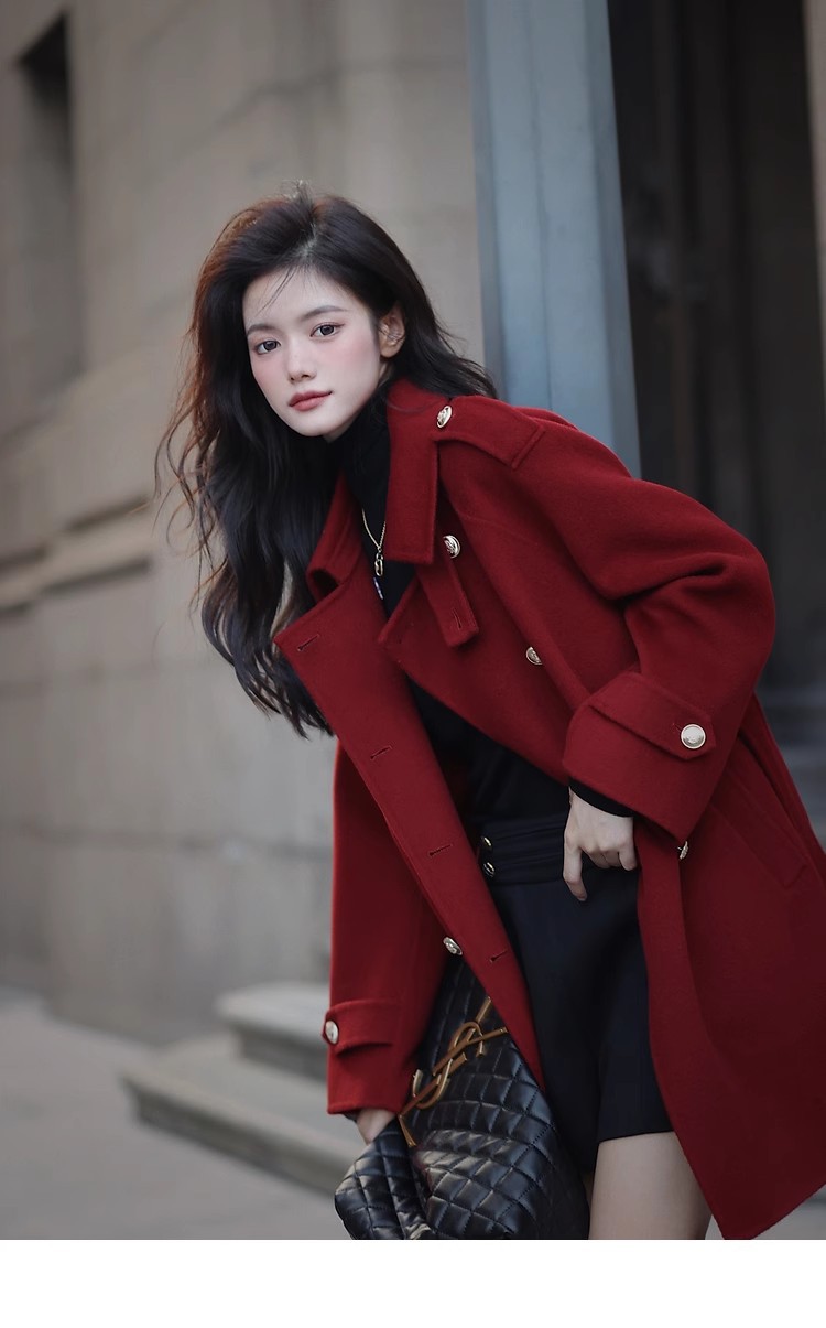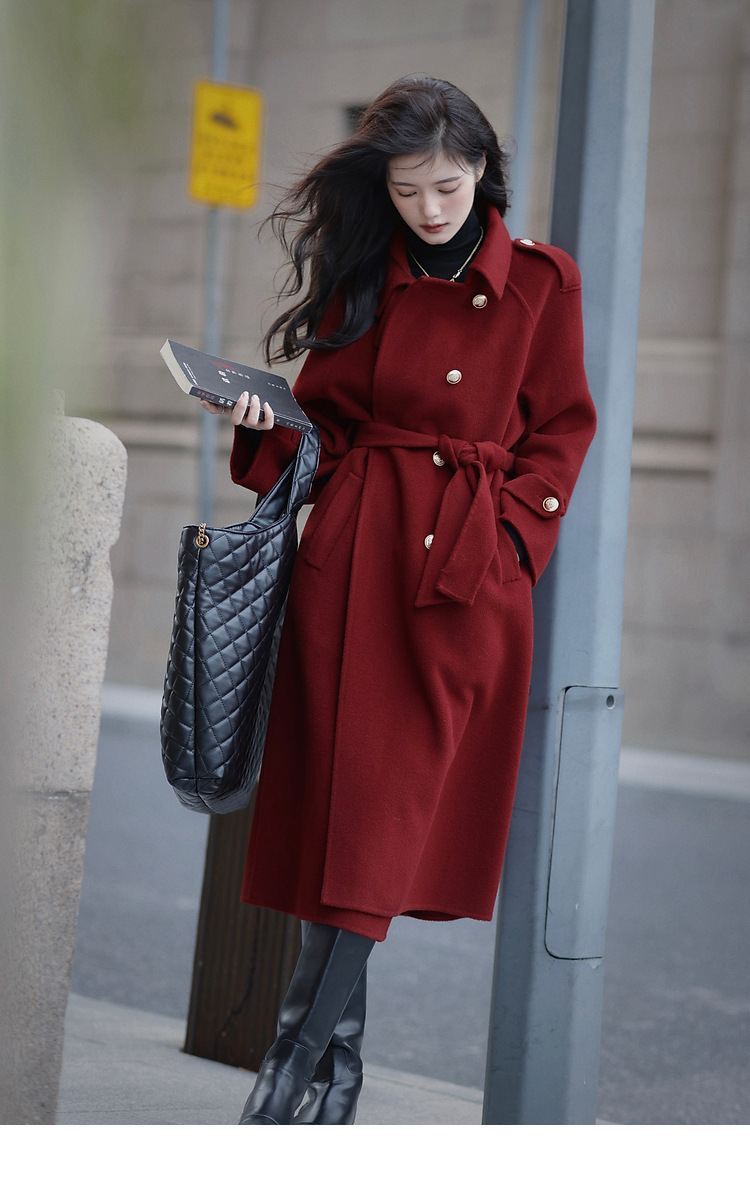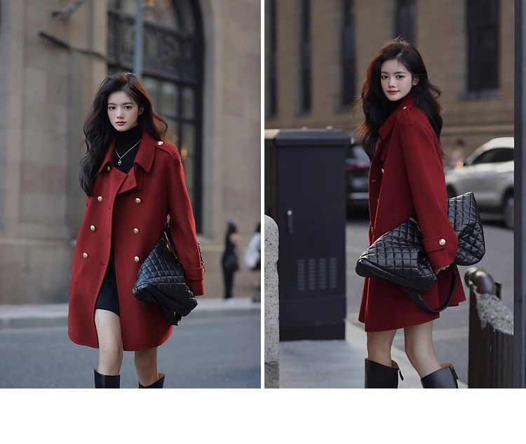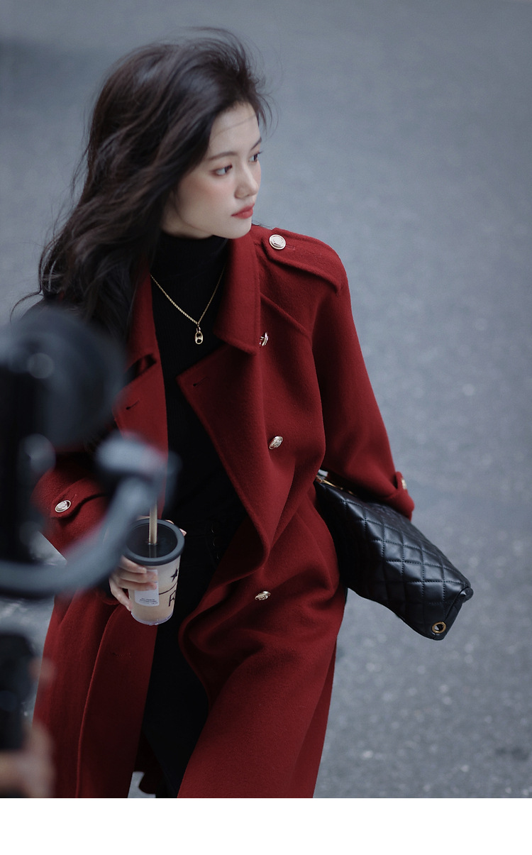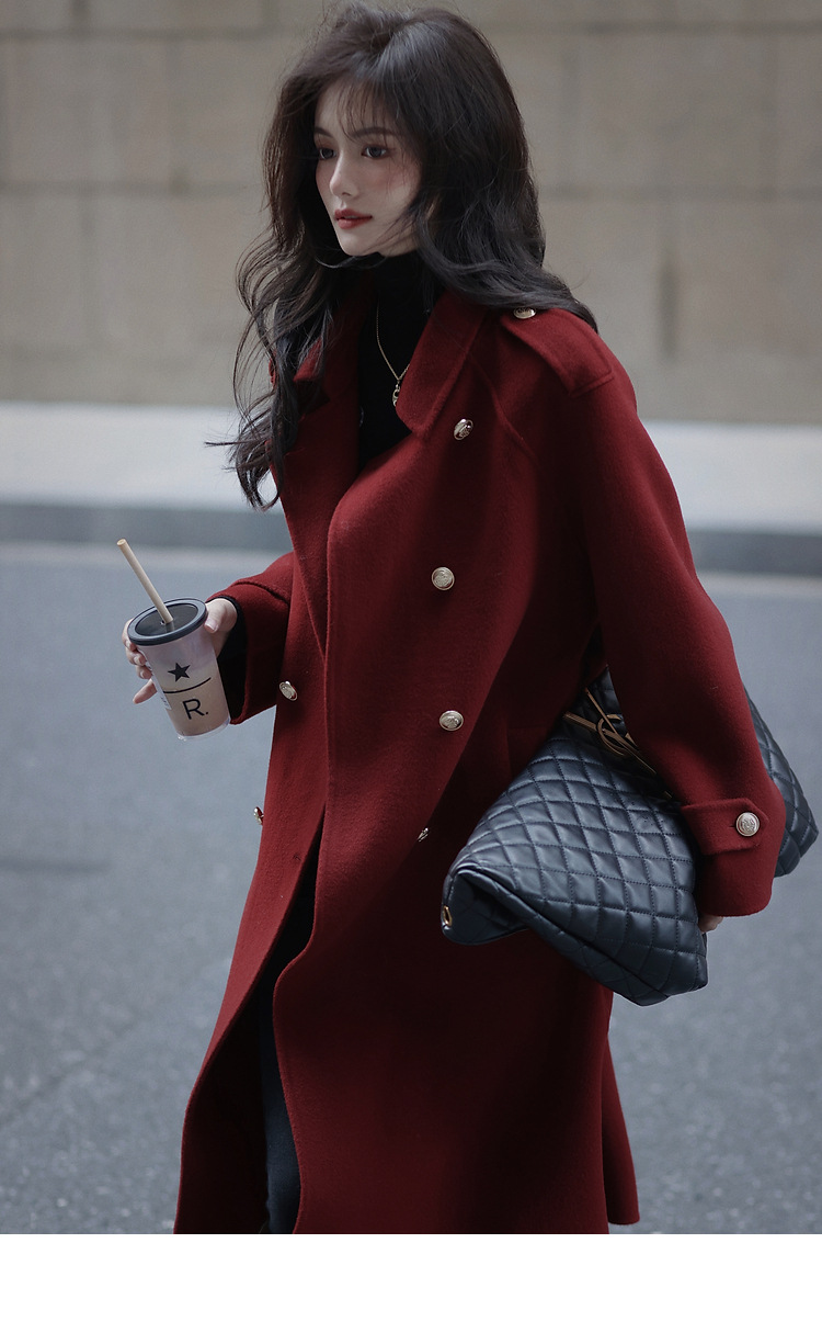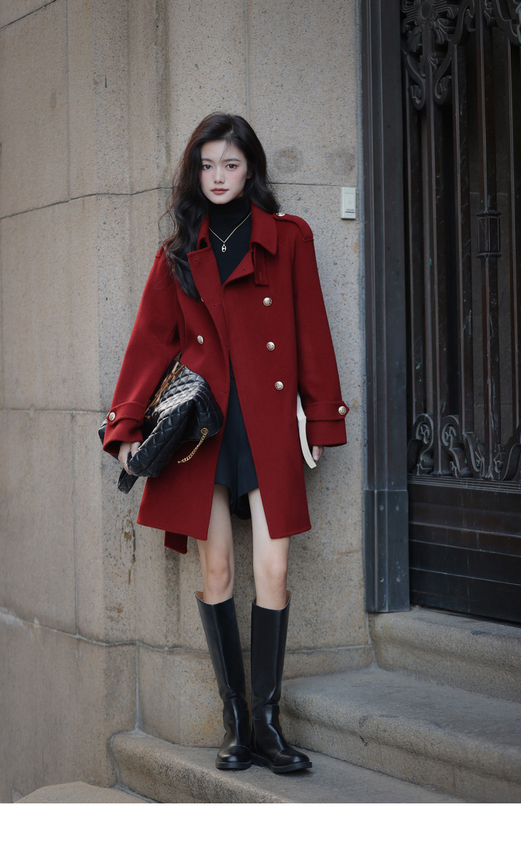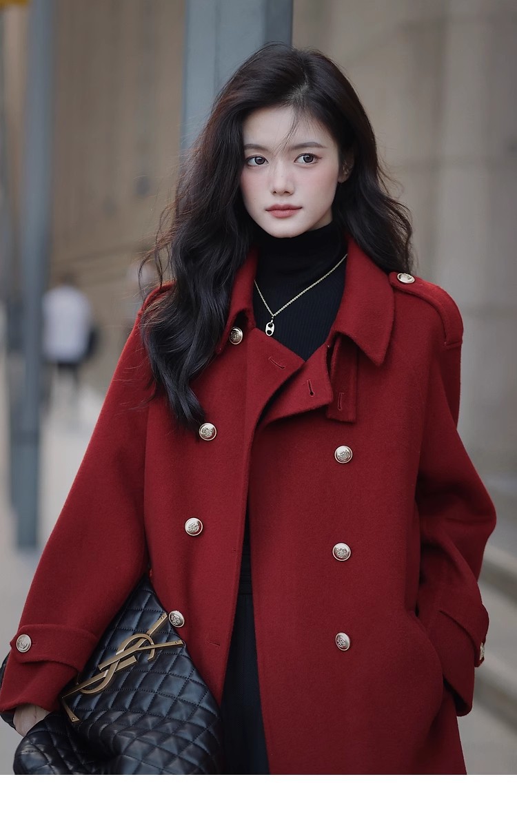 Ting 7617 가을과 겨울 새로운 우아한 새해의 로브 빈티지 모직 코트 레드 롱 골드 버튼 모직 코트 여성스토어 가기