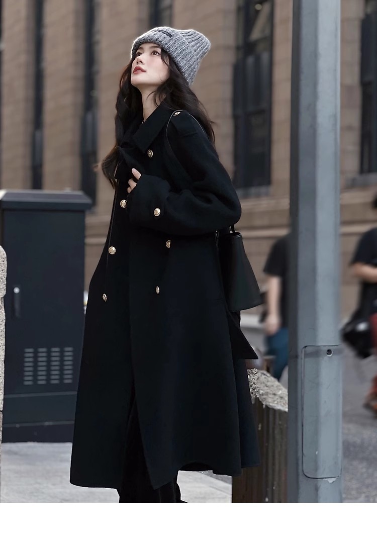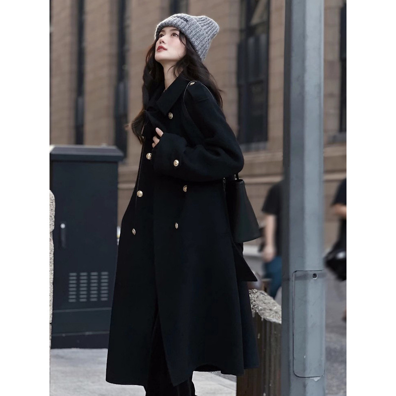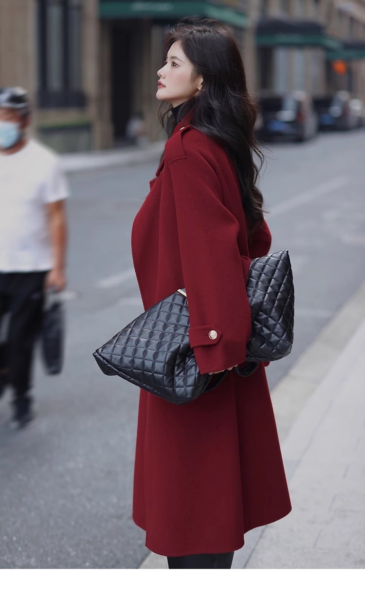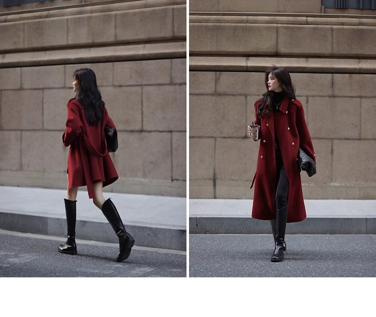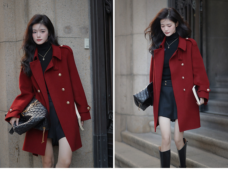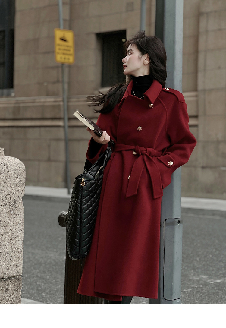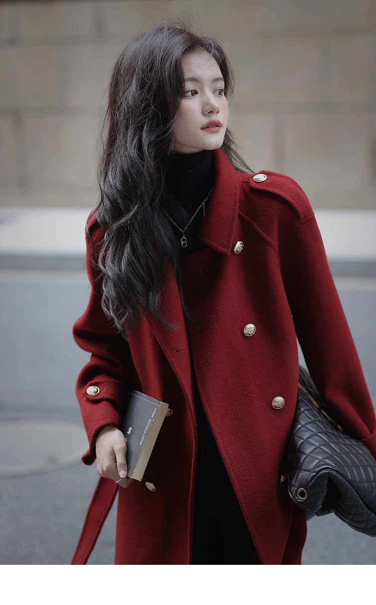 Ting 7617 가을과 겨울 새로운 우아한 새해의 로브 빈티지 모직 코트 레드 롱 골드 버튼 모직 코트 여성스토어 가기