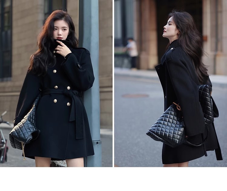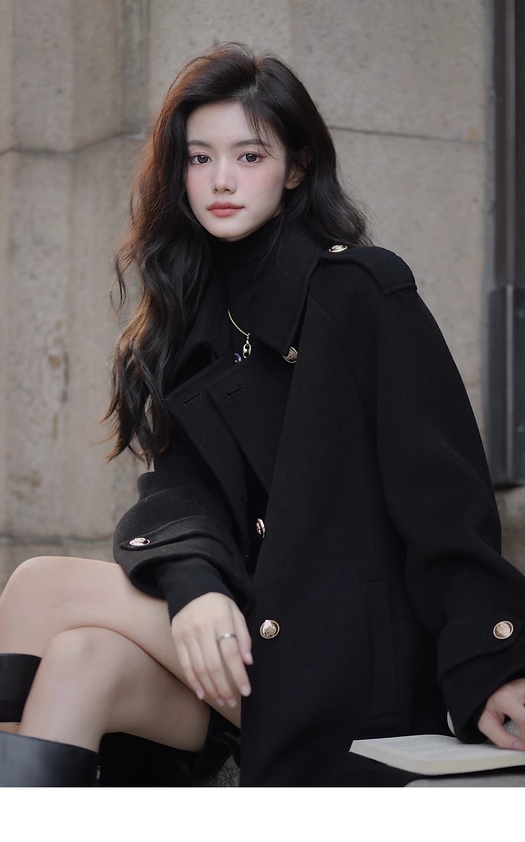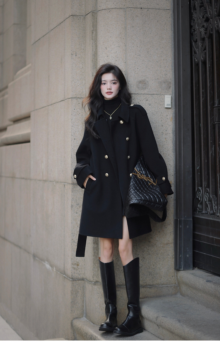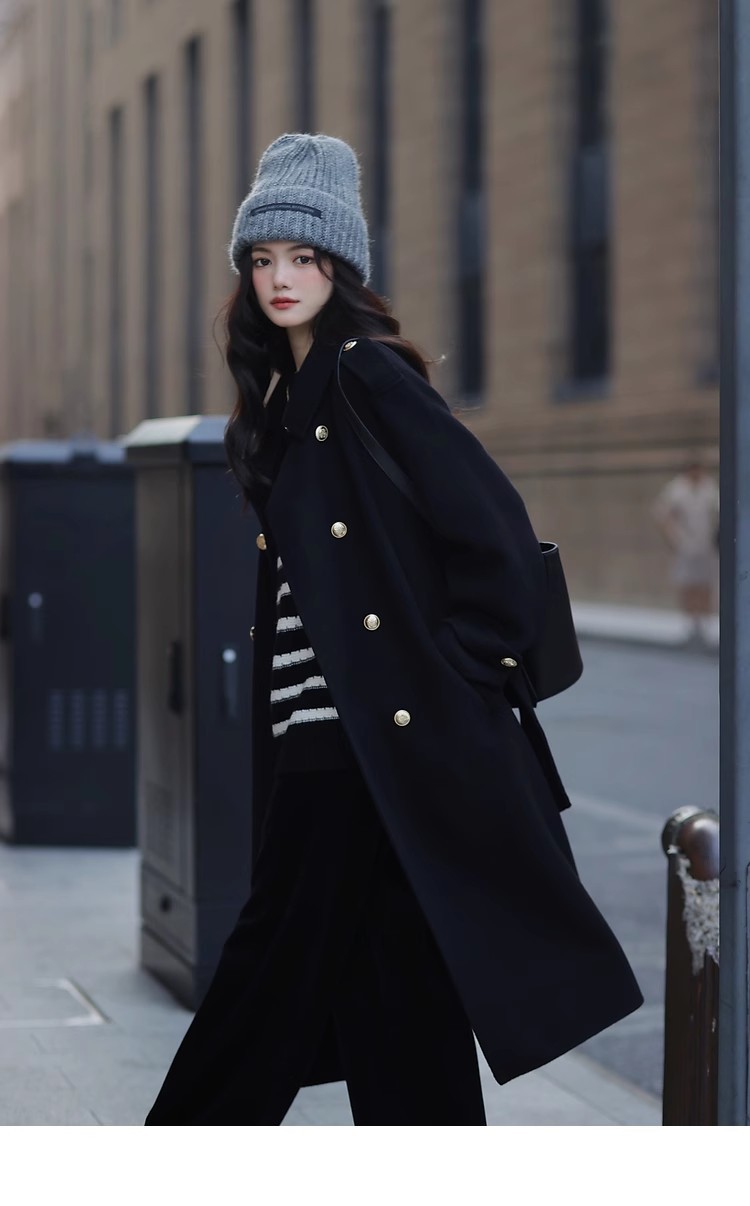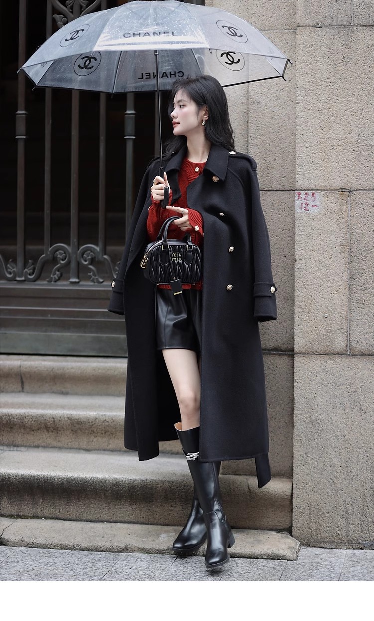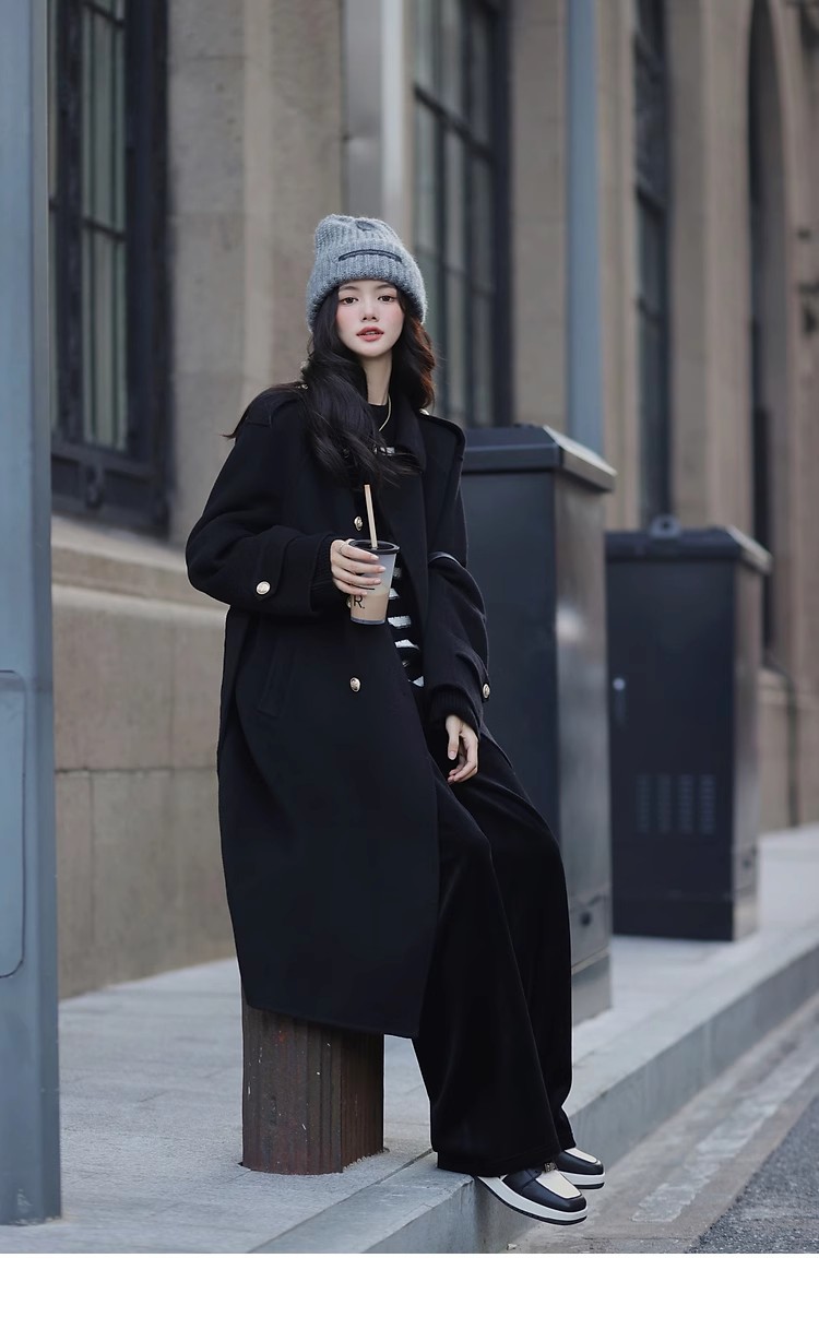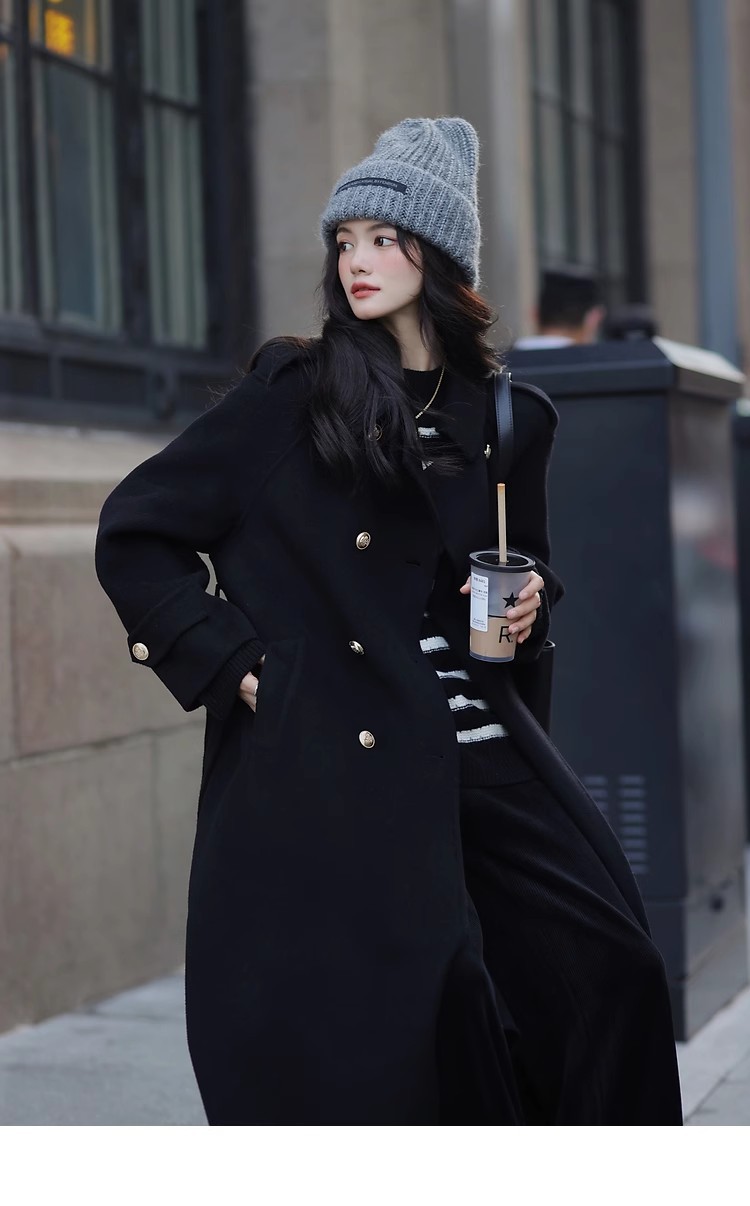 Ting 7617 가을과 겨울 새로운 우아한 새해의 로브 빈티지 모직 코트 레드 롱 골드 버튼 모직 코트 여성스토어 가기
