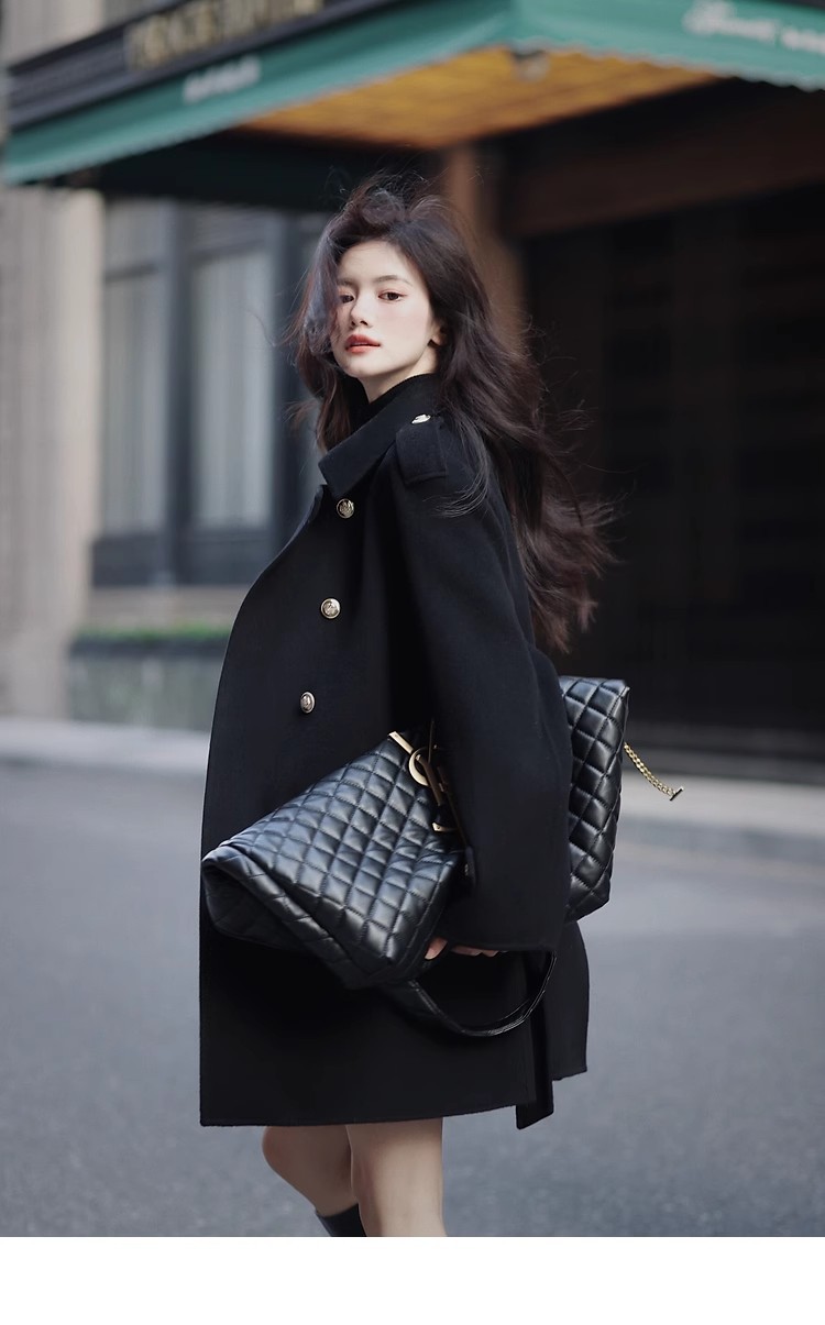 Ting 7617 가을과 겨울 새로운 우아한 새해의 로브 빈티지 모직 코트 레드 롱 골드 버튼 모직 코트 여성
