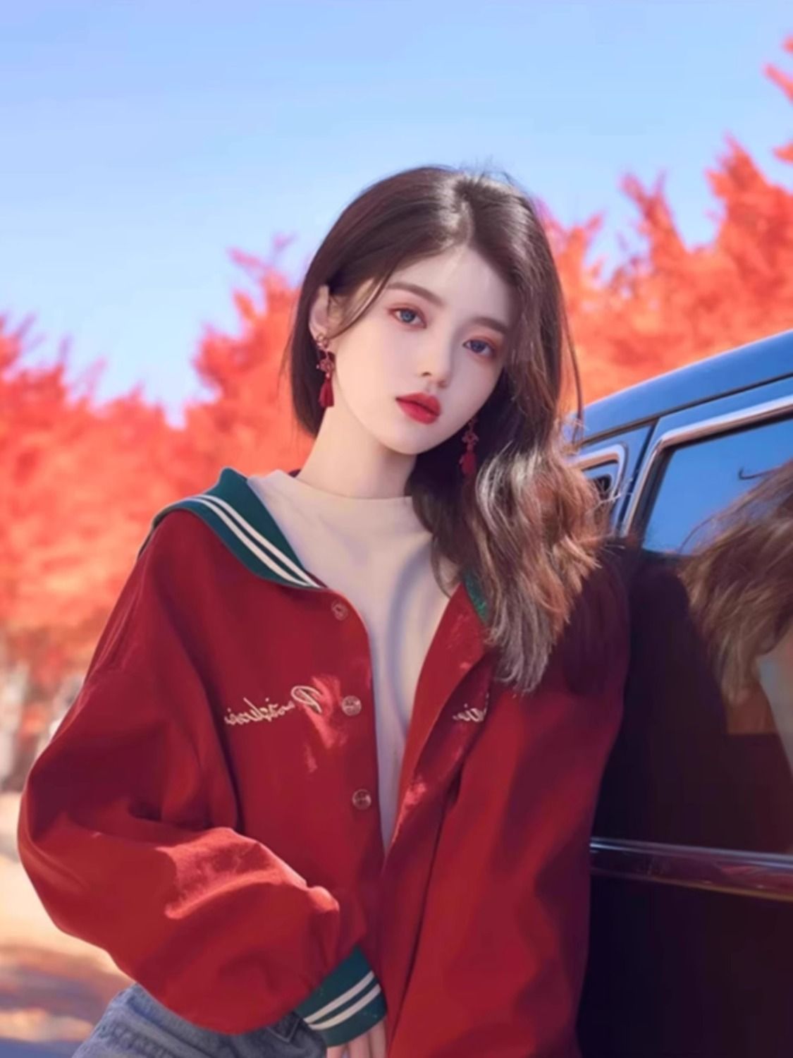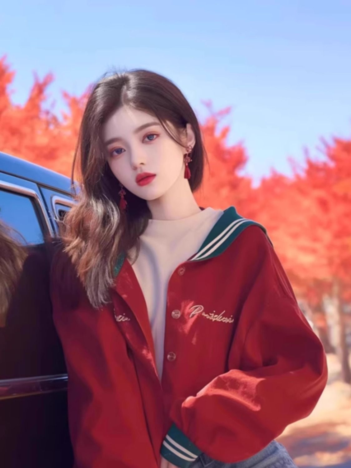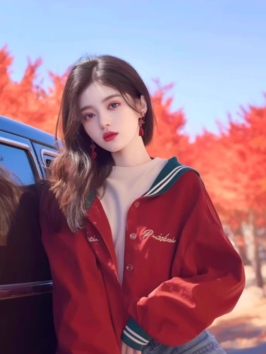 이른 가을 새로운 독특한 슈퍼 잘 생긴 탑 니치 웨스턴 스타일 한국 스타일 게으른 스타일 레드 프린트 여성용 긴팔 짧은 코트스토어 가기
