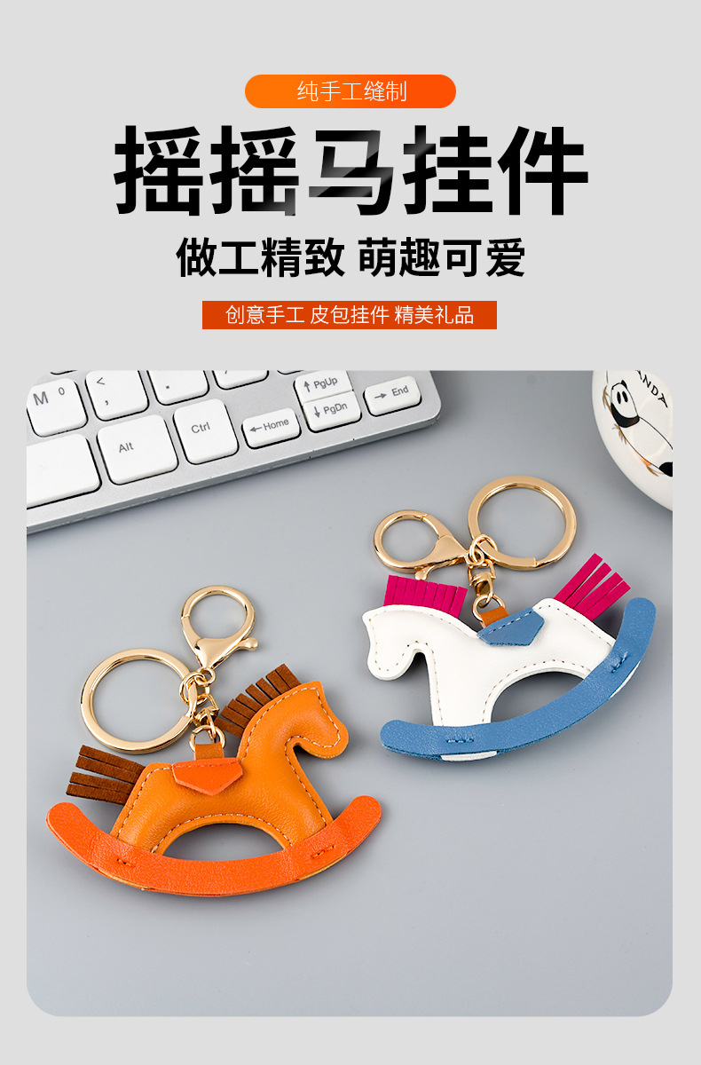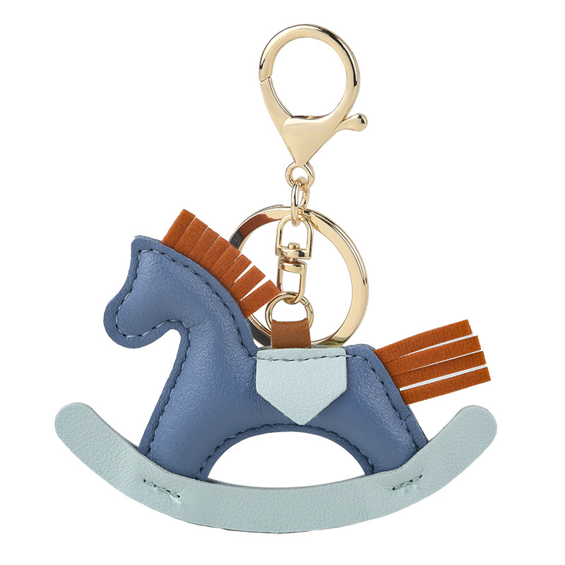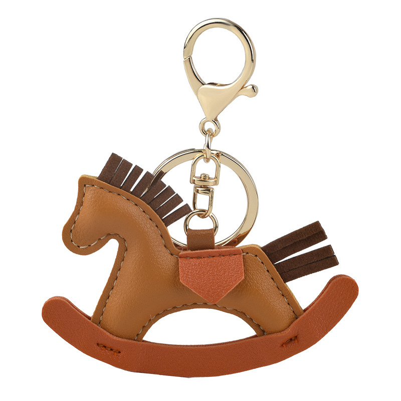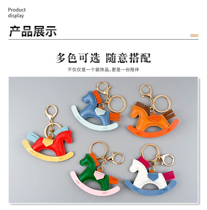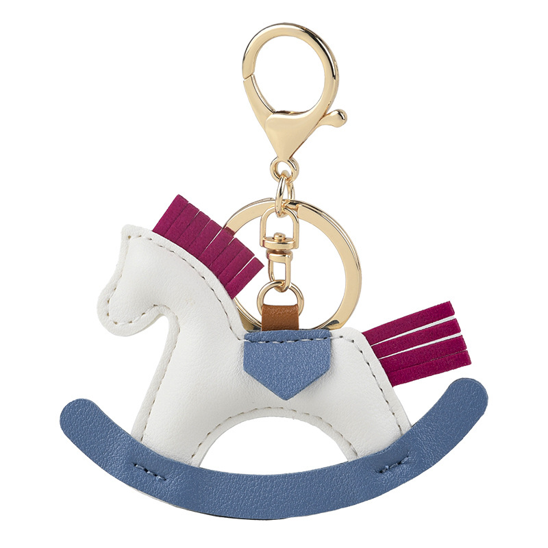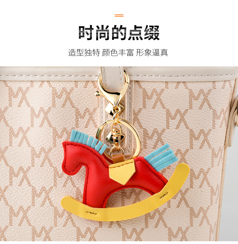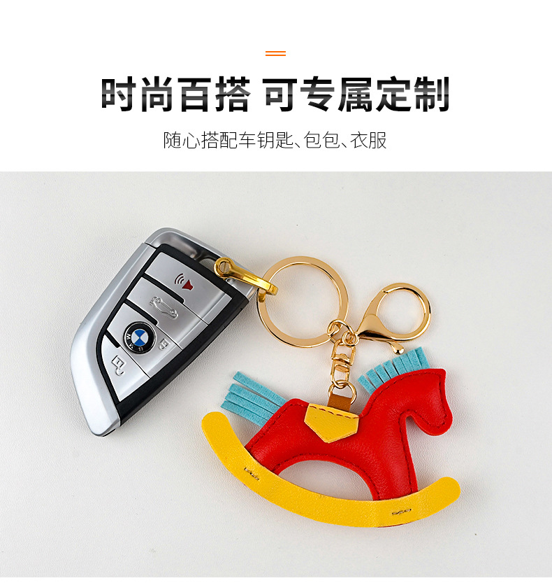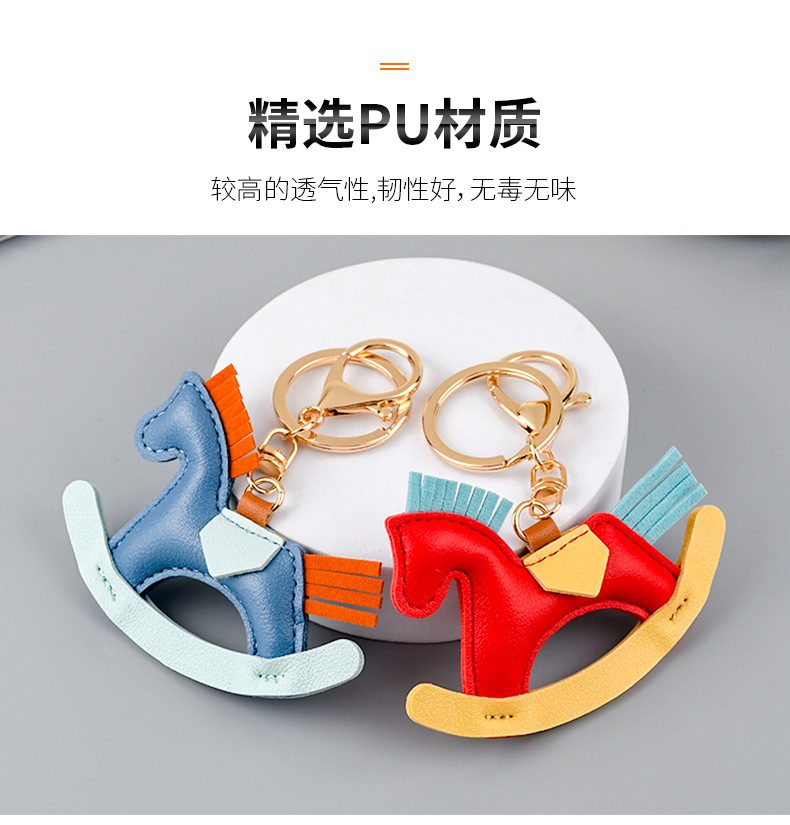 어린 시절 작은 트로이 목마 키 체인 펜던트 만화 로킹 말 가죽 걸이 수제 가죽 가방 자동차 키 체인스토어 가기