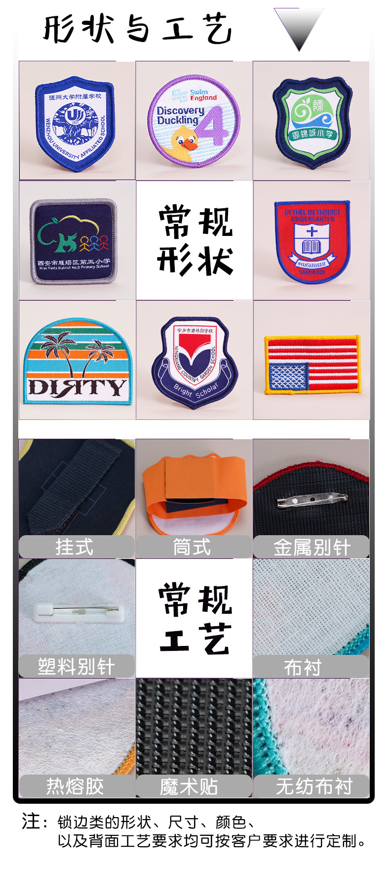공장 재고 직조 라벨, 락킹 라벨, 라벨 뒷면 접착제, 벨크로, 학교 배지, 특수 모양 컬러 폴리에스터 라벨