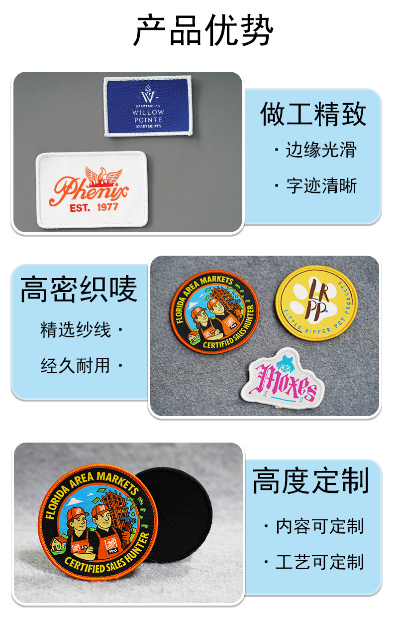 공장 재고 직조 라벨, 락킹 라벨, 라벨 뒷면 접착제, 벨크로, 학교 배지, 특수 모양 컬러 폴리에스터 라벨스토어 가기