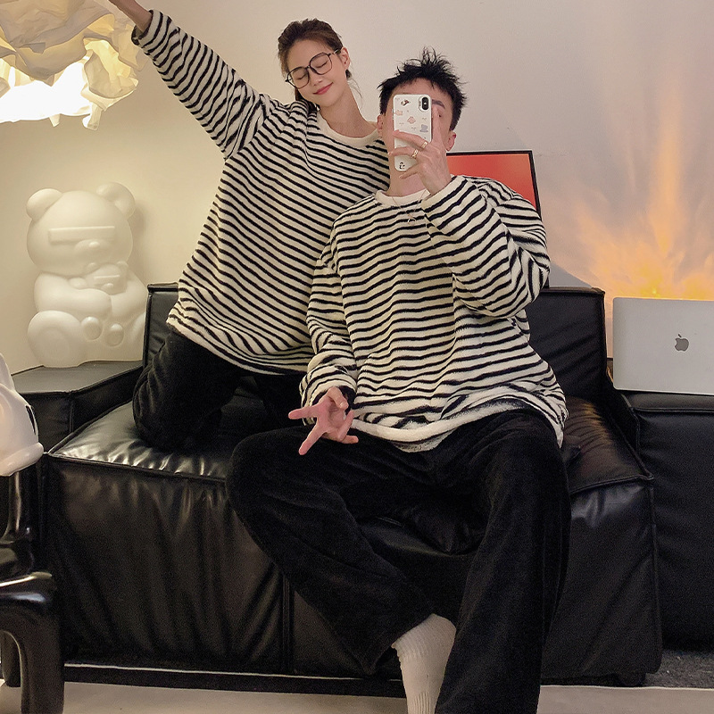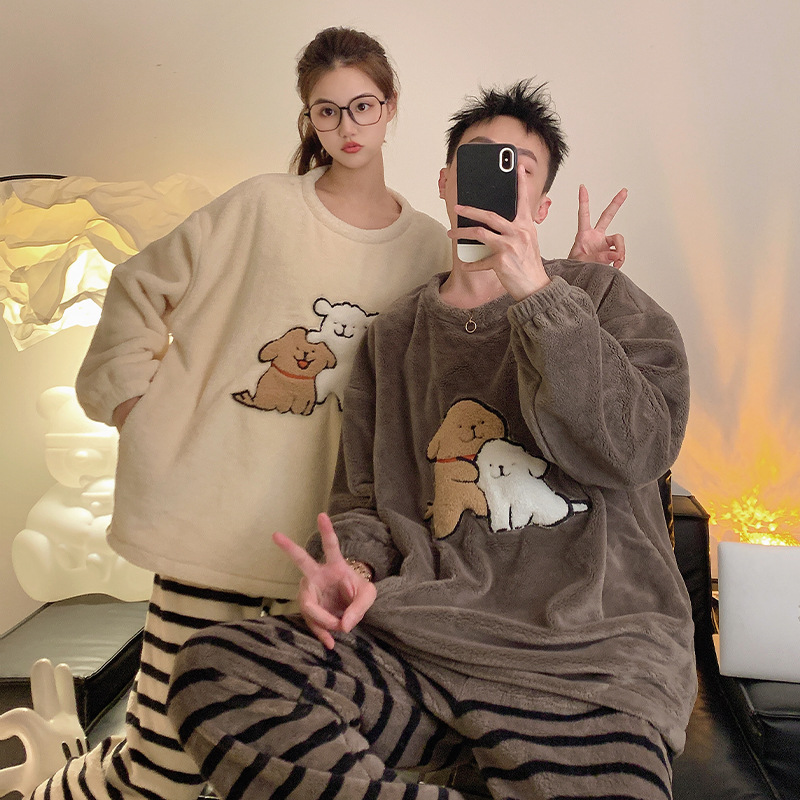 산호 벨벳 커플 플러스 사이즈 잠옷 여성 가을과 겨울 기모 두꺼운 플란넬 커플 파자마 홈 옷 라이브 세트스토어 가기