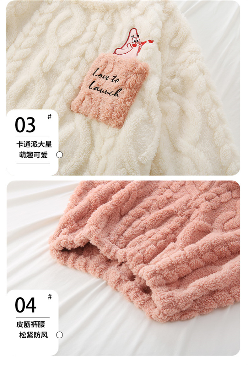 산호 벨벳 커플 플러스 사이즈 잠옷 여성 가을과 겨울 기모 두꺼운 플란넬 커플 파자마 홈 옷 라이브 세트