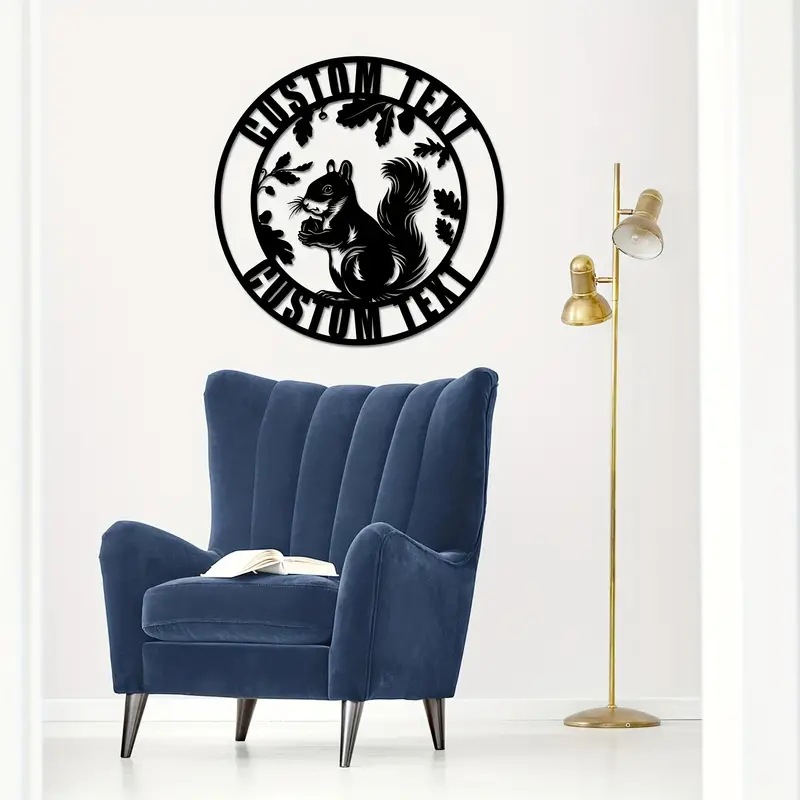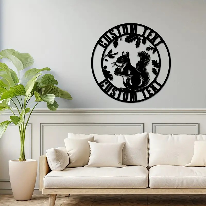 국경 다람쥐 실루엣 금속 벽 예술-개인화 된 마지막 이름 표시, 야외 정원 및 주방 장식스토어 가기