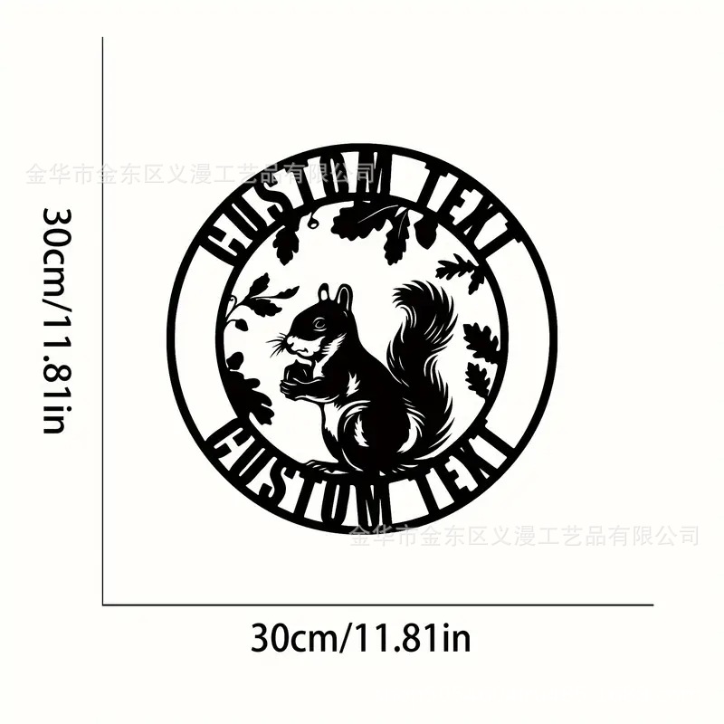 국경 다람쥐 실루엣 금속 벽 예술-개인화 된 마지막 이름 표시, 야외 정원 및 주방 장식