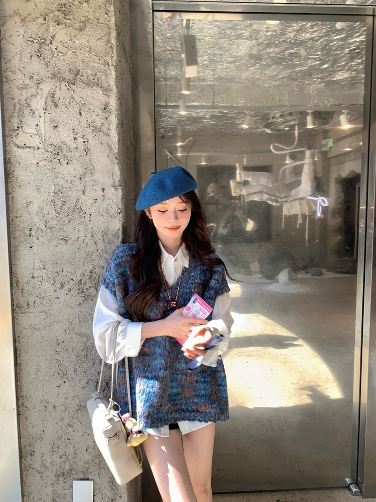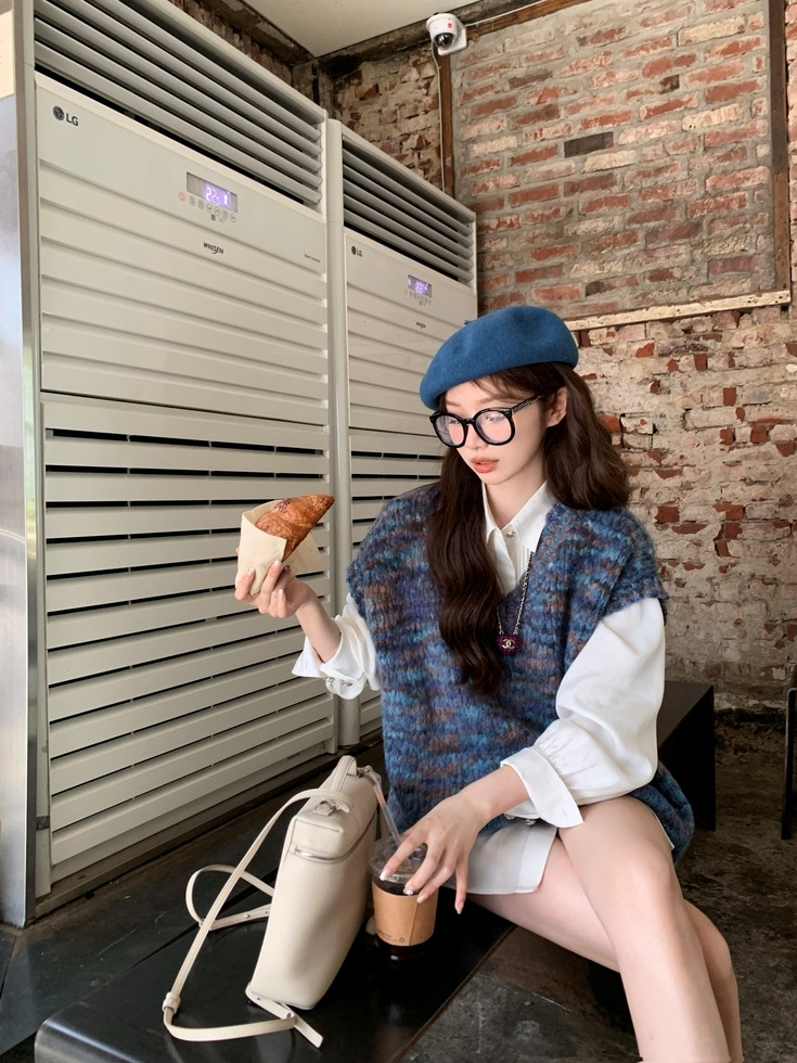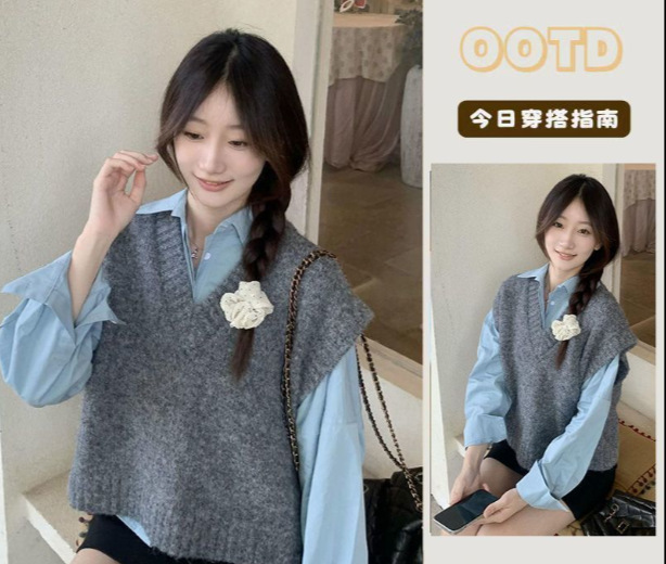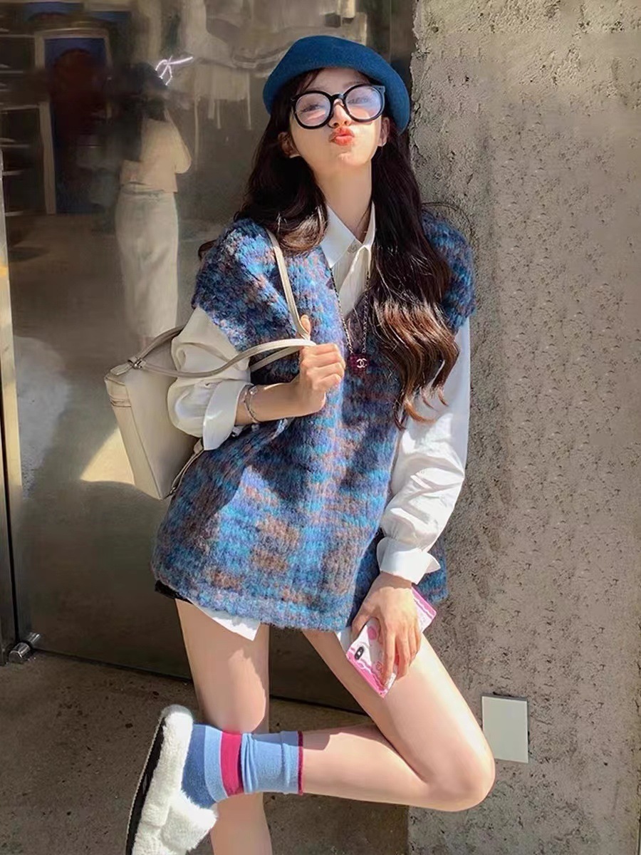 신선하고 귀여운 패션 캐주얼 아우터 느슨한 게으른 스타일 조끼 최고 여성 올 매치 셔츠 우아한 투피스 세트