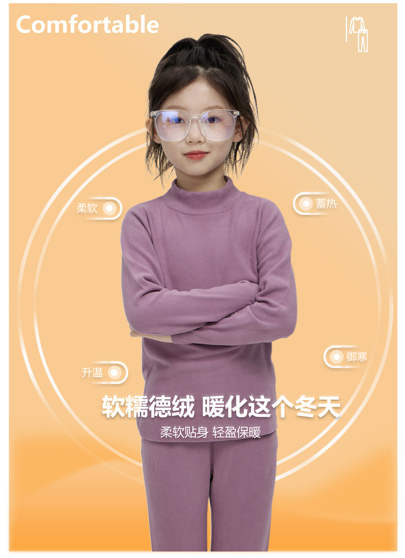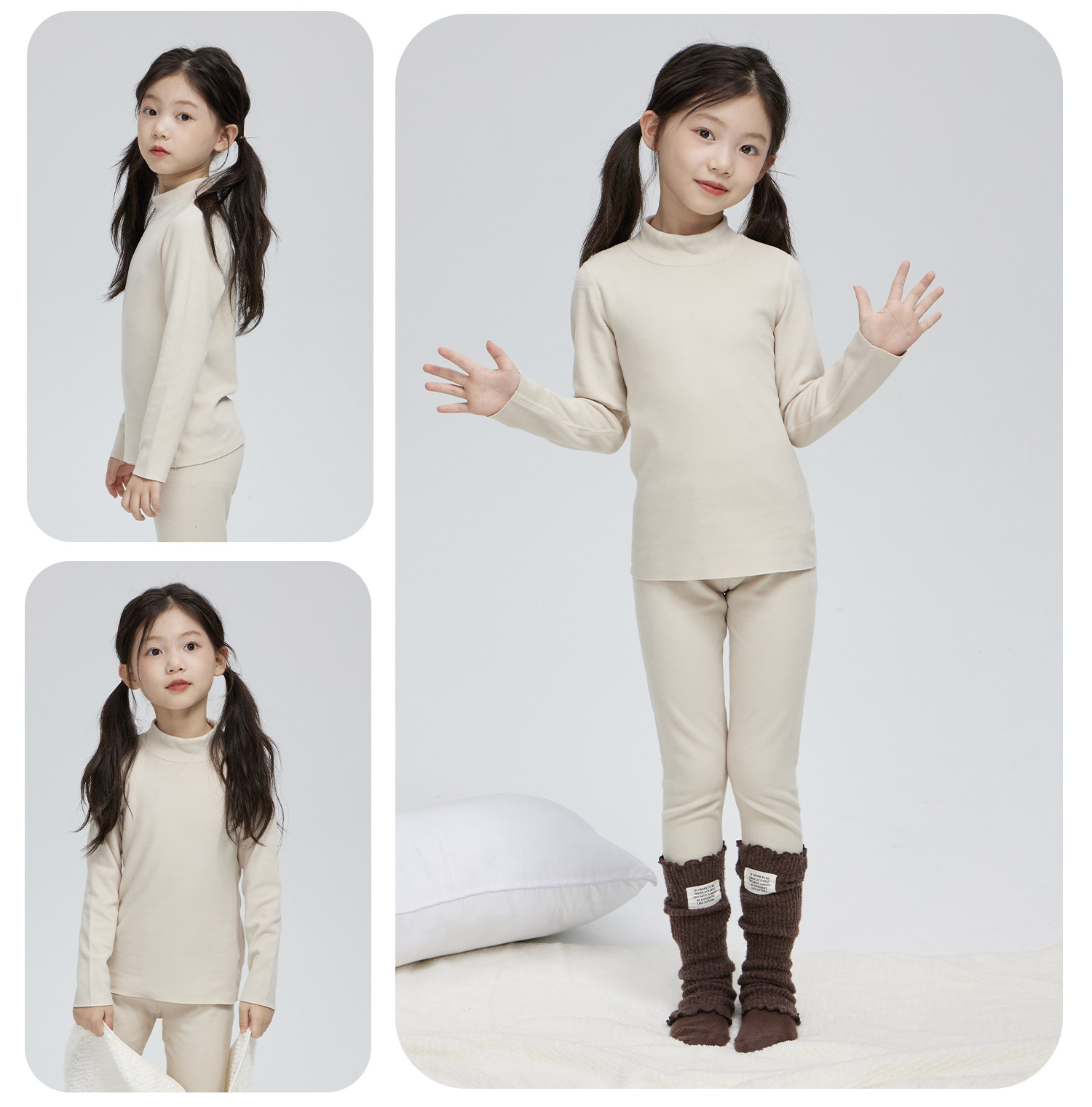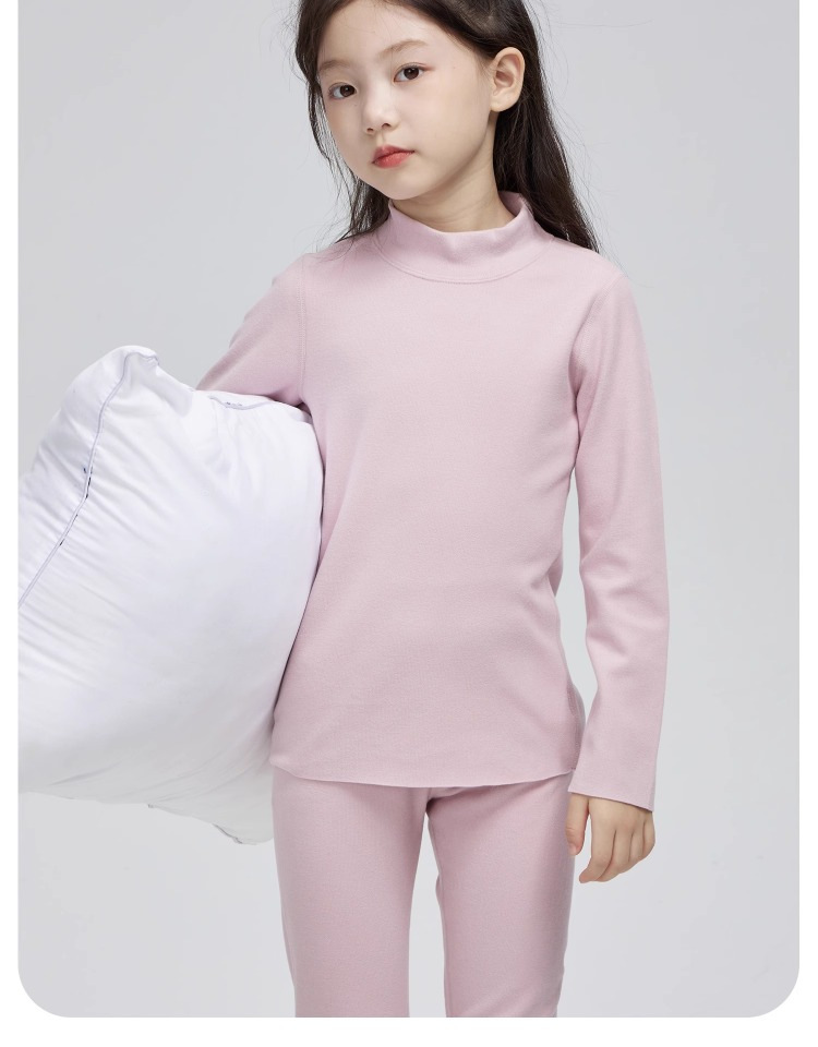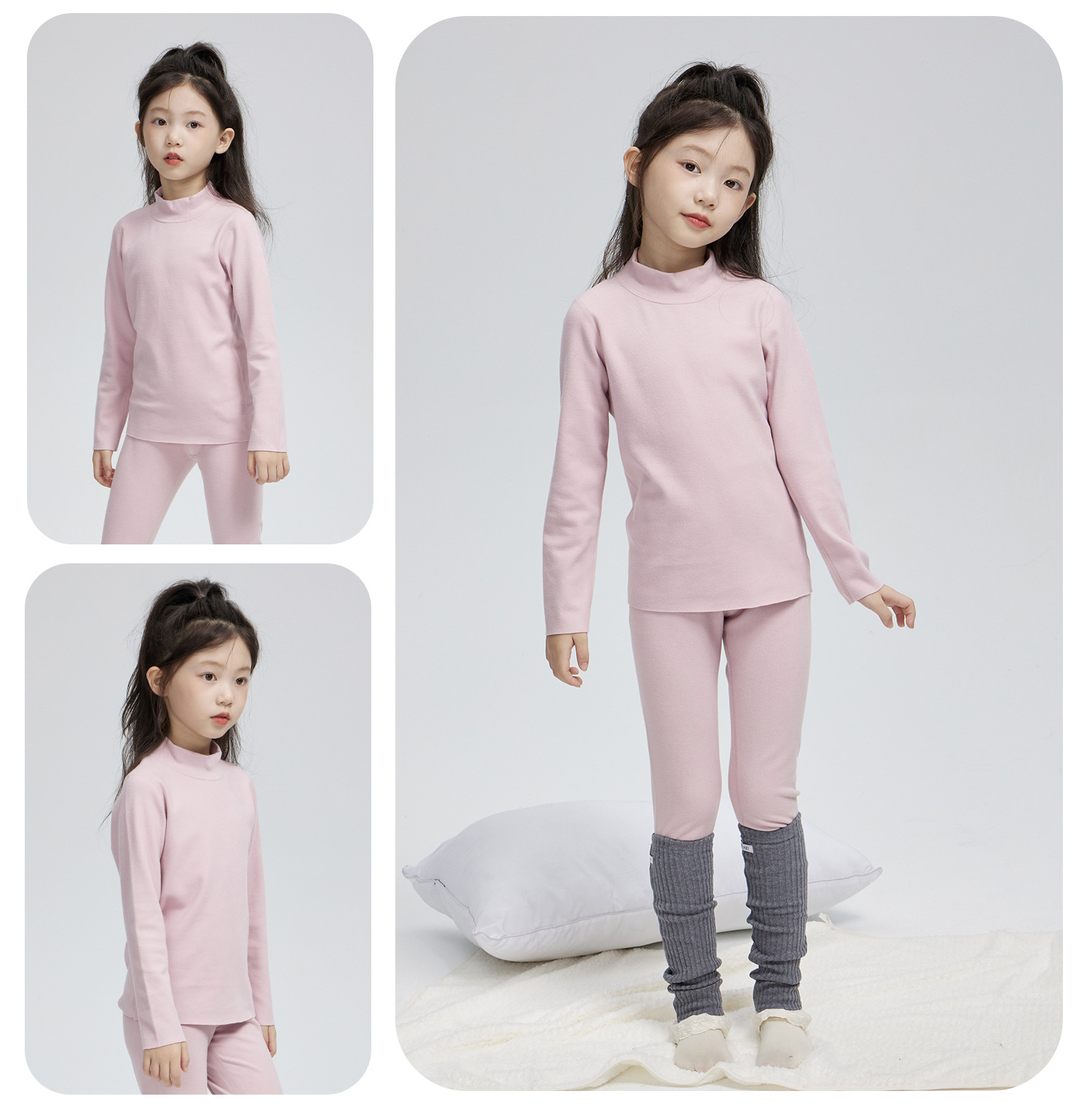 여자 벨벳 열 속옷 세트 2024 가을 겨울 어린이 반 높이 칼라 가을 옷과 바지 홈 옷 투피스 세트스토어 가기