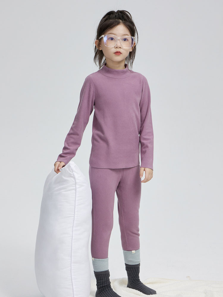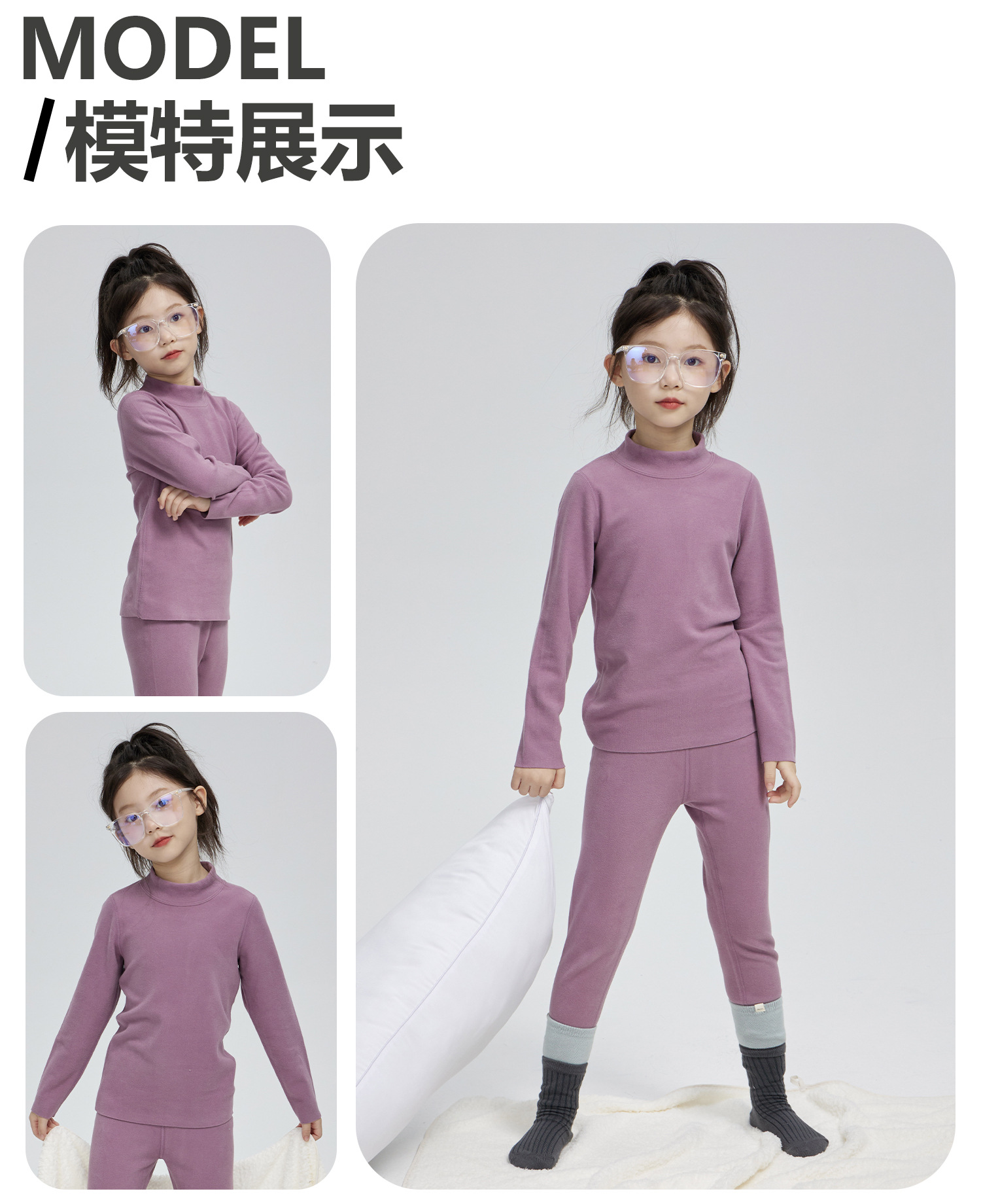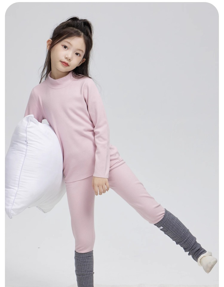 여자 벨벳 열 속옷 세트 2024 가을 겨울 어린이 반 높이 칼라 가을 옷과 바지 홈 옷 투피스 세트