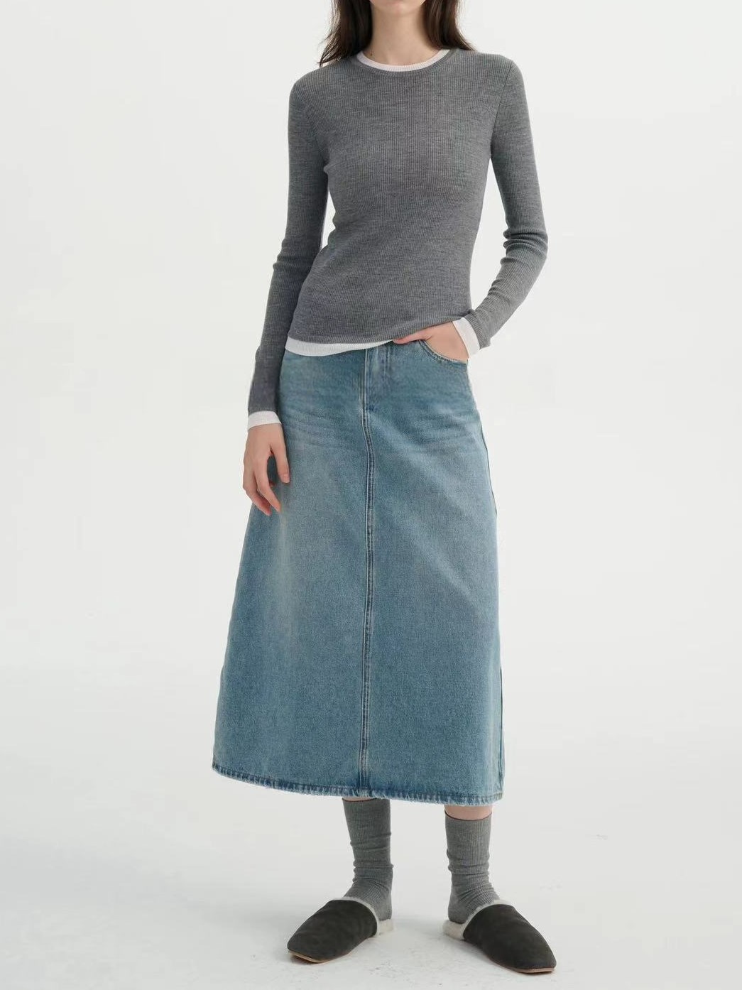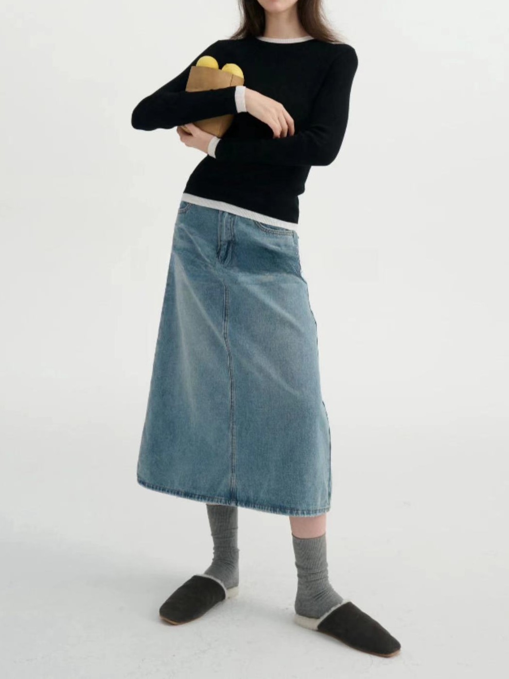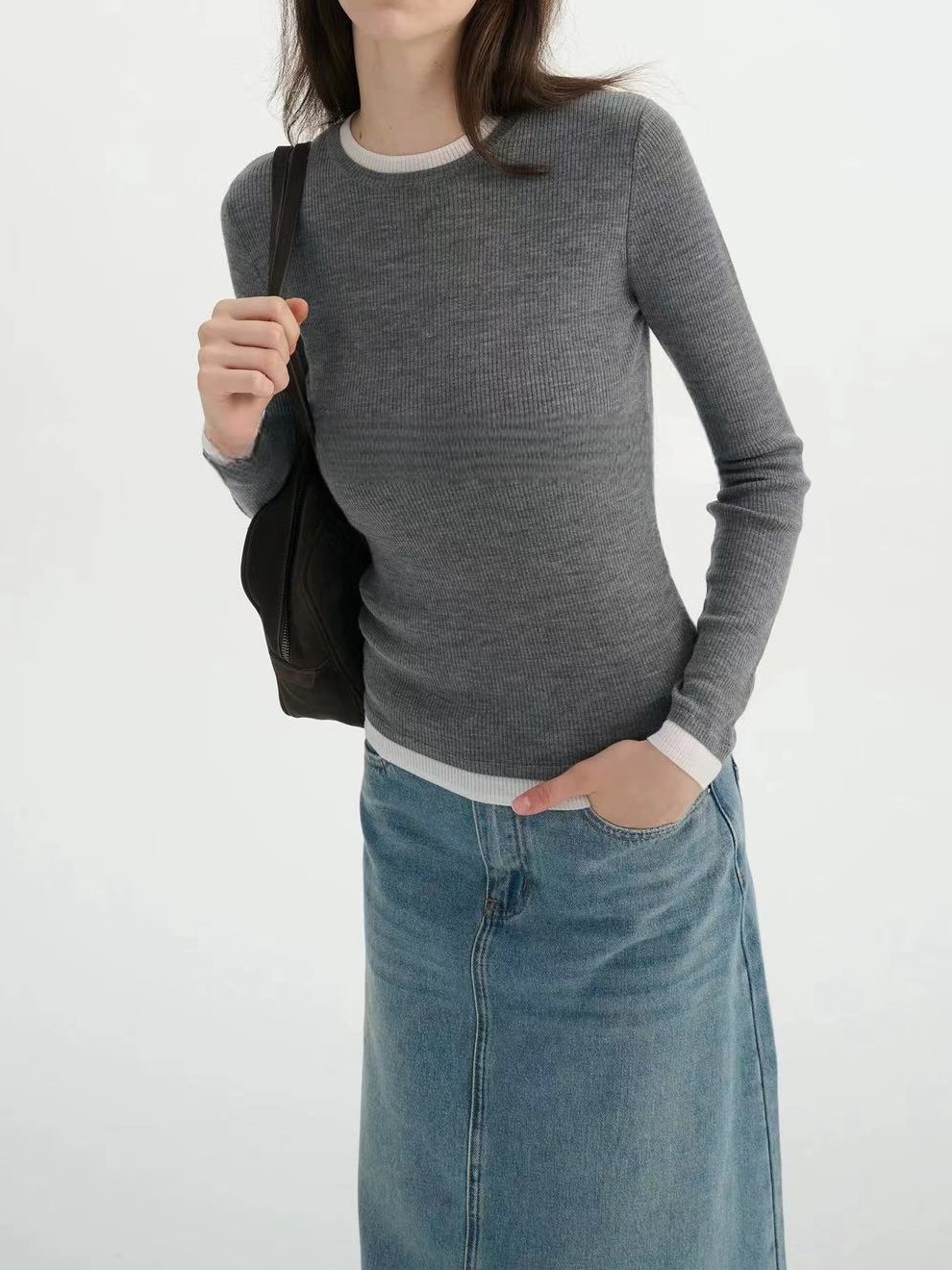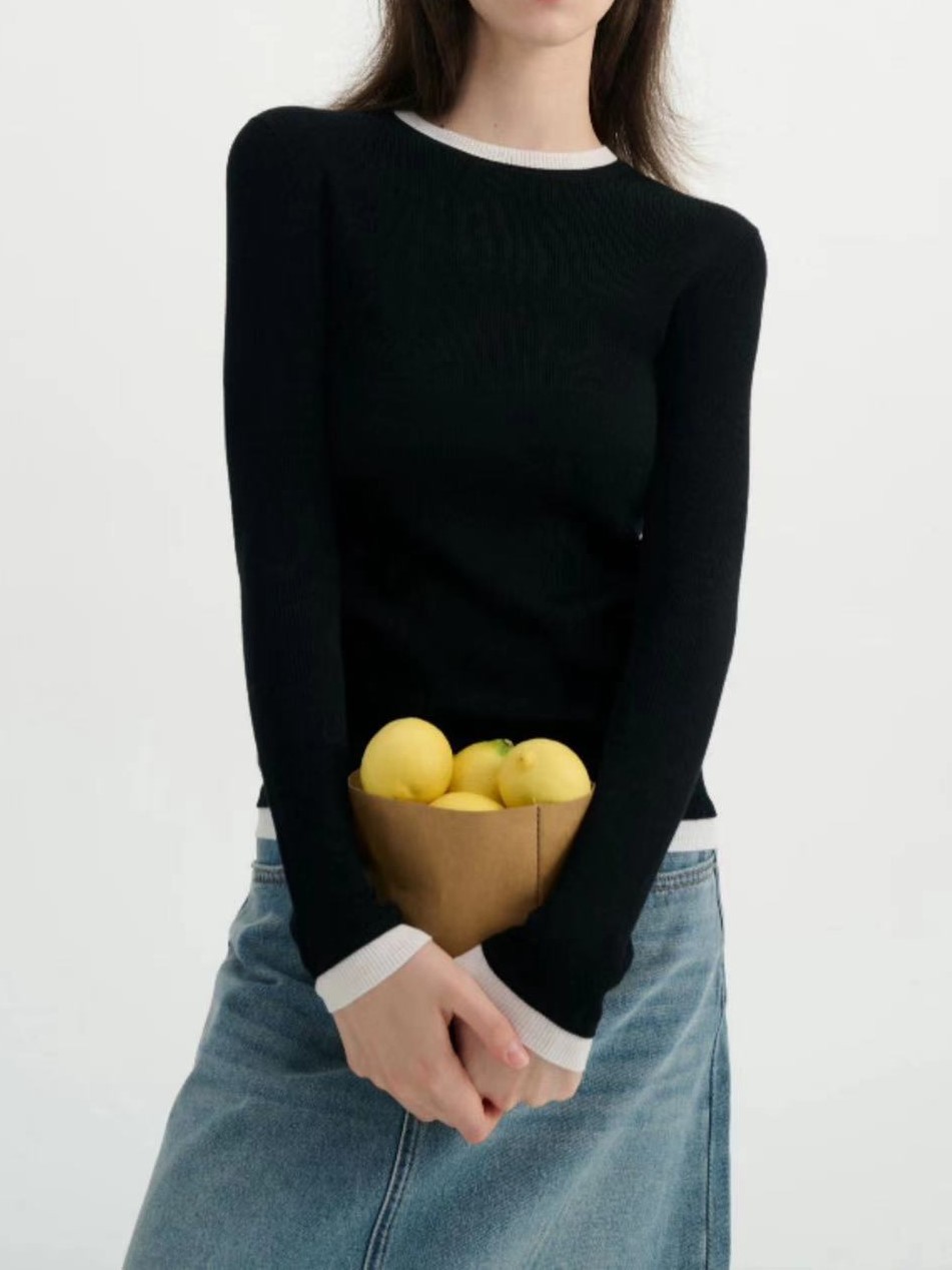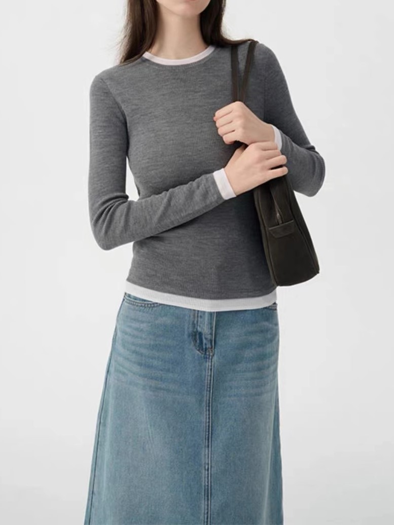가짜 투피스 컬러 블록 양쯔 원사 미세 모조 양모 포함 섬세하고 양모 니트 탑 여성용 스웨터