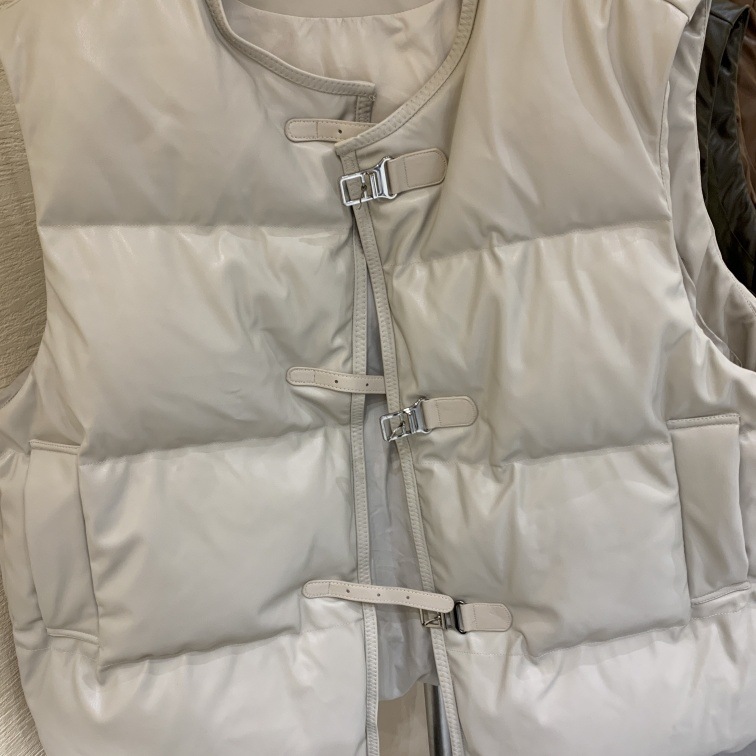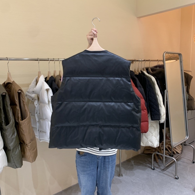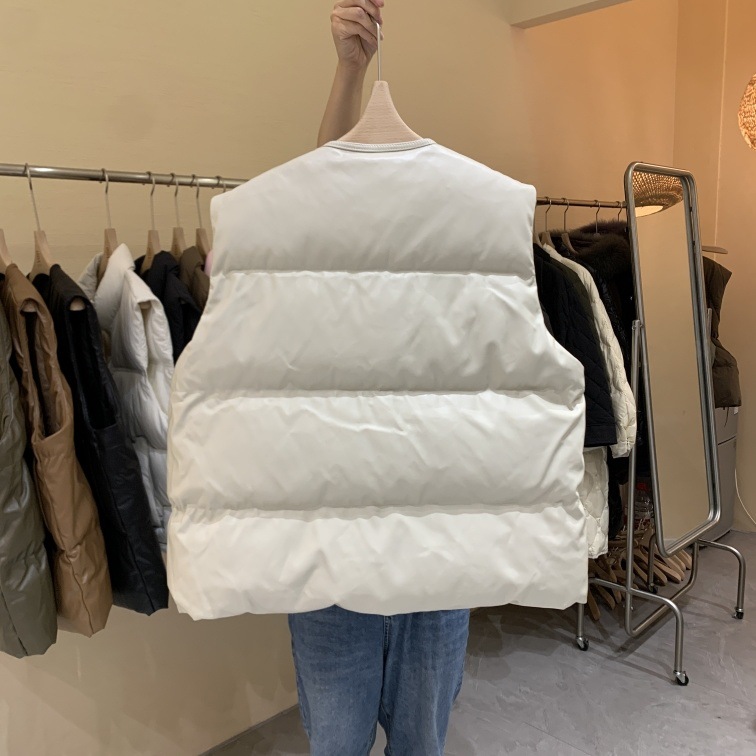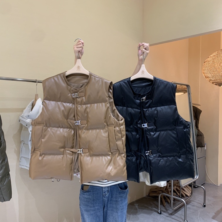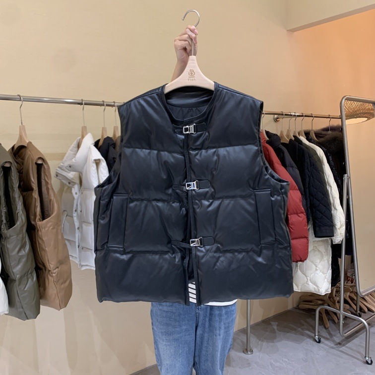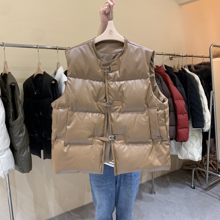Maillard PU 가죽 조끼 재킷 여성의 겨울 두꺼운 코튼 느슨한 Bf 스타일 레트로 라운드 넥 조끼스토어 가기