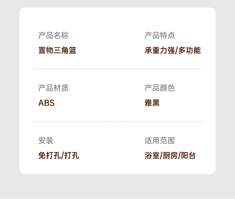 • ABS 삼각형 스토리지 랙 1단 흡입 컵
