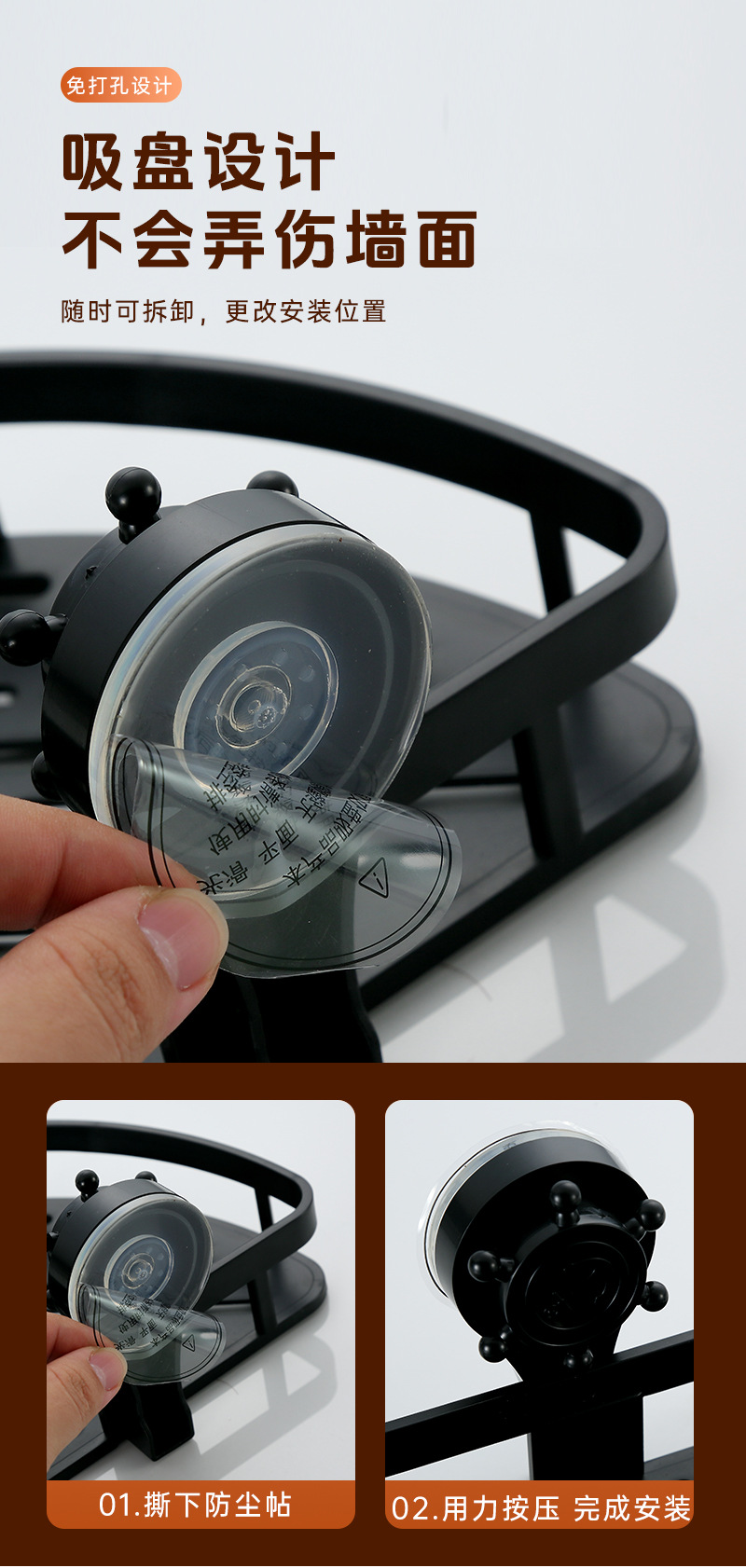• ABS 삼각형 스토리지 랙 2단 흡입 컵