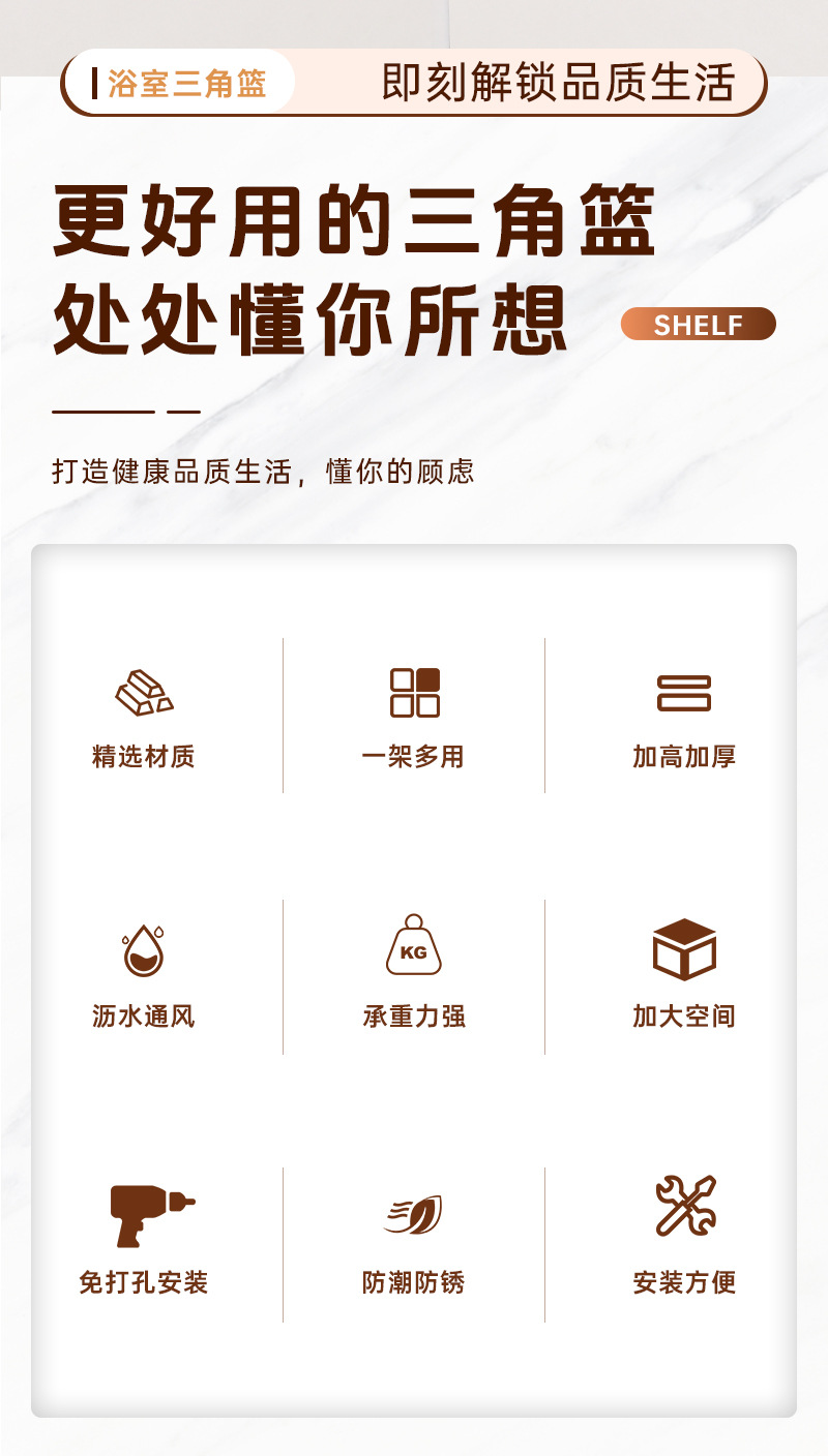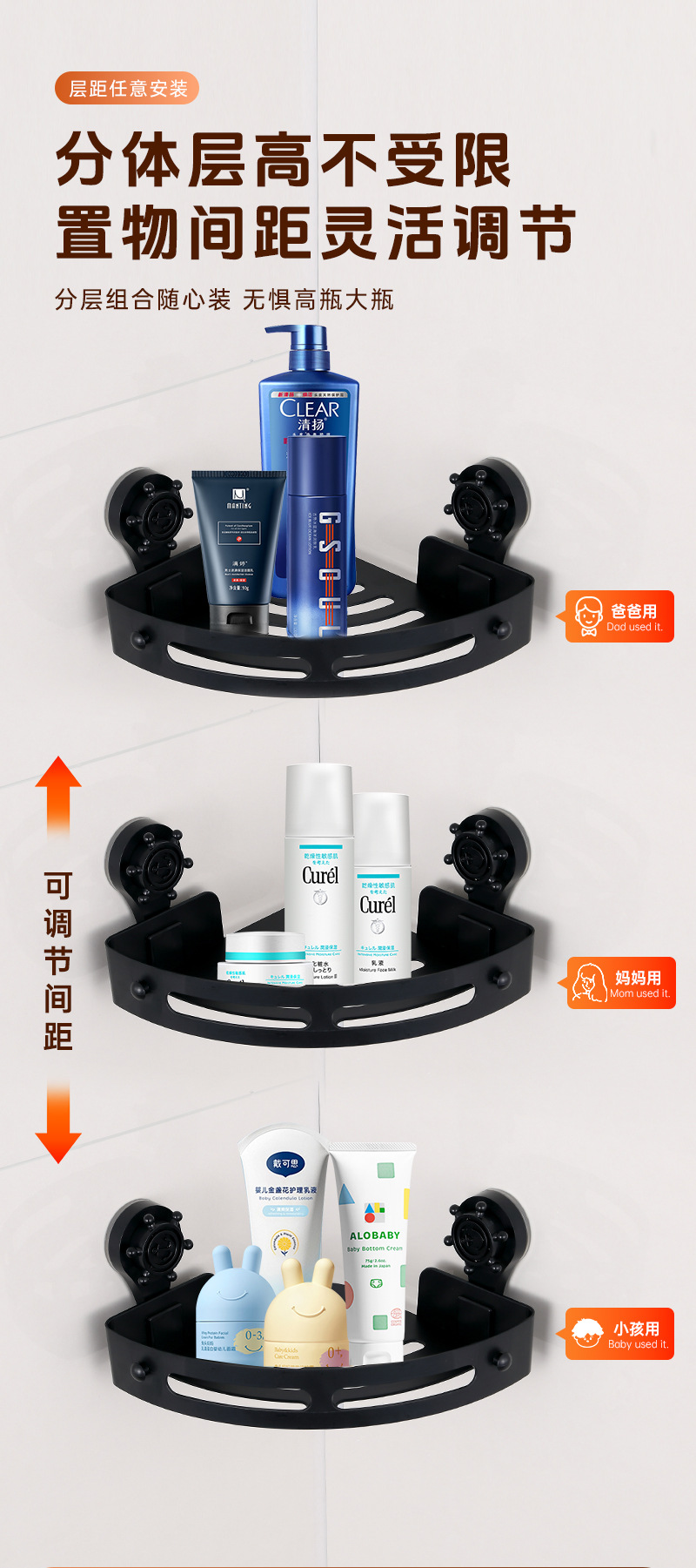 • ABS 삼각형 스토리지 랙 3단 흡입 컵