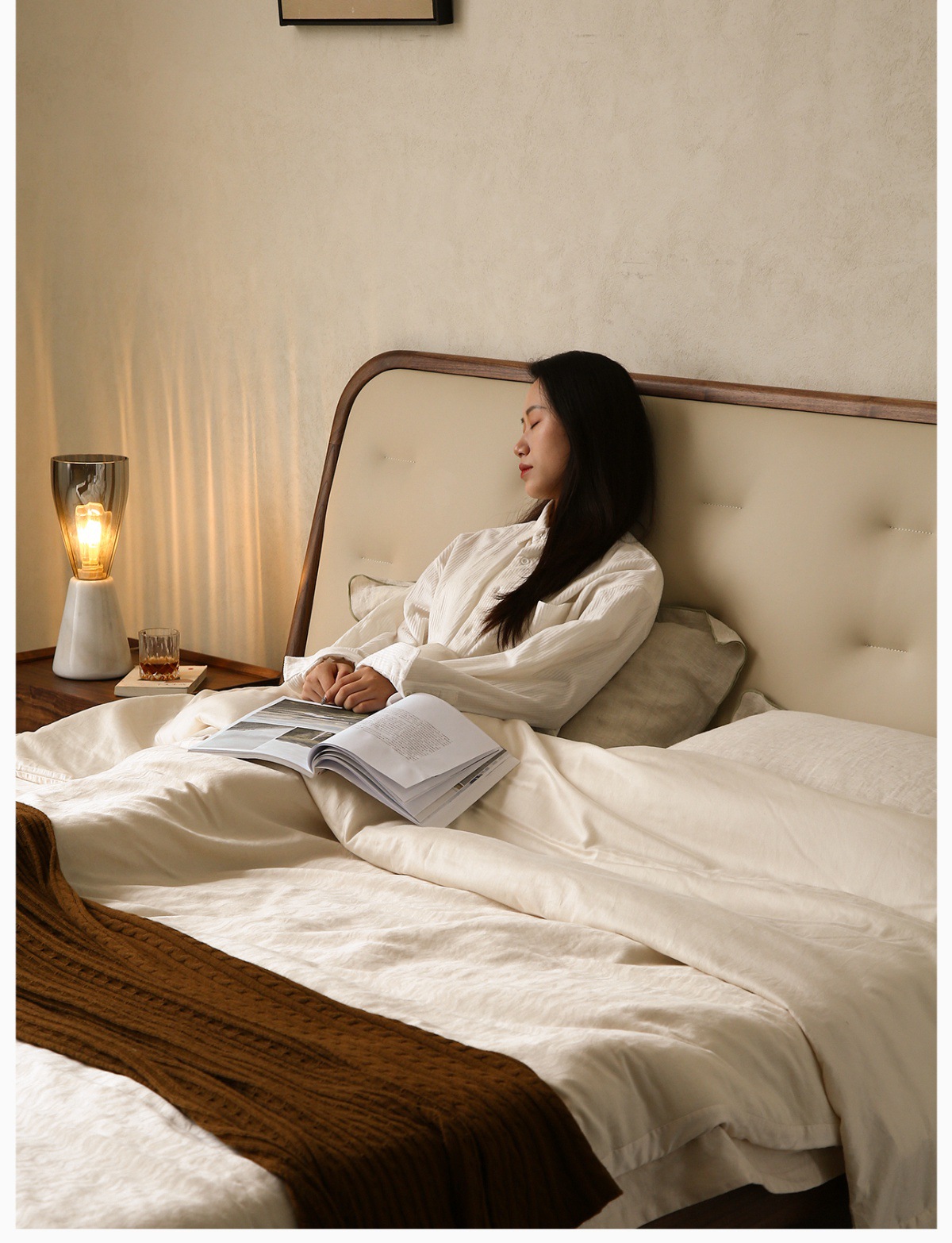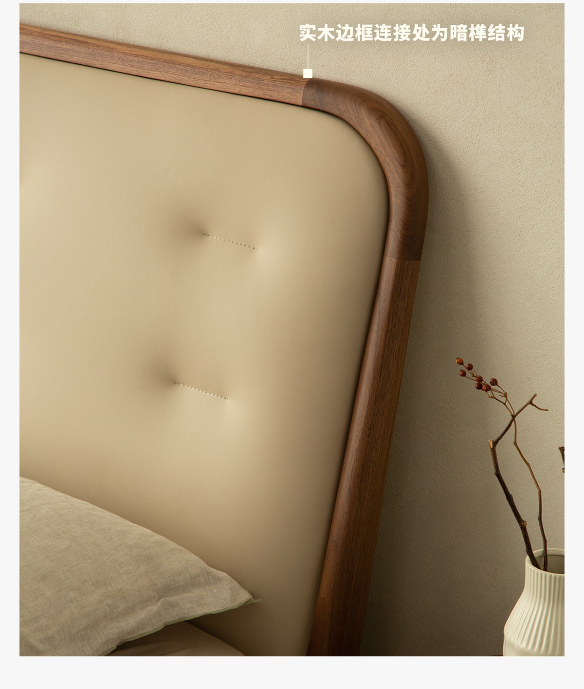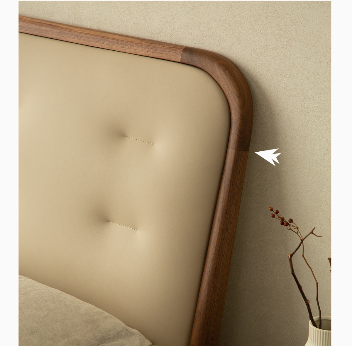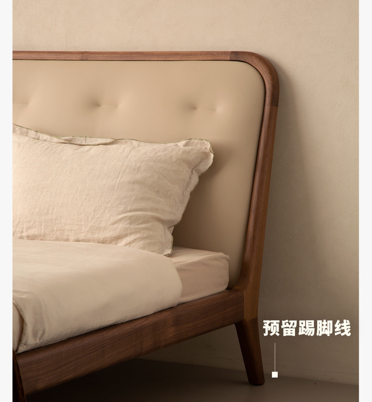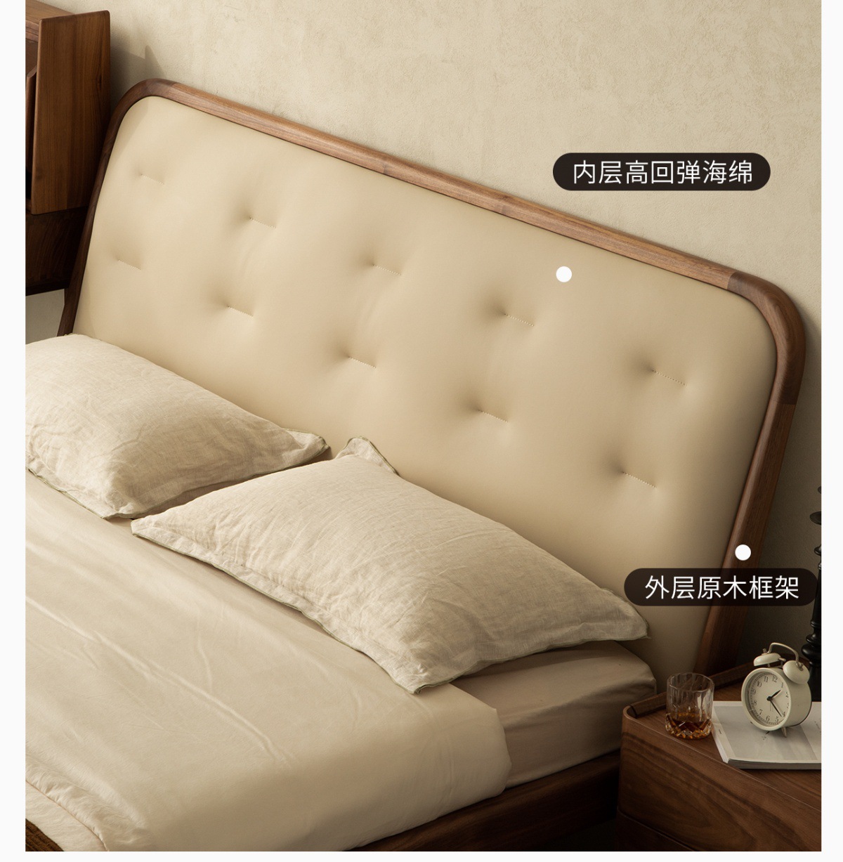 북미 검은 호두 침대 순수한 단단한 나무 현대 간단한 가죽 부드러운 나무 침대 1.5 미터 1.8 마스터 침실 더블 침대