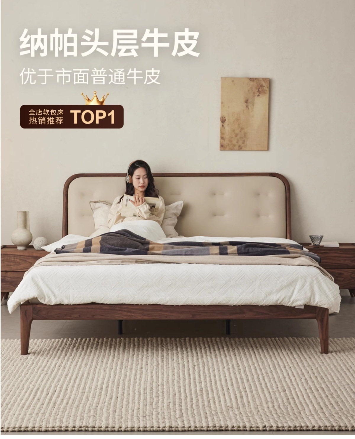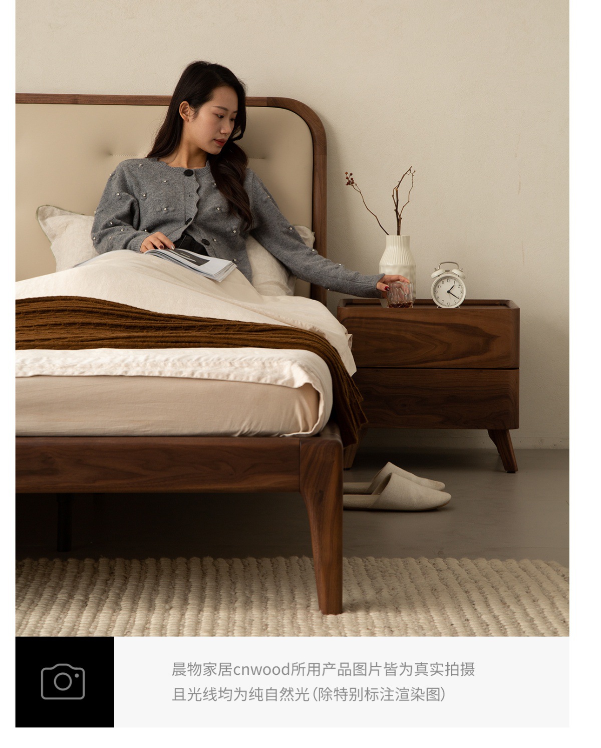 북미 검은 호두 침대 순수한 단단한 나무 현대 간단한 가죽 부드러운 나무 침대 1.5 미터 1.8 마스터 침실 더블 침대스토어 가기