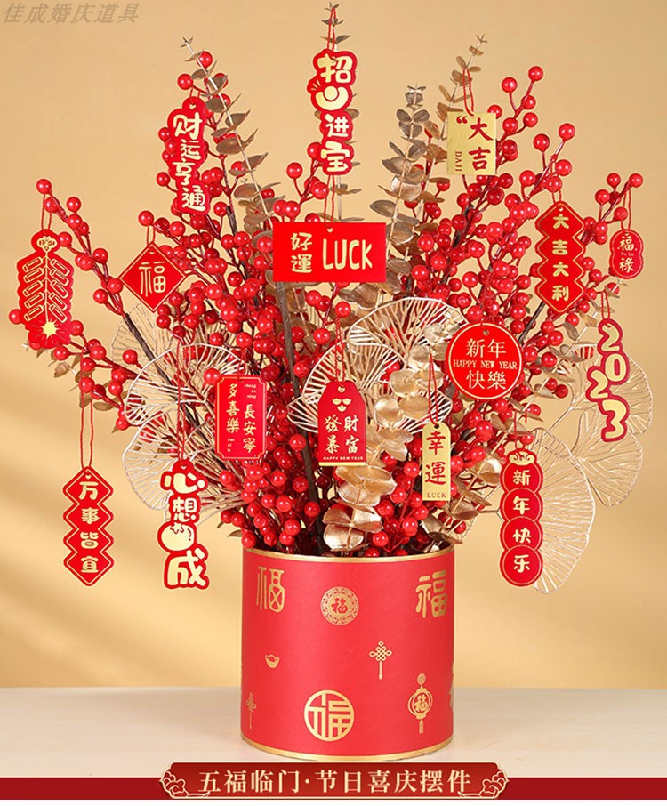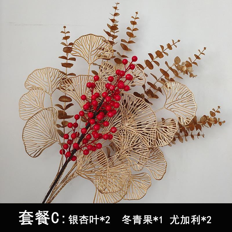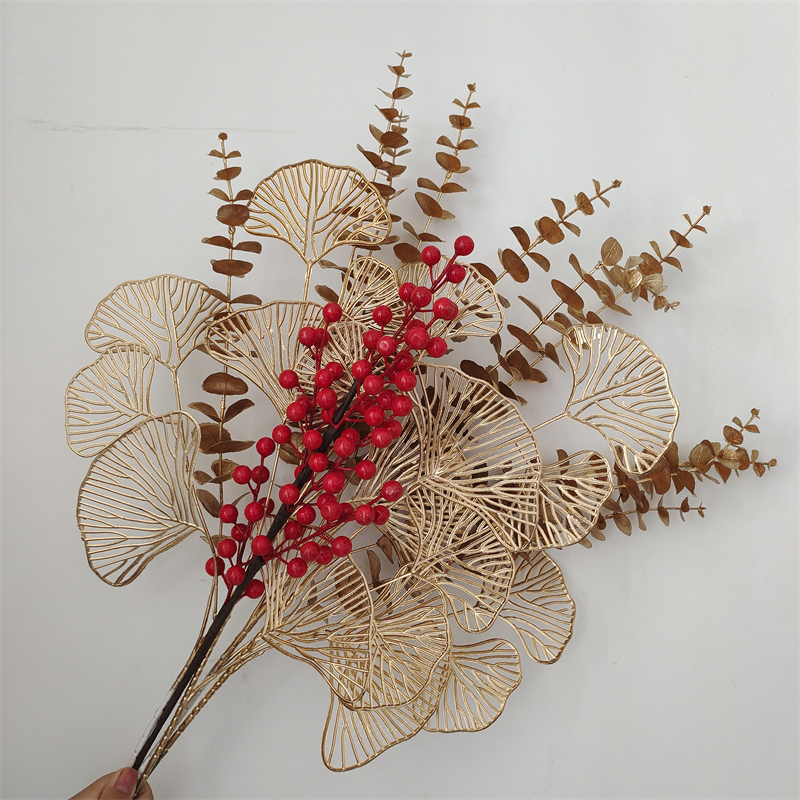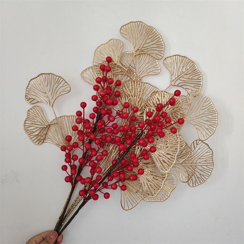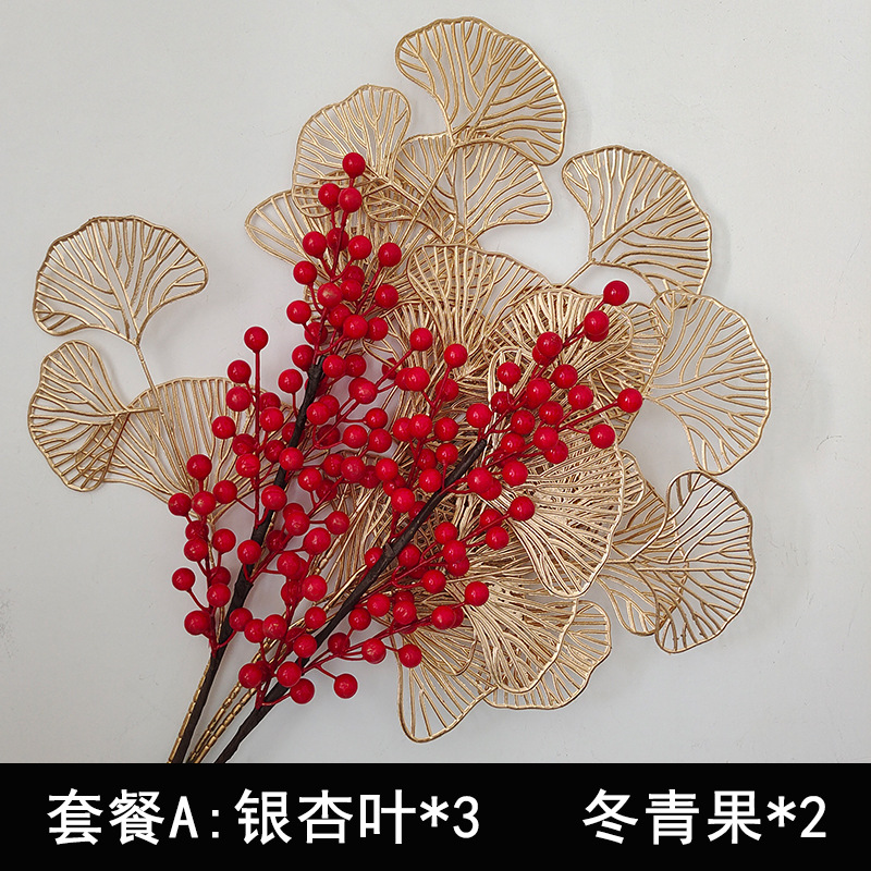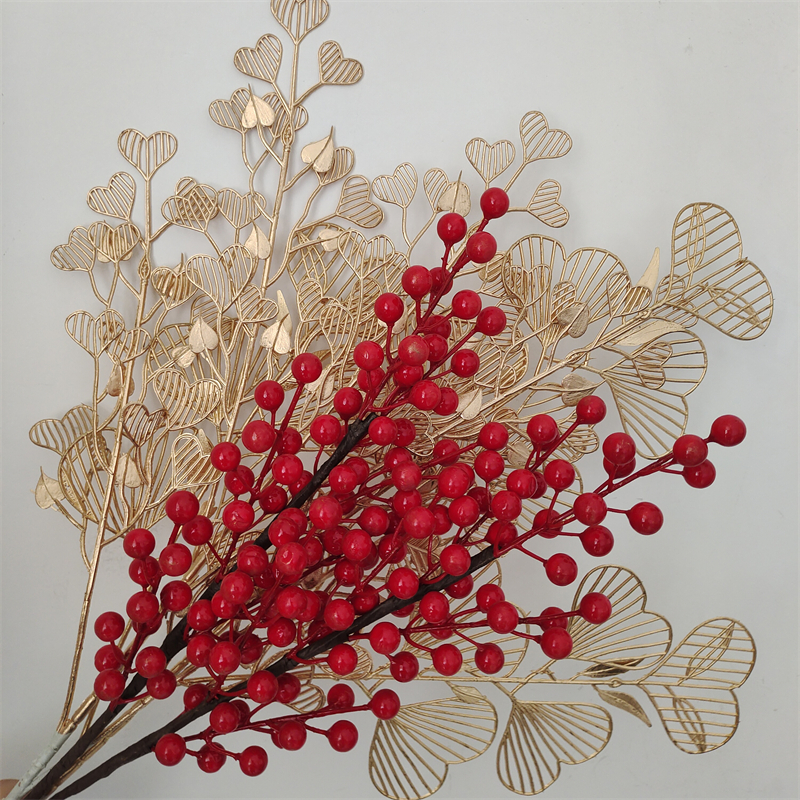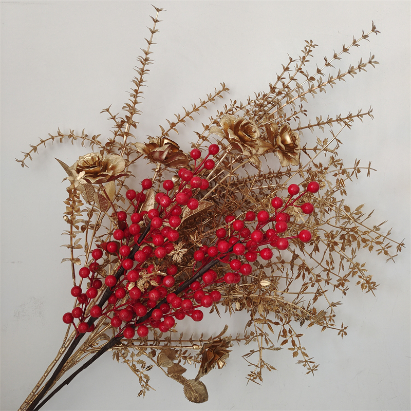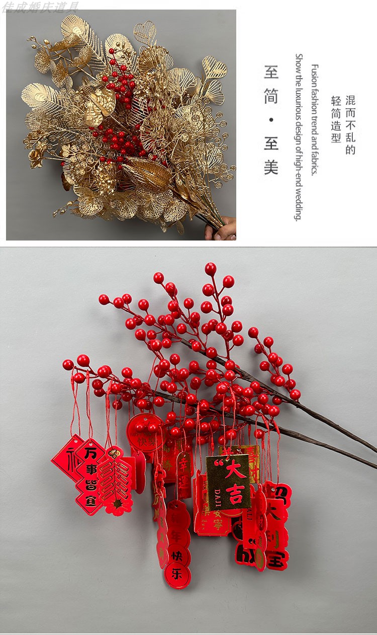 婚庆金色仿真花假花福桶花艺花材红果插花装饰花布置场景摆件道具