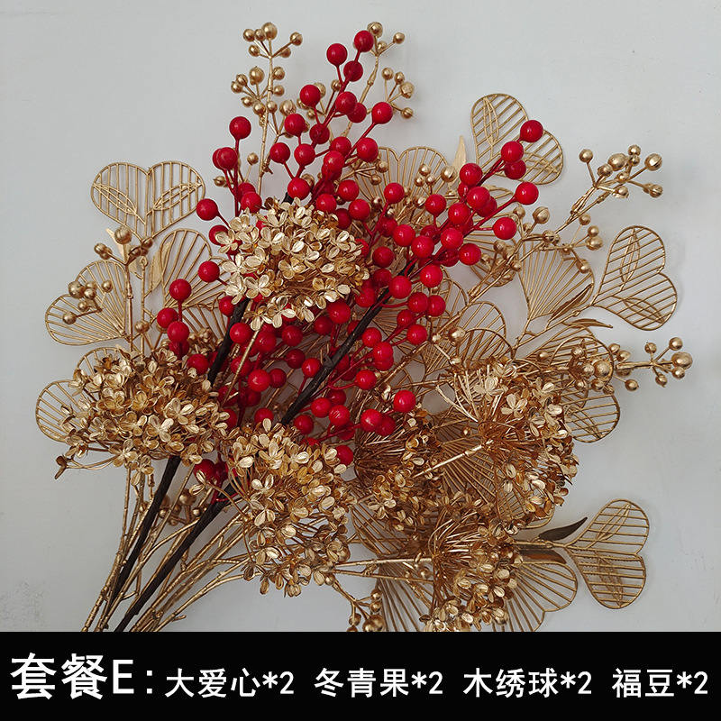 결혼식 황금 시뮬레이션 꽃 가짜 꽃 양동이 꽃 소재 붉은 과일 꽃 배열 장식 꽃 배열 장면 장식품 소품