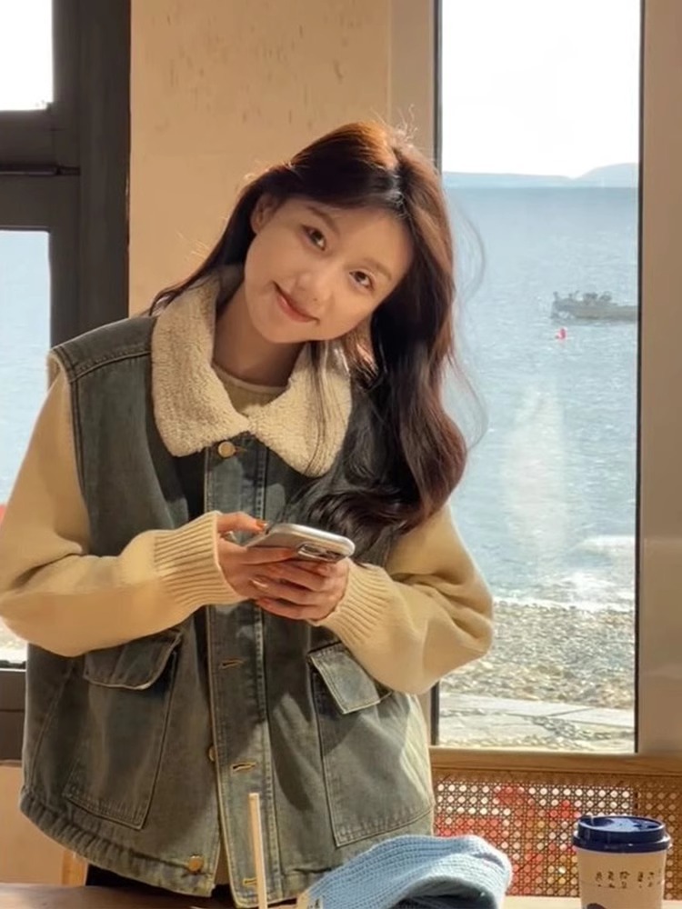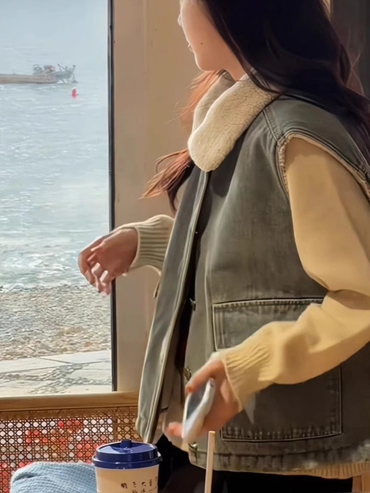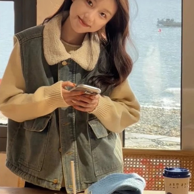 양고기 양모 데님 조끼 코트 여성용 이른 봄 느슨한 올해 인기있는 틈새 디자인 센스 슈퍼 잘 생긴 웨어 재킷스토어 가기