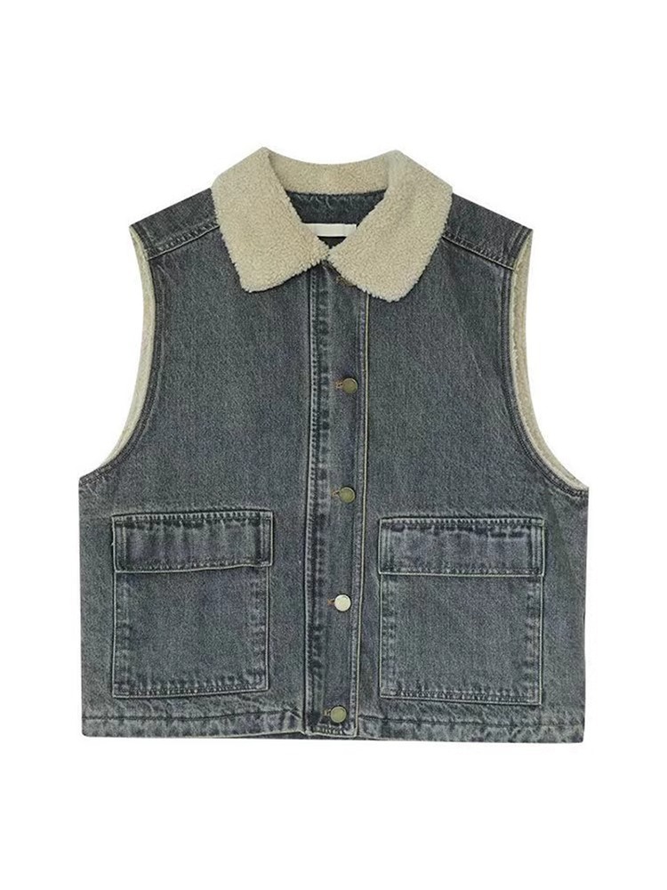 양고기 양모 데님 조끼 코트 여성용 이른 봄 느슨한 올해 인기있는 틈새 디자인 센스 슈퍼 잘 생긴 웨어 재킷