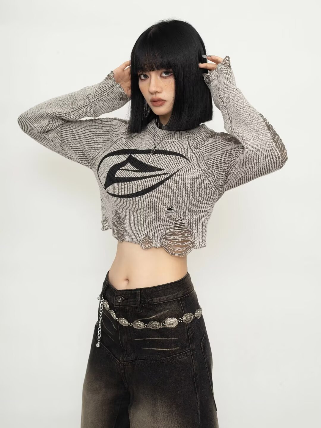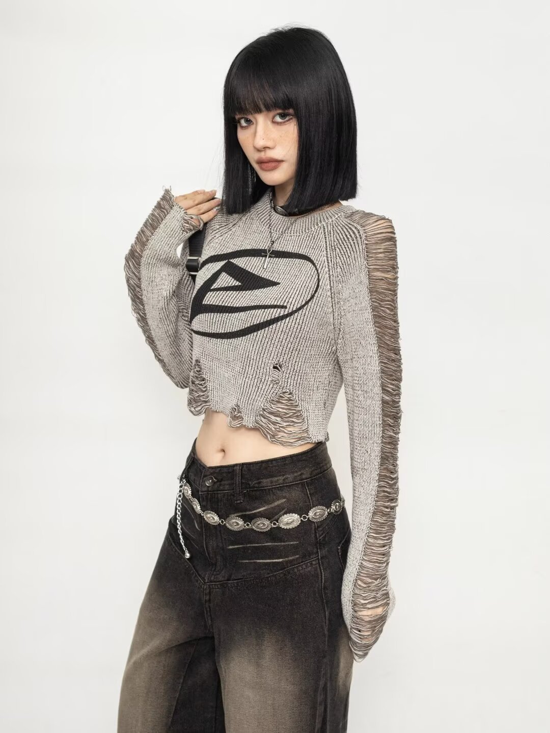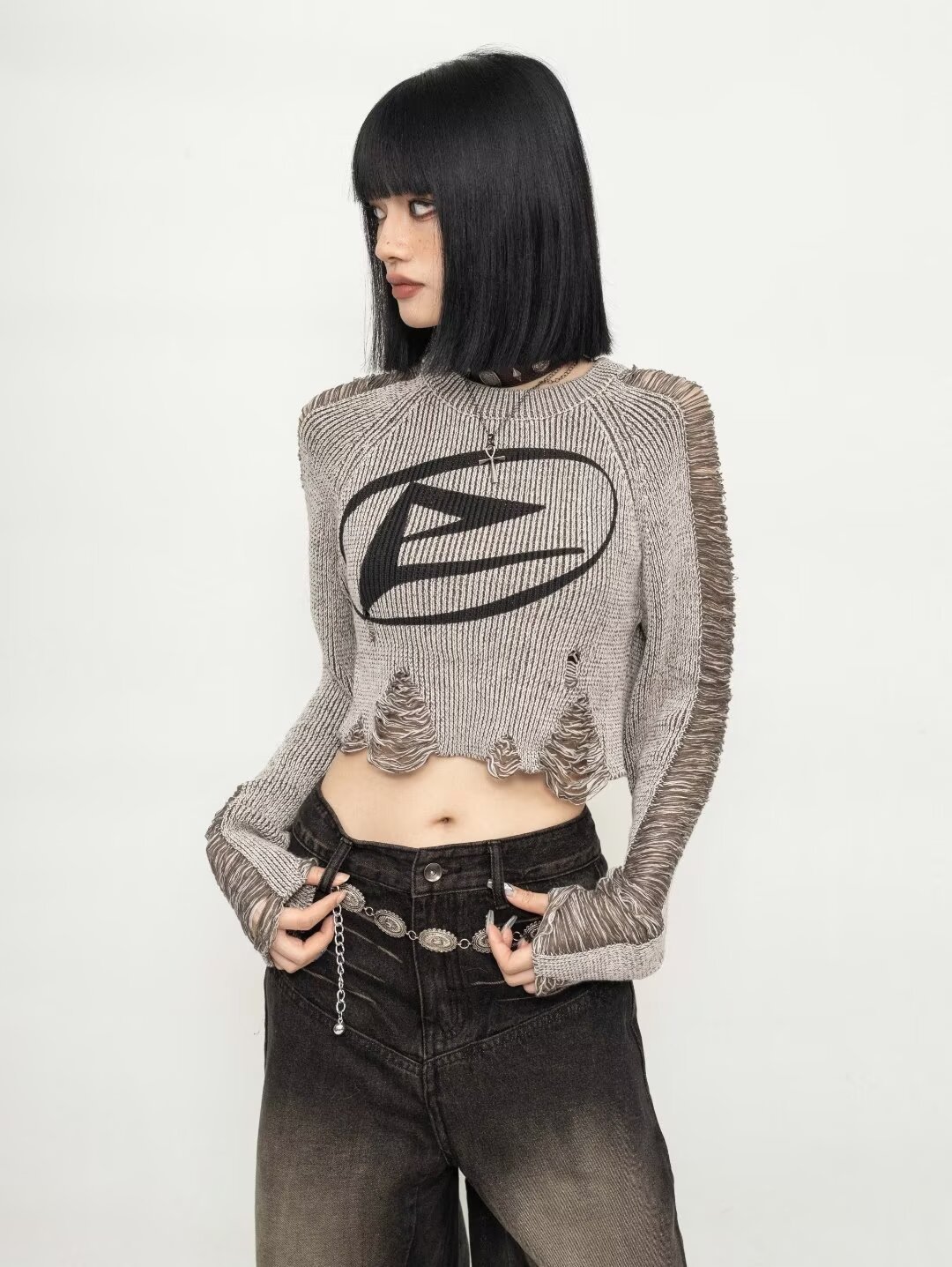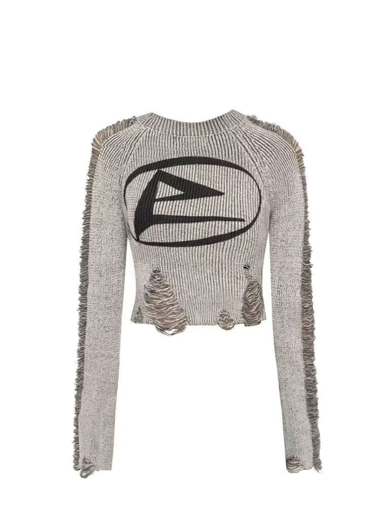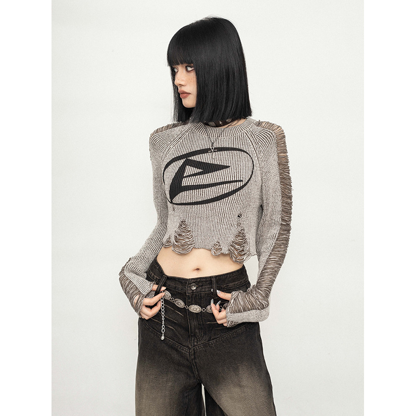 가을과 겨울 2024 새로운 달콤한 시원한 미국 복고풍 스타일 여성용 니트 짧은 풀오버 스웨터 블라우스스토어 가기