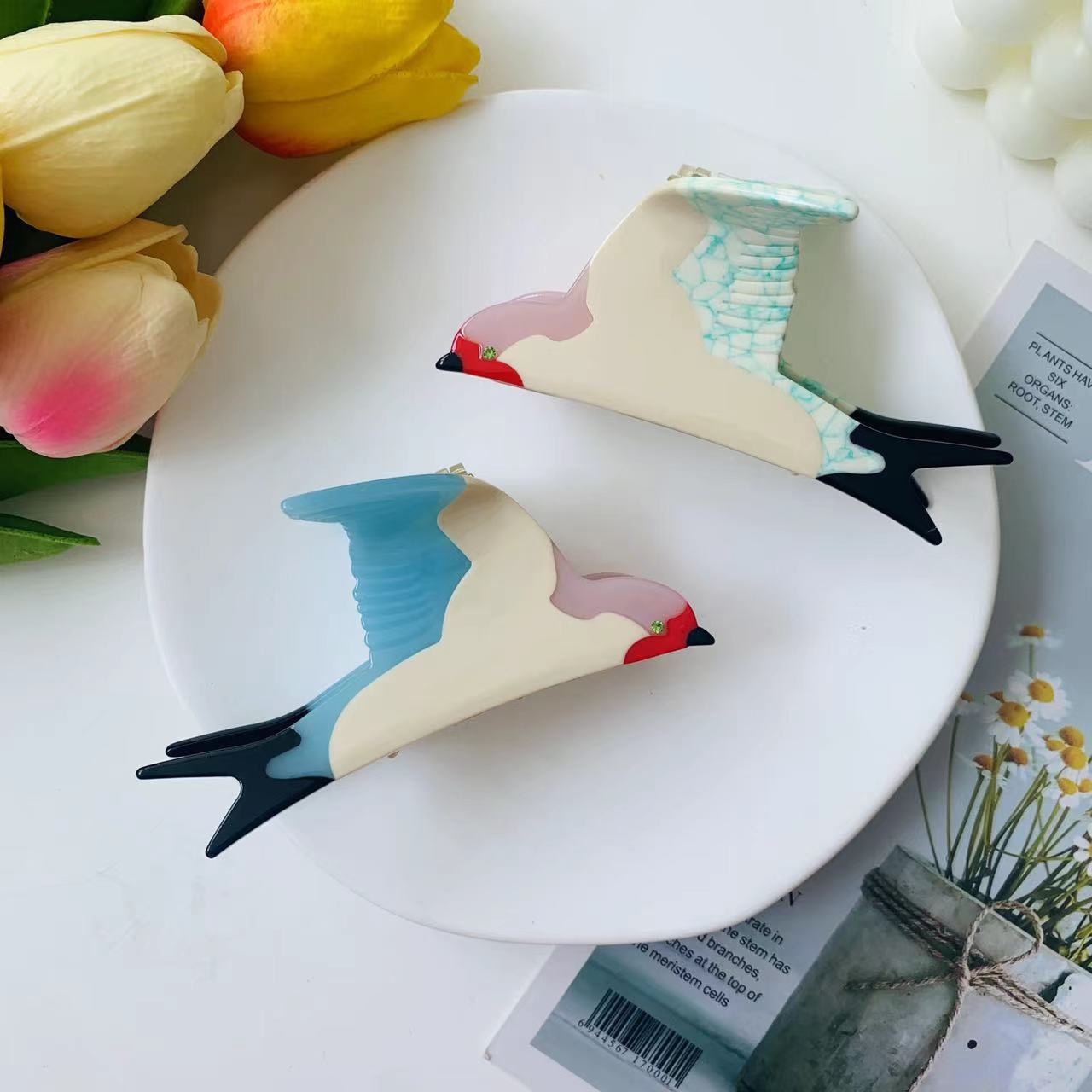 Ins Blue 삼키기 헤어핀 상어 클립 아세트산 헤어 핀 독특한 틈새 여름 달콤한 귀여운 머리 클립