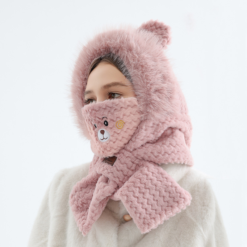 봉제 귀여운 곰 모자 스카프 통합 가을과 겨울 라이딩 레이 펑 모자 냉장 따뜻한 귀 보호 봉제 모자스토어 가기
