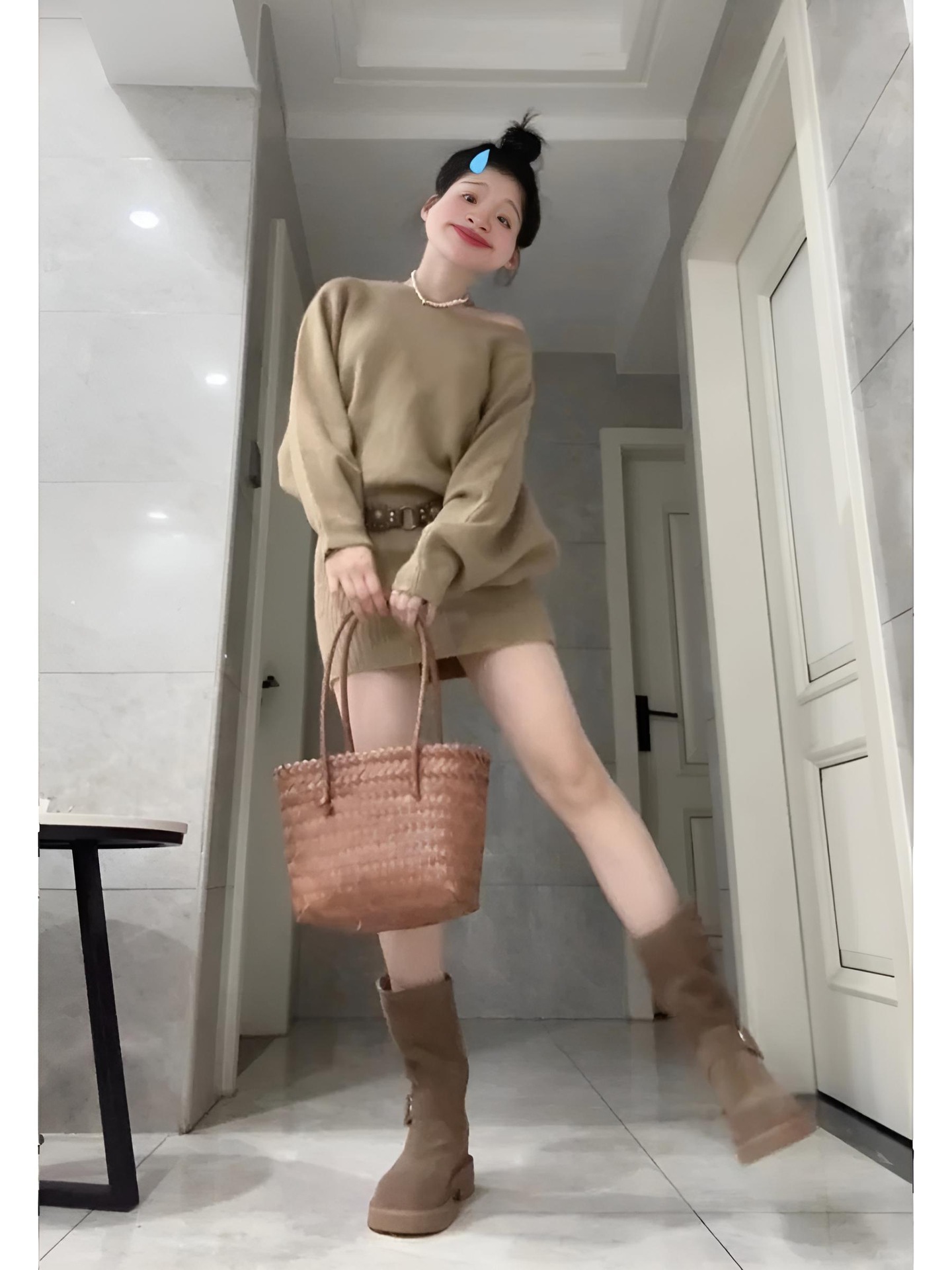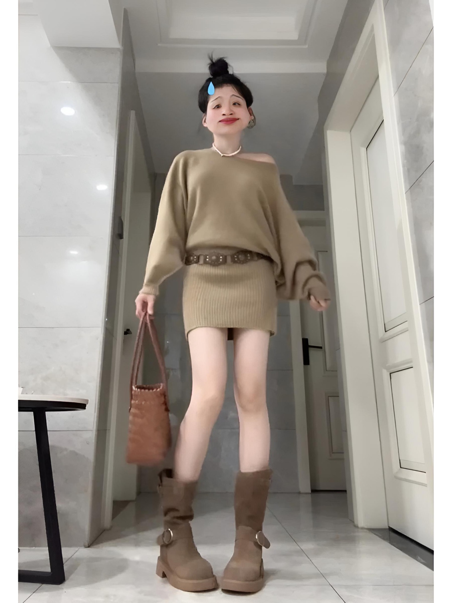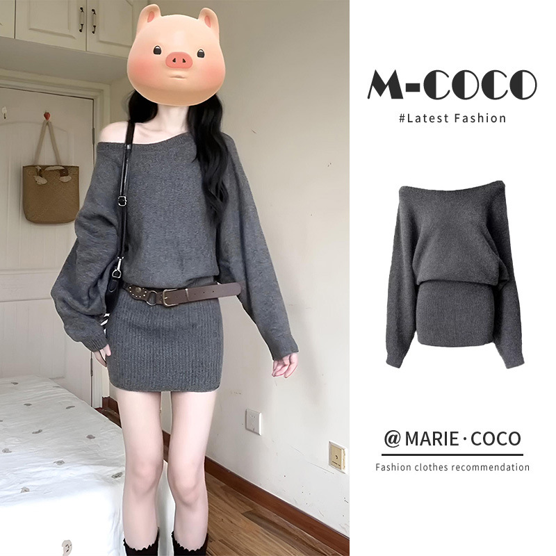 게으른 스타일 느슨한 오프 숄더 니트 스웨터 이른 가을 여성 디자인 센스 슬림 숄더 슬림 원피스스토어 가기
