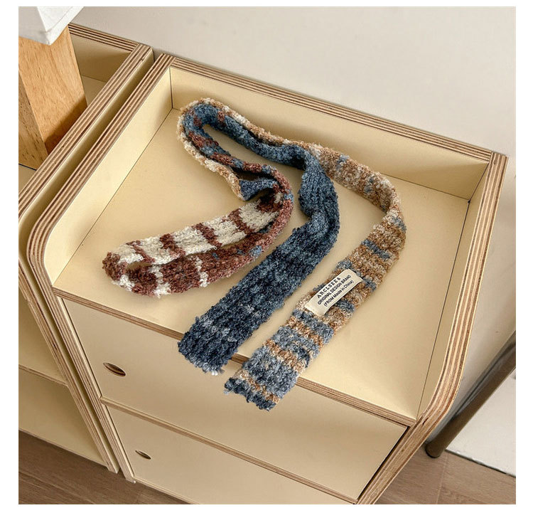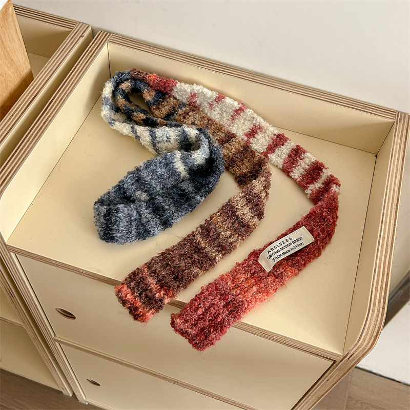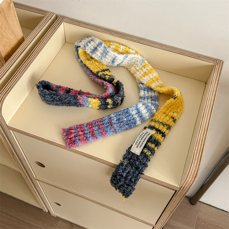 새로운 한국식 틈새 디자인 대비 색상 Y2K 긴 스카프 여성 가을 및 겨울 인터넷 연예인 같은 스타일 좁은 장식 스카프스토어 가기