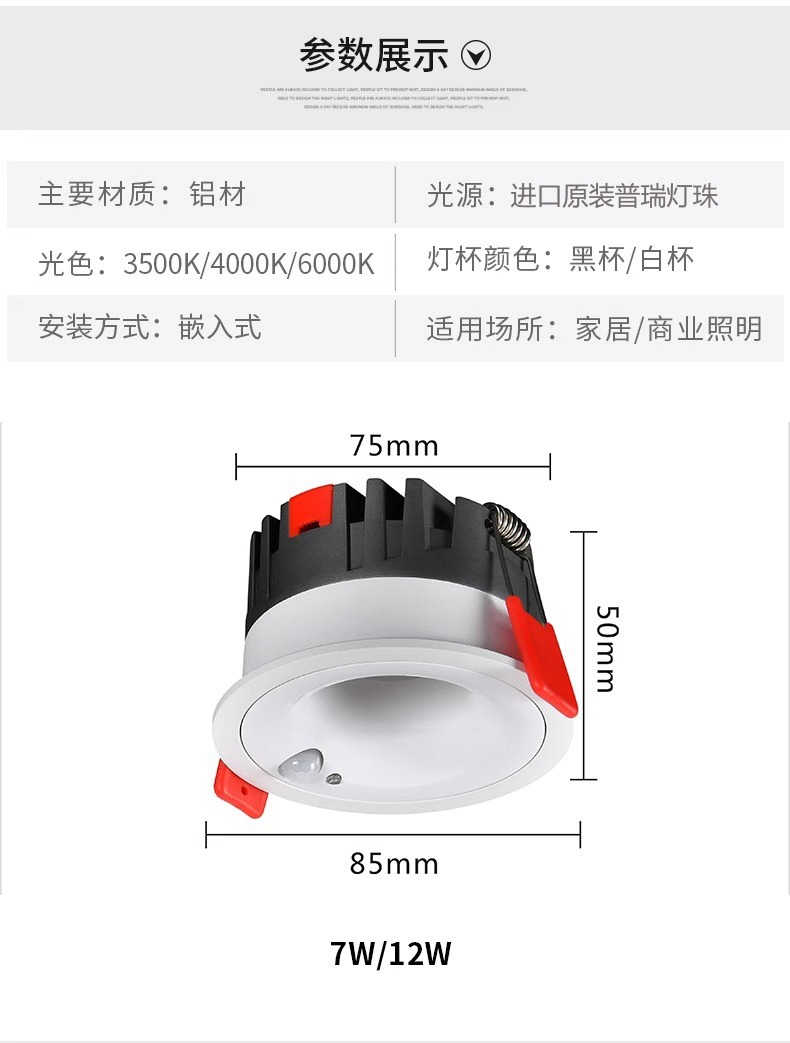 • 흰색 컵 7W 유도 스포트라이트, 개구부 75mm