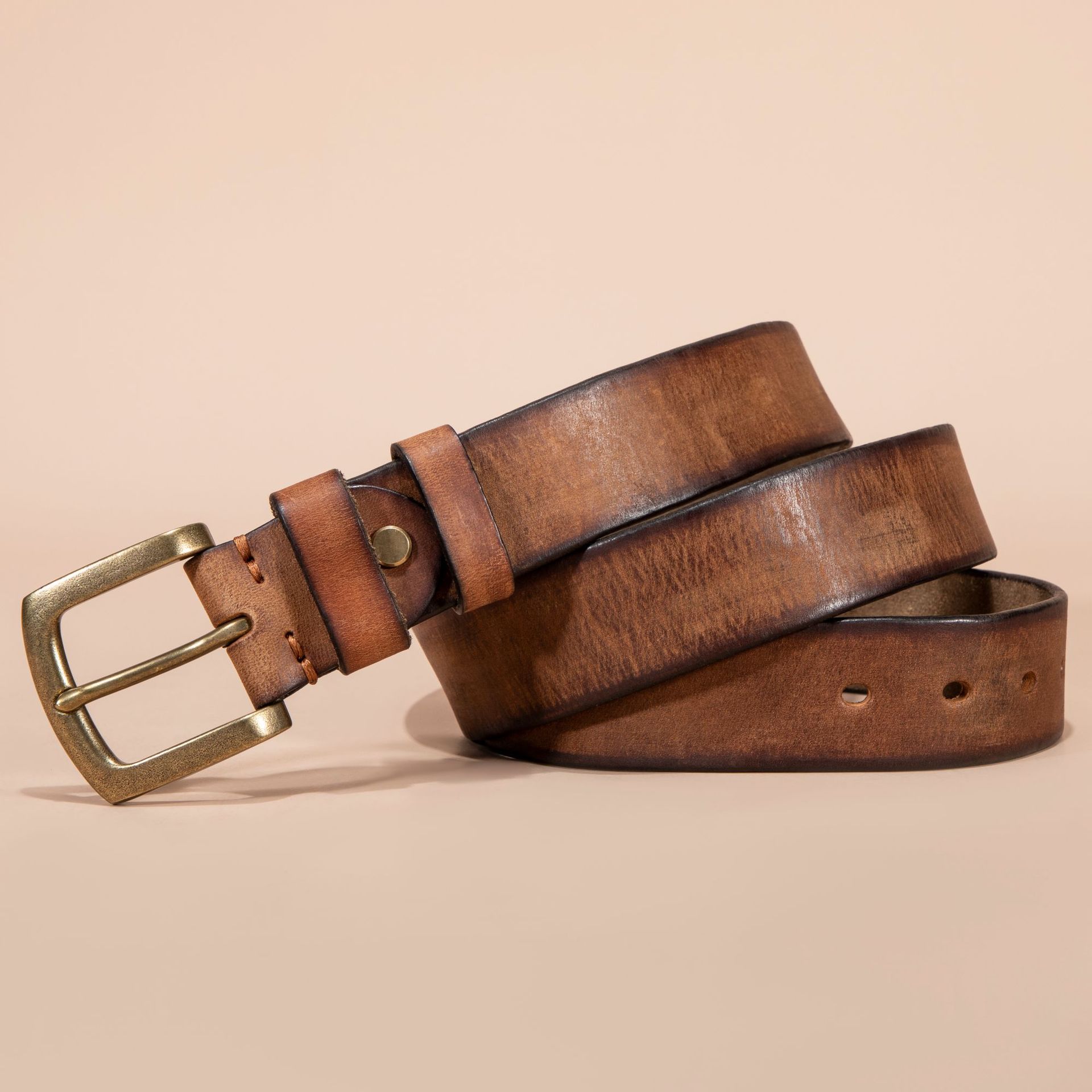 재고 탑 레이어 Cowhide 벨트 남성 정품 가죽 핀 버클 원래 한국 유행 바지 벨트 정품 캐주얼 중년 벨트스토어 가기